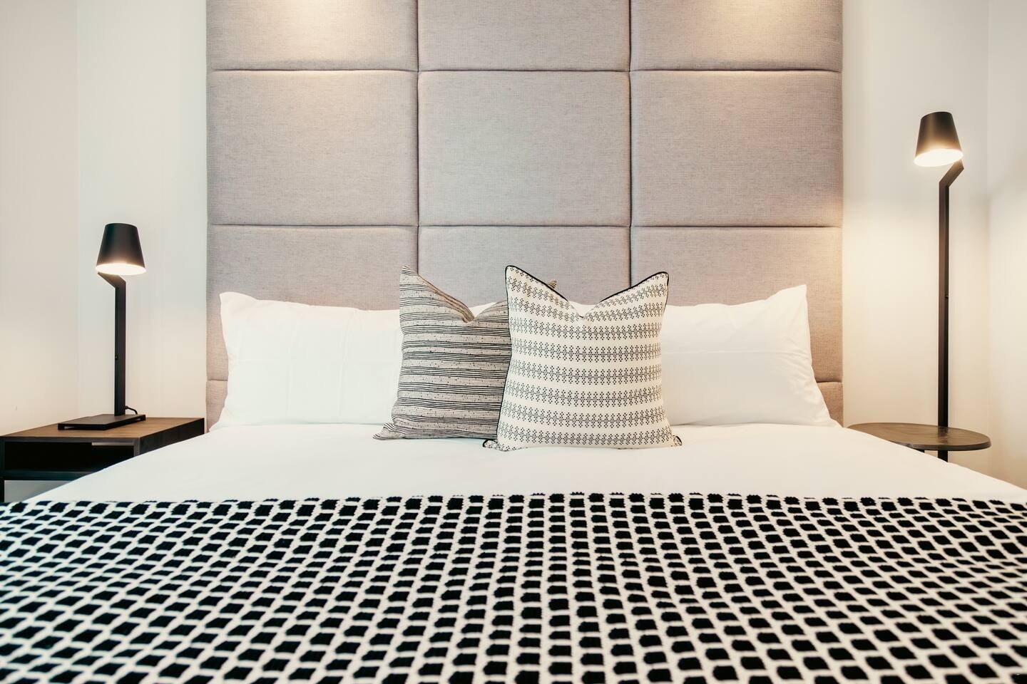 Die woonstel het slaapplek vir 4 gaste en beskik oor 2 slaapkamers en 2 badkamers. Die eerste slaapkamer het 'n koninggrootte-bed en 'n en suite-badkamer met 'n stort, wasbak en toilet. Die tweede slaapkamer het 'n koningingrootte-bed en gaste maak gebruik van 'n badkamer met 'n stort, wasbak en toilet. Linne en handdoeke word voorsien.