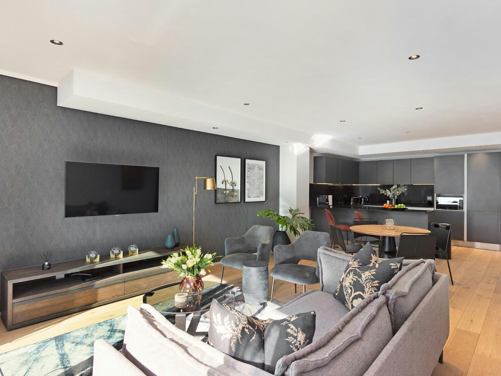 Die volledig toegeruste kombuis bevat toestelle en eetgerei om maaltye voor te berei en te kook, insluitend 'n skottelgoedwasser vir gerief. Die oopplan-leefarea het 'n TV met 'n Netflix-app en lei na 'n privaat balkon. Boonop is hoëspoed-WiFi-toegang beskikbaar. Veilige parkeerplek in die motorhuis is ook beskikbaar.