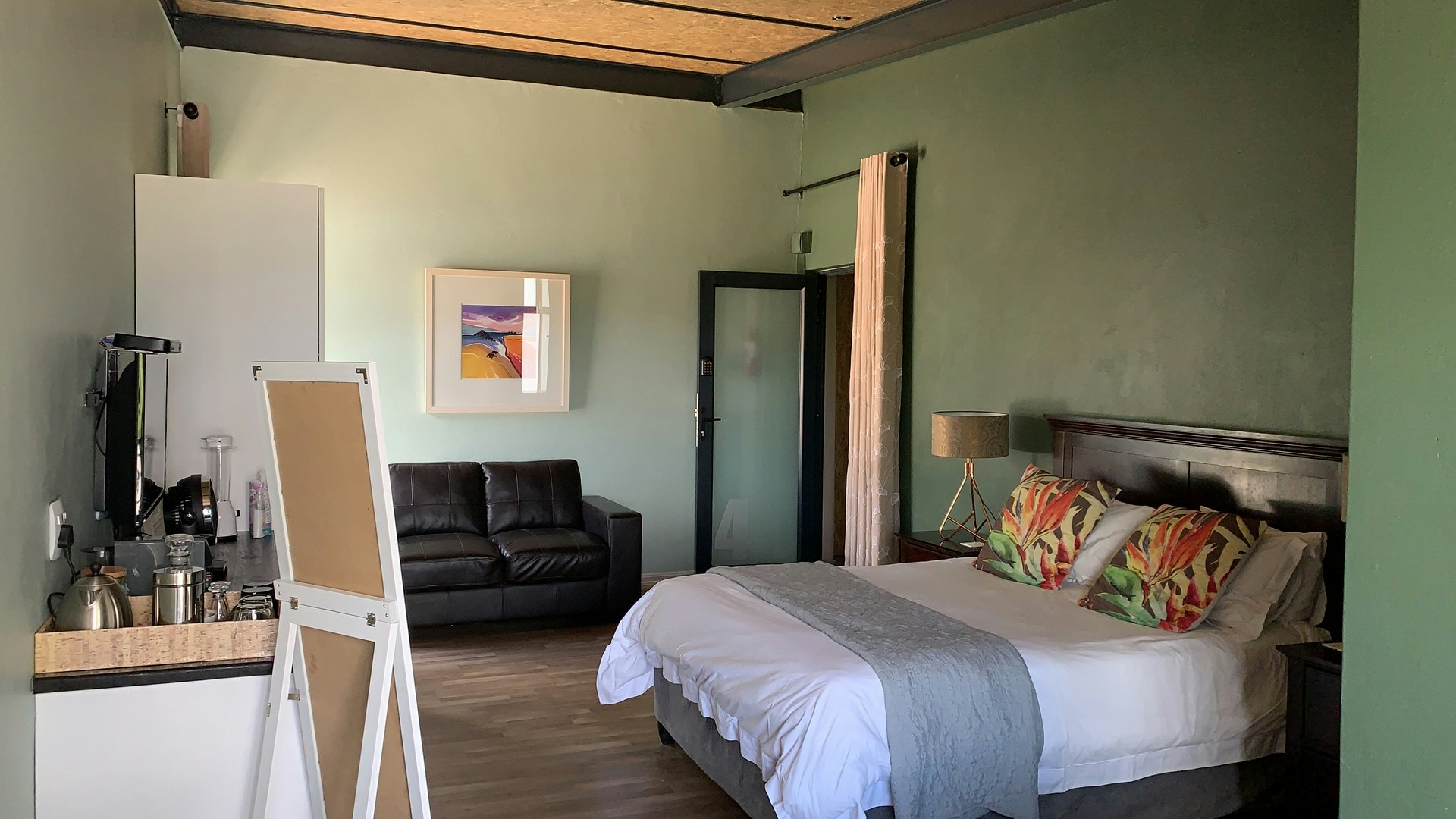 There are 4 rooms in the main building and a family cottage located on the Square. The rooms are beautifully furnished, with stunning views over the mountains towards the Golden Gate. They are equipped with a small bar fridge, hairdryer, aircon, bathroom with a shower and a TV with Netflix.