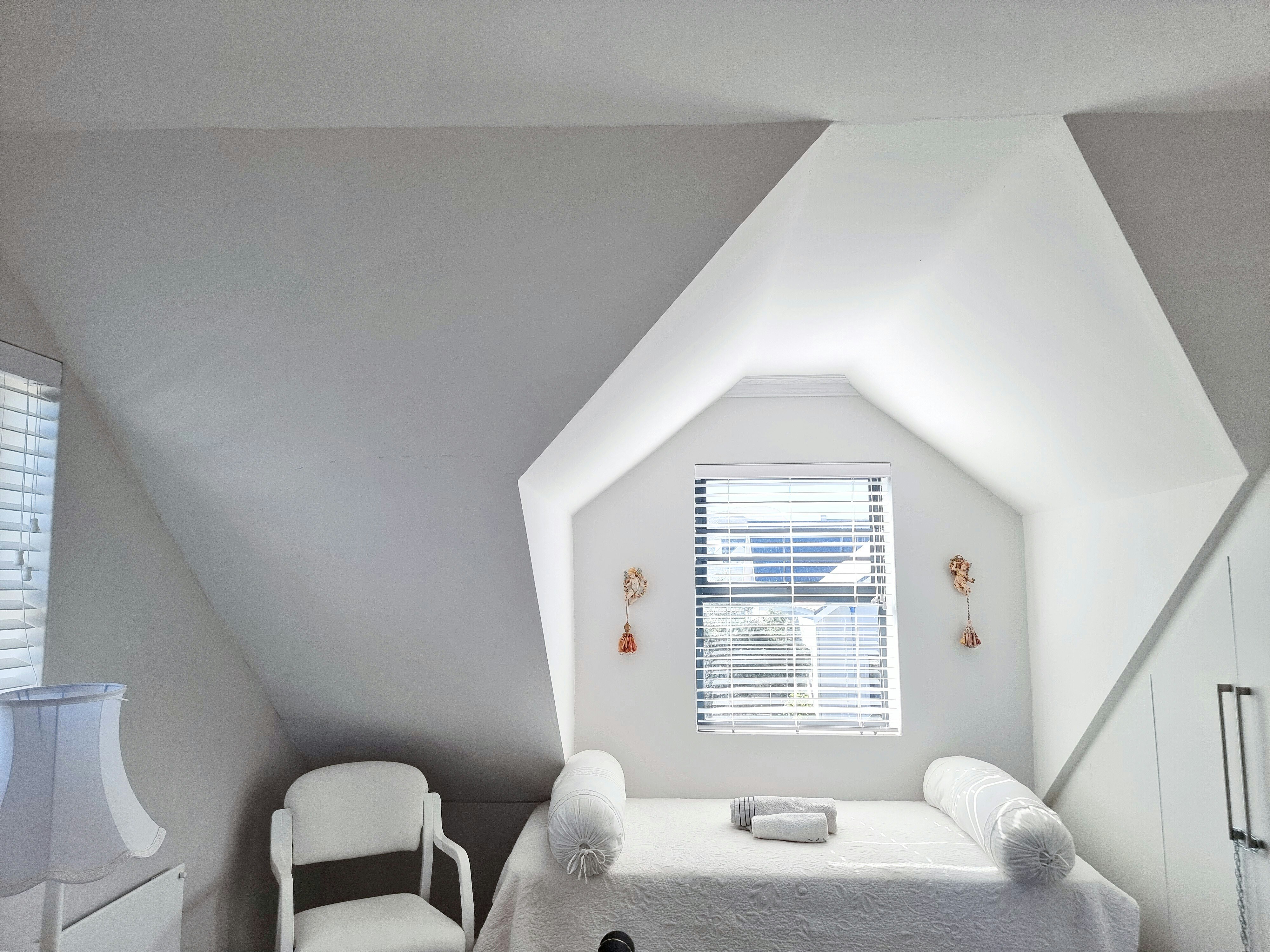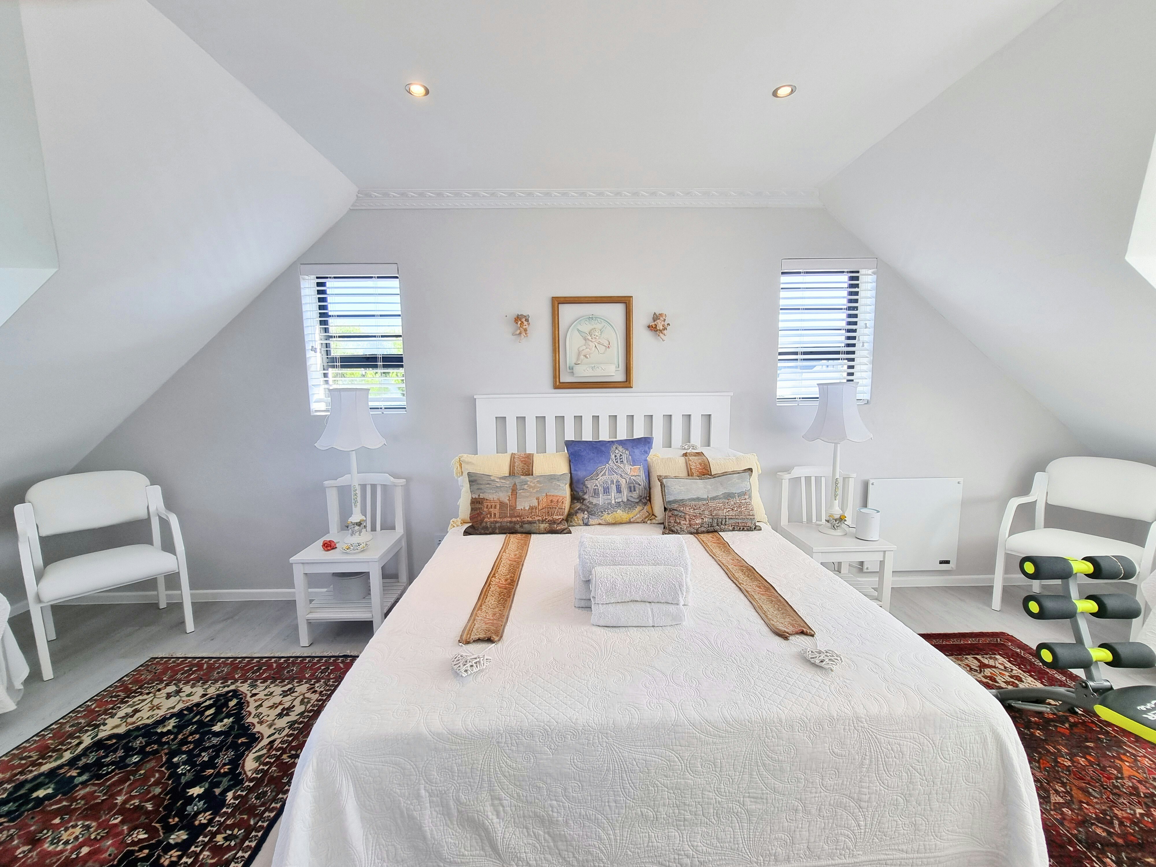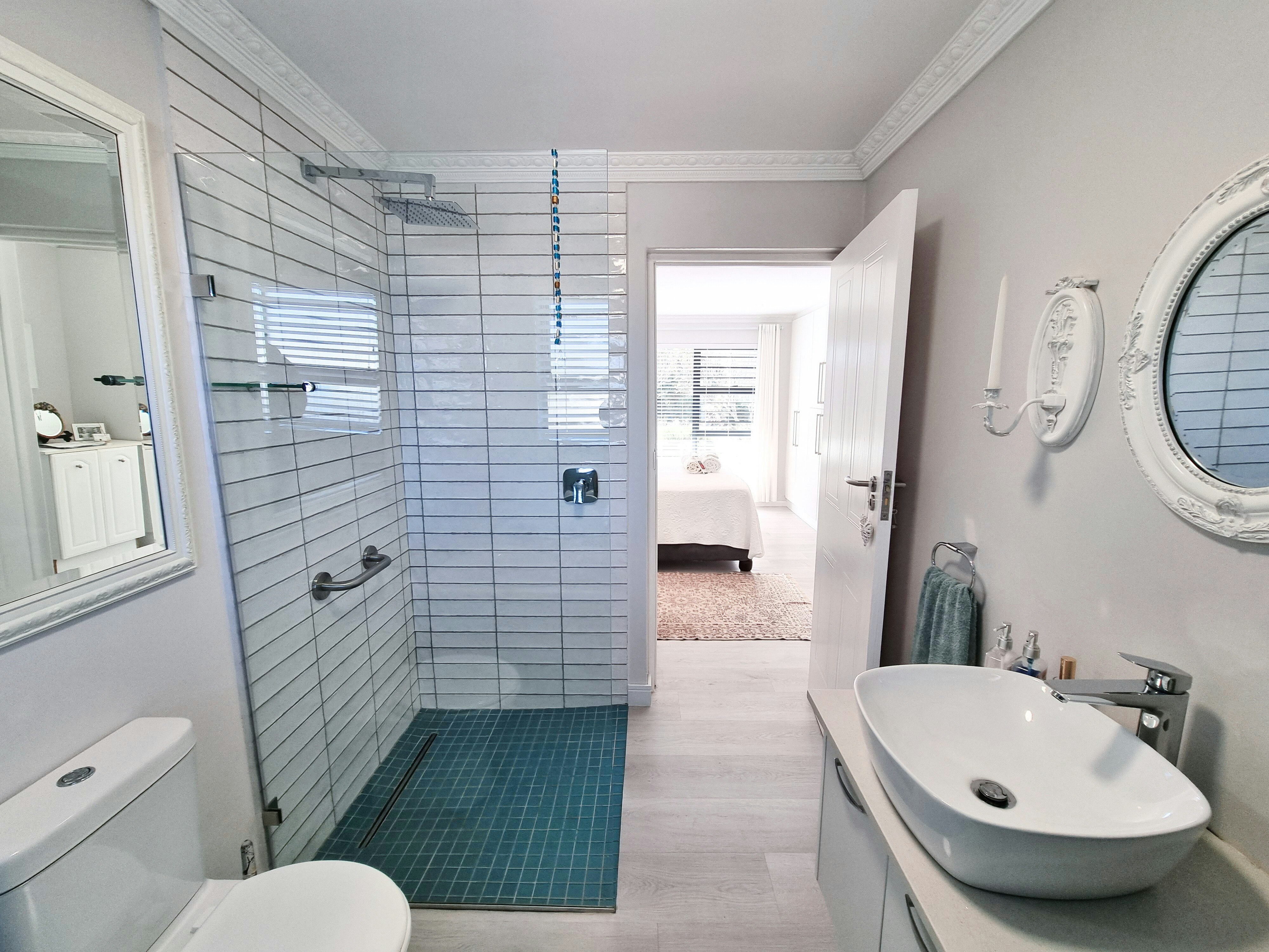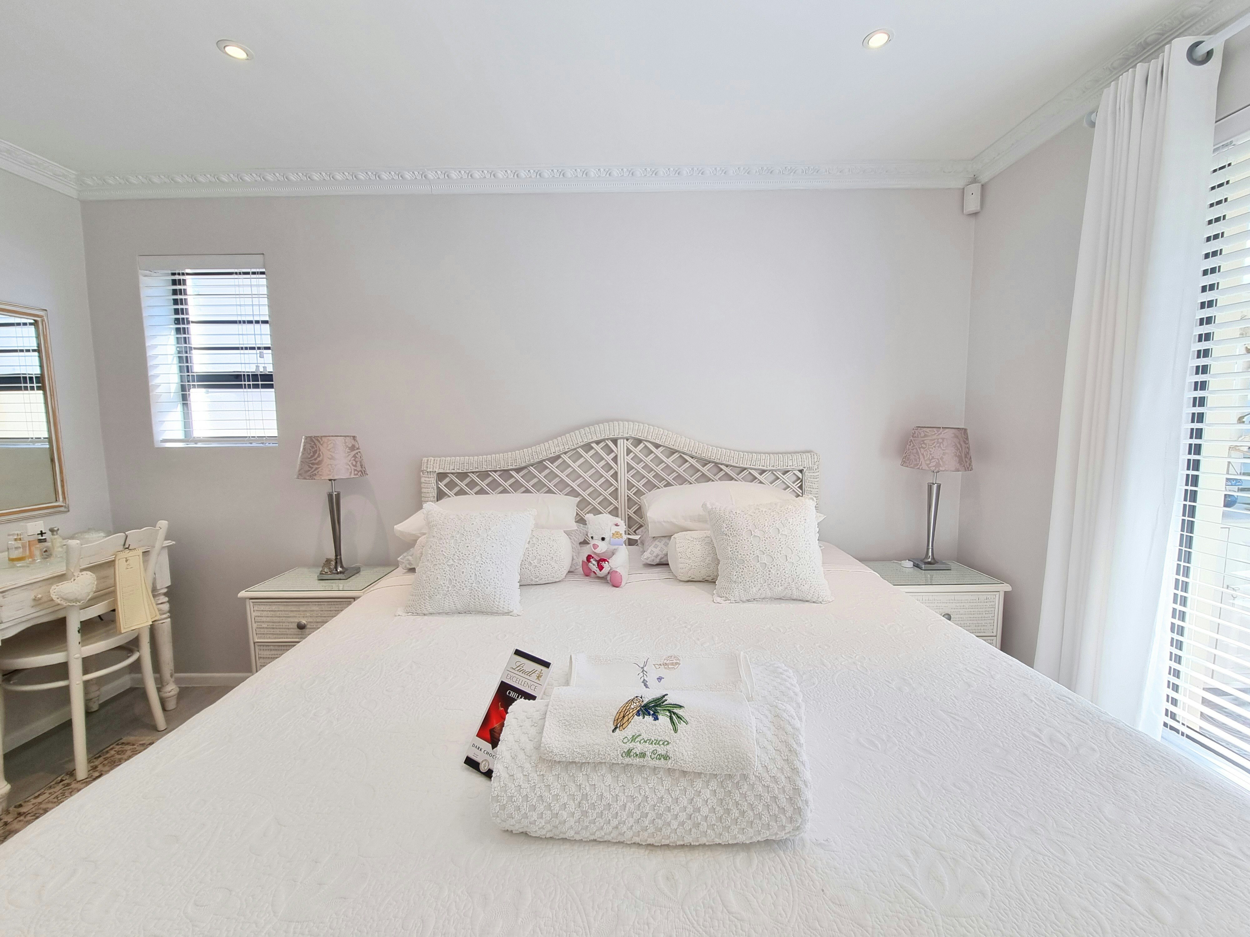 Die hoofslaapkamer is gemeubileer met 'n koningingrootte bed en het 'n en suite-badkamer met 'n stort, bad, toilet en wasbak. Die tweede slaapkamer het 'n dubbelbed en 2 enkelbeddens en het sy eie badkamer met 'n stort, toilet en wasbak.