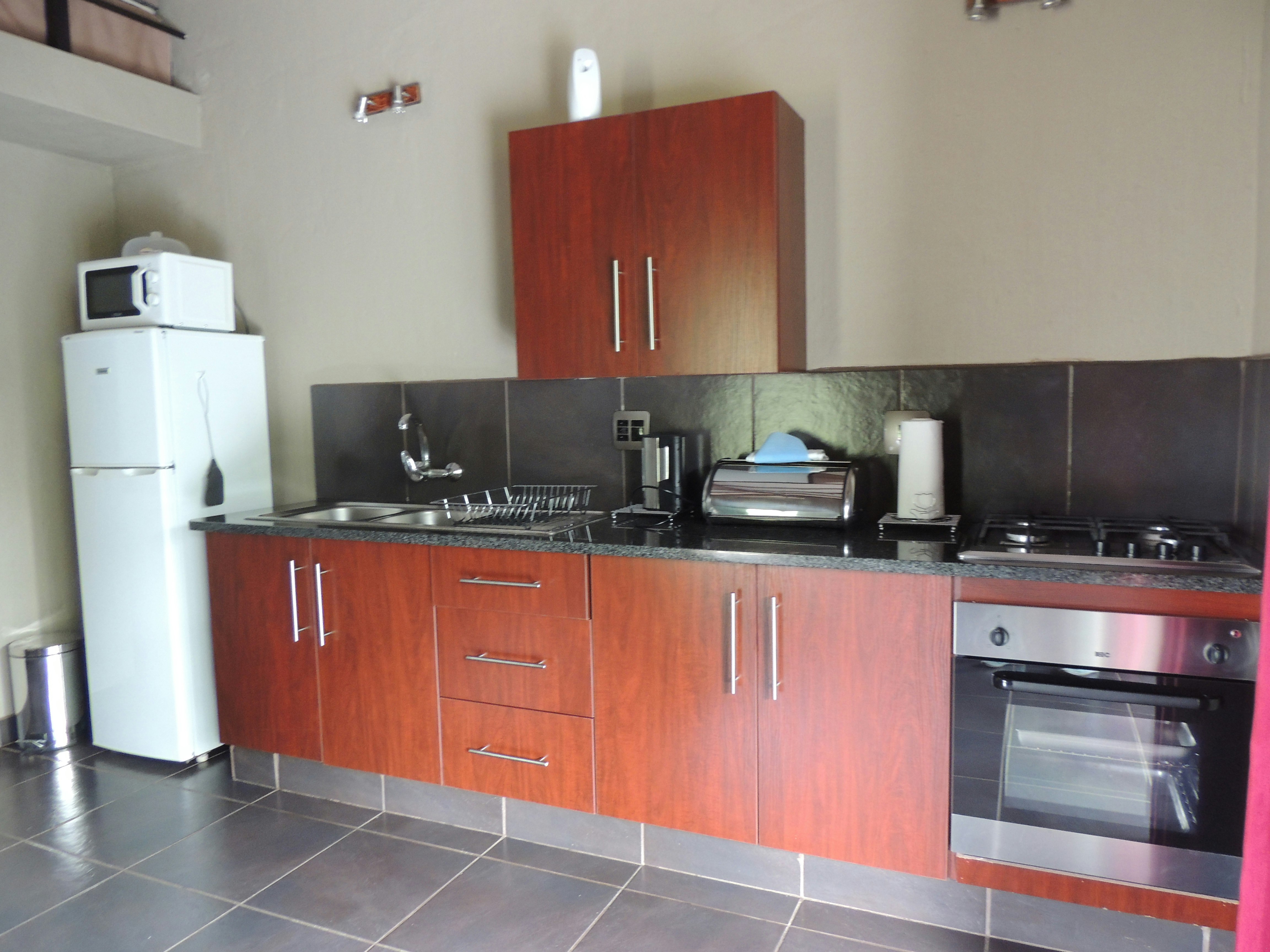 Die chalet is geskik vir 4 gaste en het 'n slaapkamer met 'n dubbelbed en 'n solderarea met 2 enkelbeddens. Die badkamer het 'n stort en die kombuisie is met 'n yskas, mikrogolf, stoof en oond toegerus.