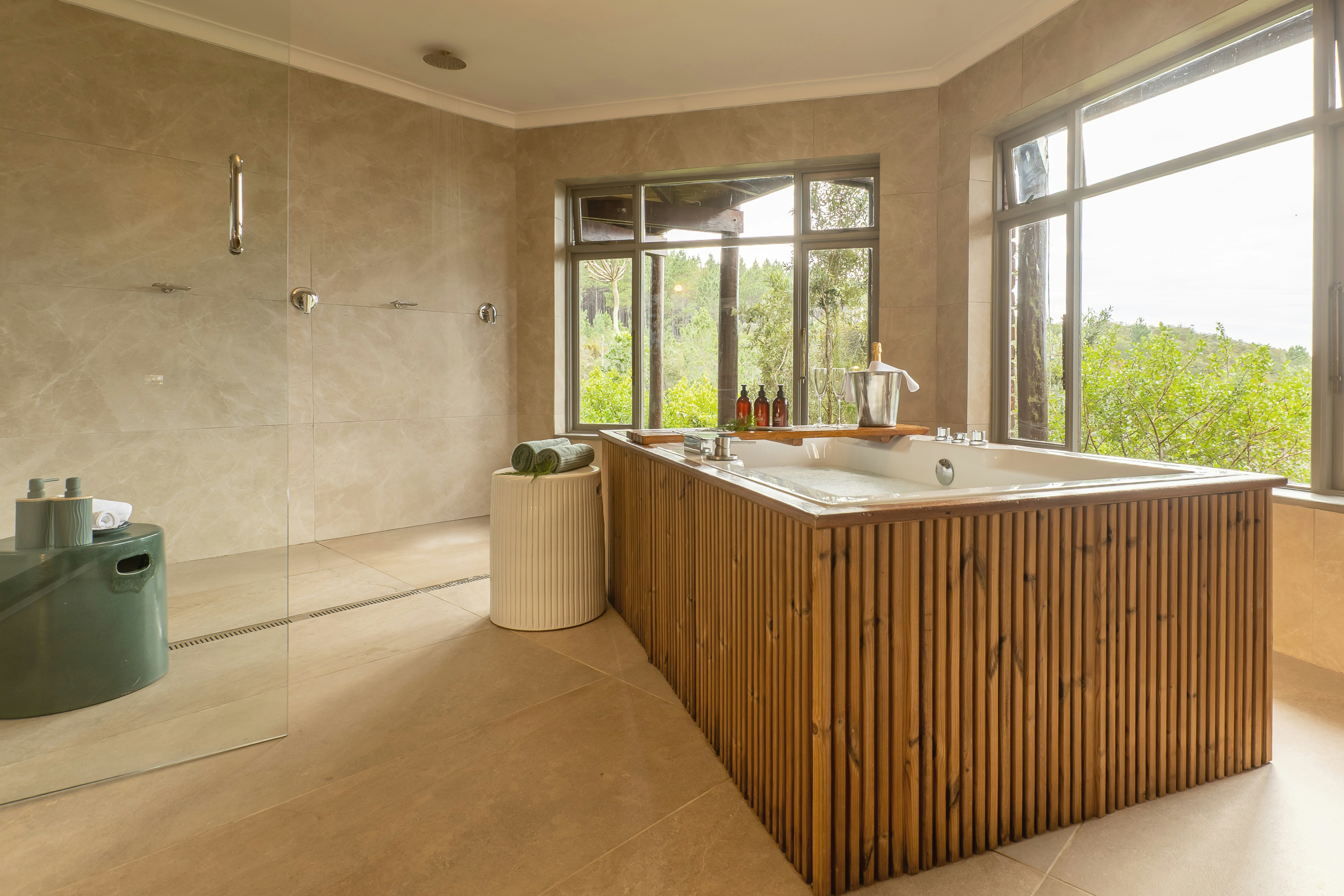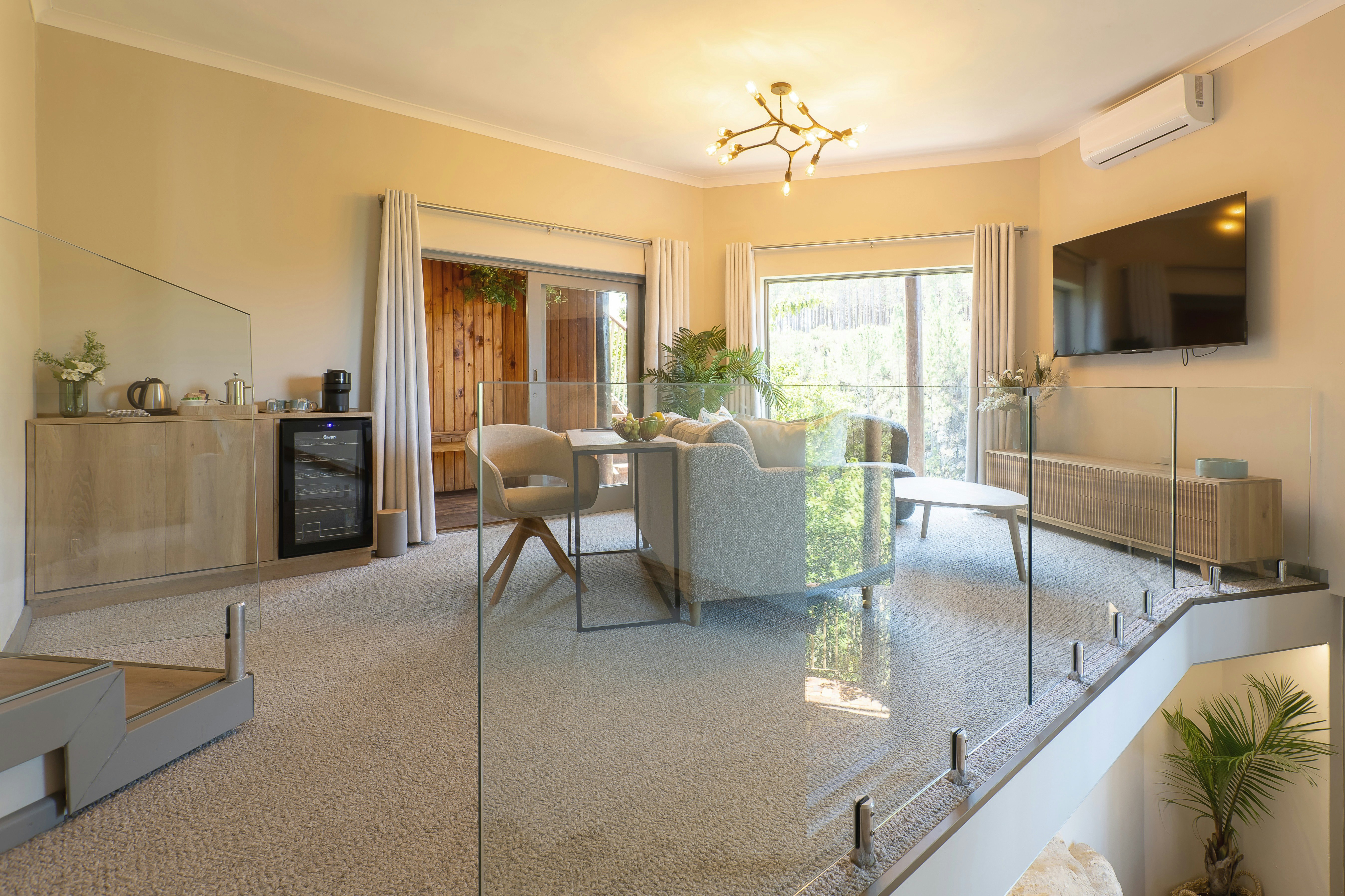 These units comprise a double bed and an en-suite bathroom. The units feature tea- and coffee-making facilities, bar fridge, flat-screen TV with a selection of DStv channels and a complimentary welcome pack on arrival. There are views over the gorge and the plantation.