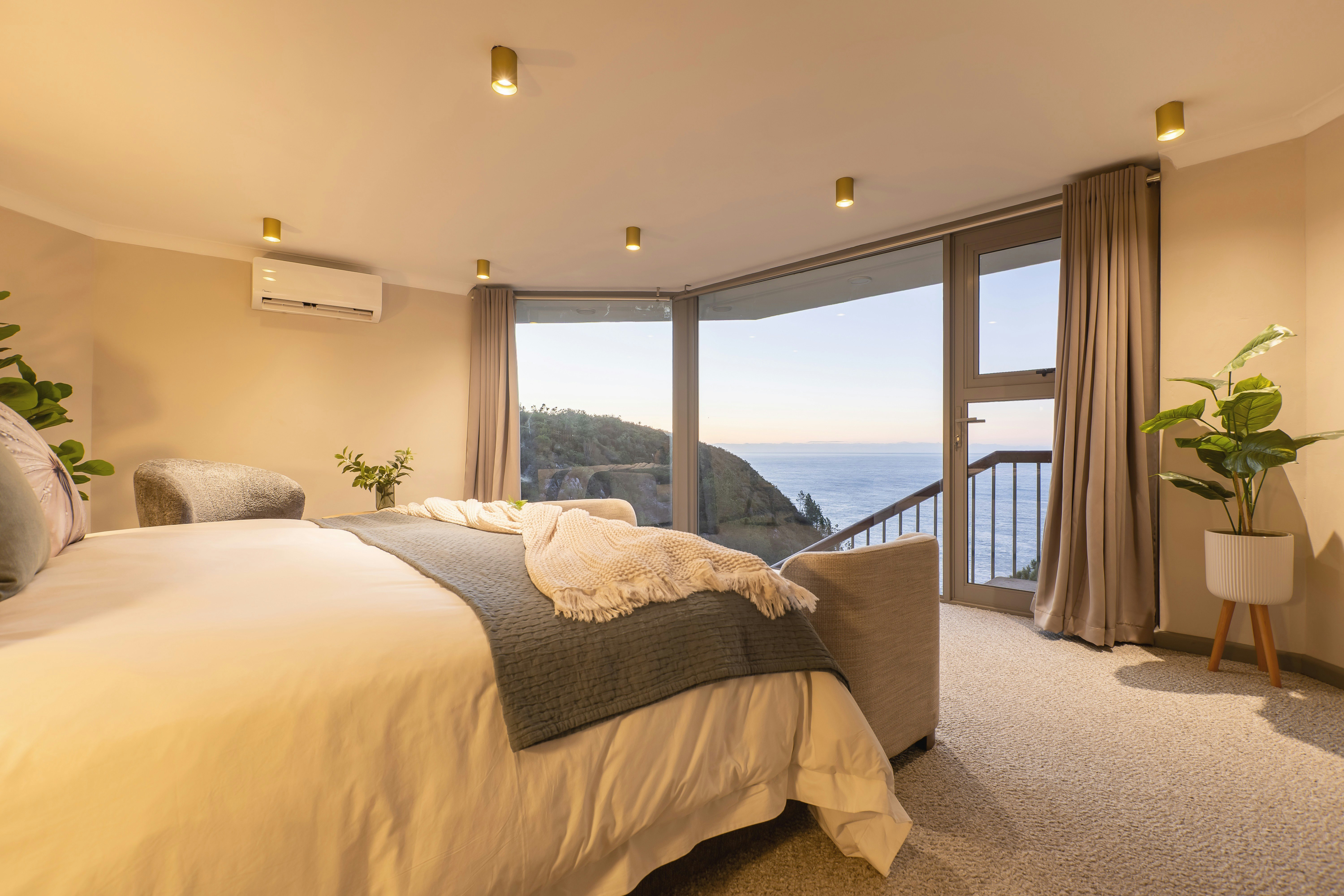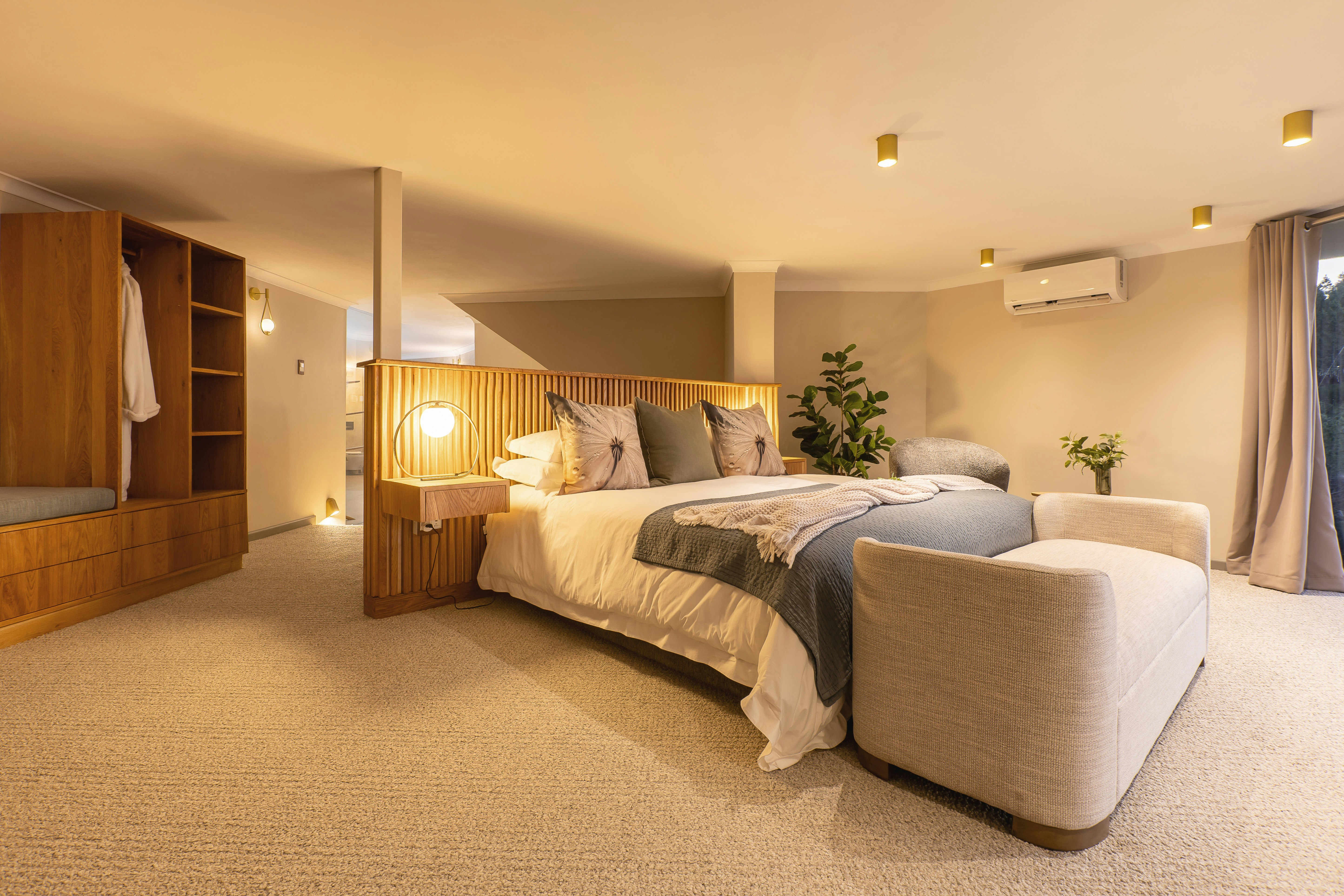 This unit is perfect for couples and is furnished with a king size bed and has an en-suit bathroom fitted with a shower and a spa bath. Guests has access to a private deck, there is also a specious lounge with waterfall and sea views. There is a luxurious wet room with double rain showers.