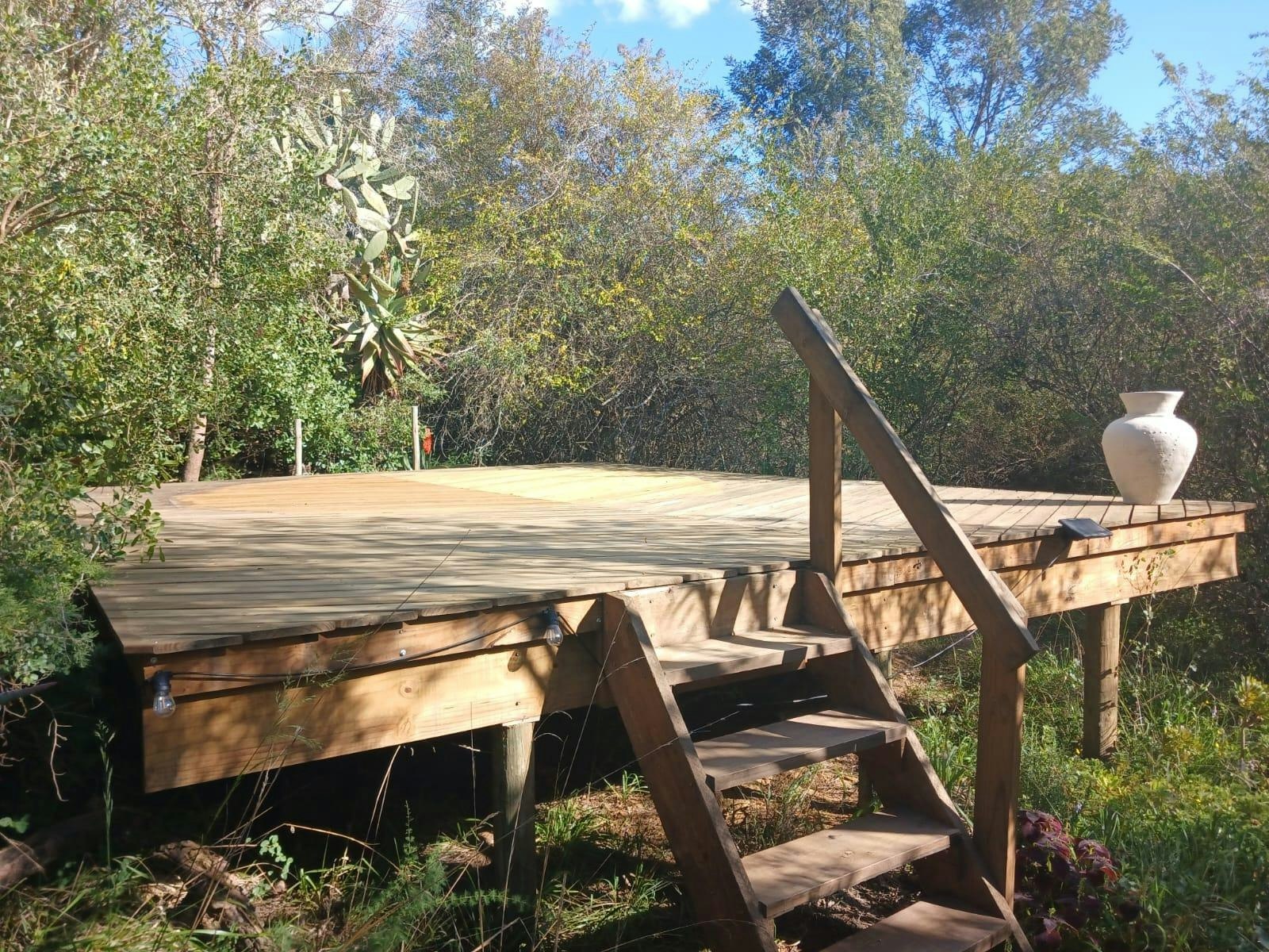 Die glampterrein beskik oor 'n kombuisdek met 'n gasstoof, wasbak, sitplek en braai-area, sowel as 'n gemeenskaplike vuurput en toegang tot 'n klimraam en riviergeriewe. Ablusiegeriewe sluit in gas-aangedrewe warm storte en spoeltoilette vir glamping, en 'n sonverhitte stort met 'n kompostoilet vir die rustieke kampeerplek. Troeteldiere is welkom met vooraf goedkeuring, en eienaars is verantwoordelik vir skoonmaak en enige skade.