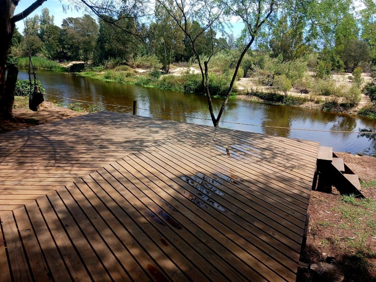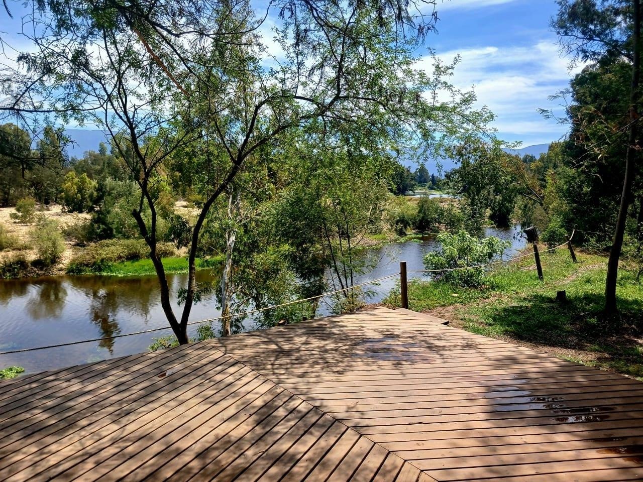 Gaste kan in ons af-netwerk-glampterrein, pasgemaakte A-raam-kajuit, of boho-rivierkajuit bly, almal met rivieruitsigte. Ons is troeteldiervriendelik, so jou harige vriend kan by die avontuur aansluit. Geniet plaaswandelings, voëlkyk, kajakvaart, visvang, swem in die rivier, of ontspan eenvoudig langs die water.
