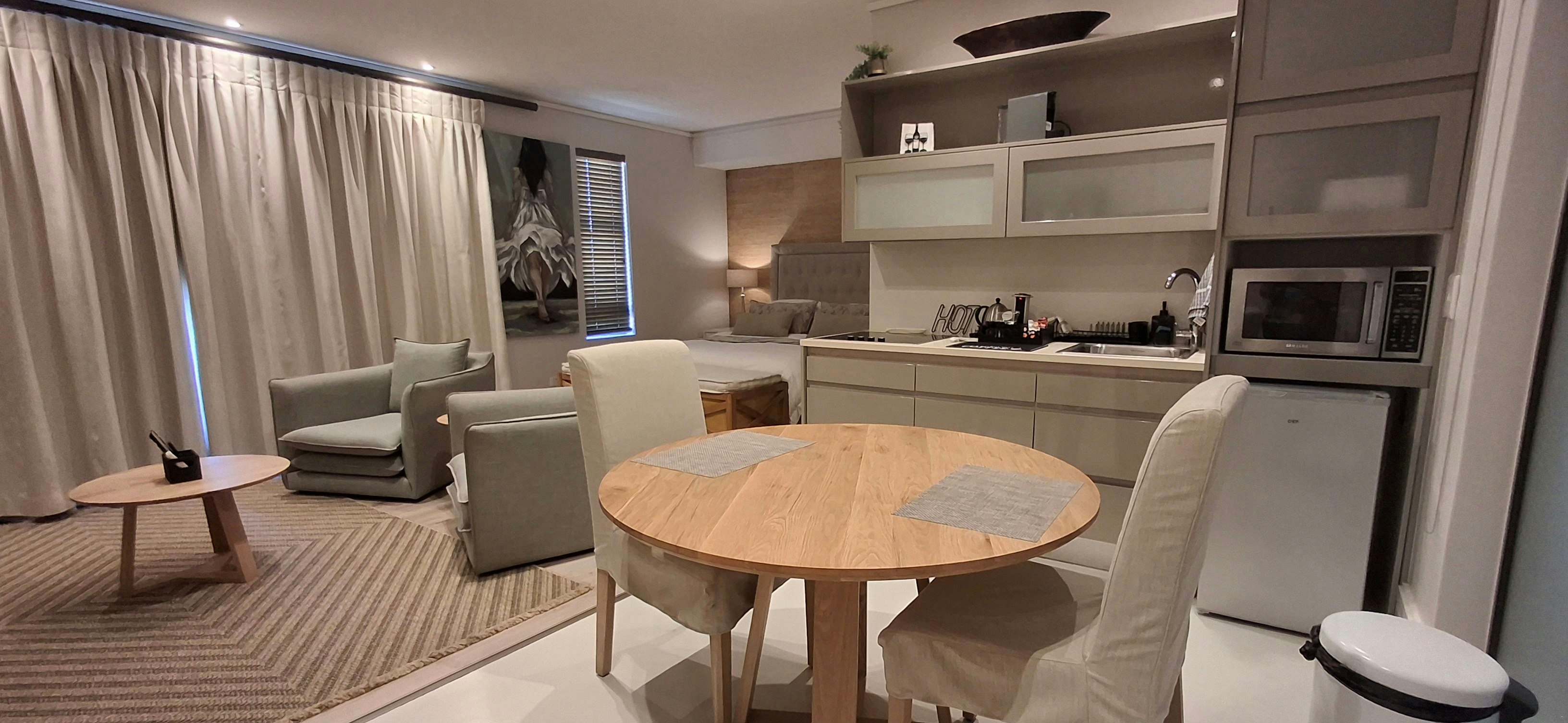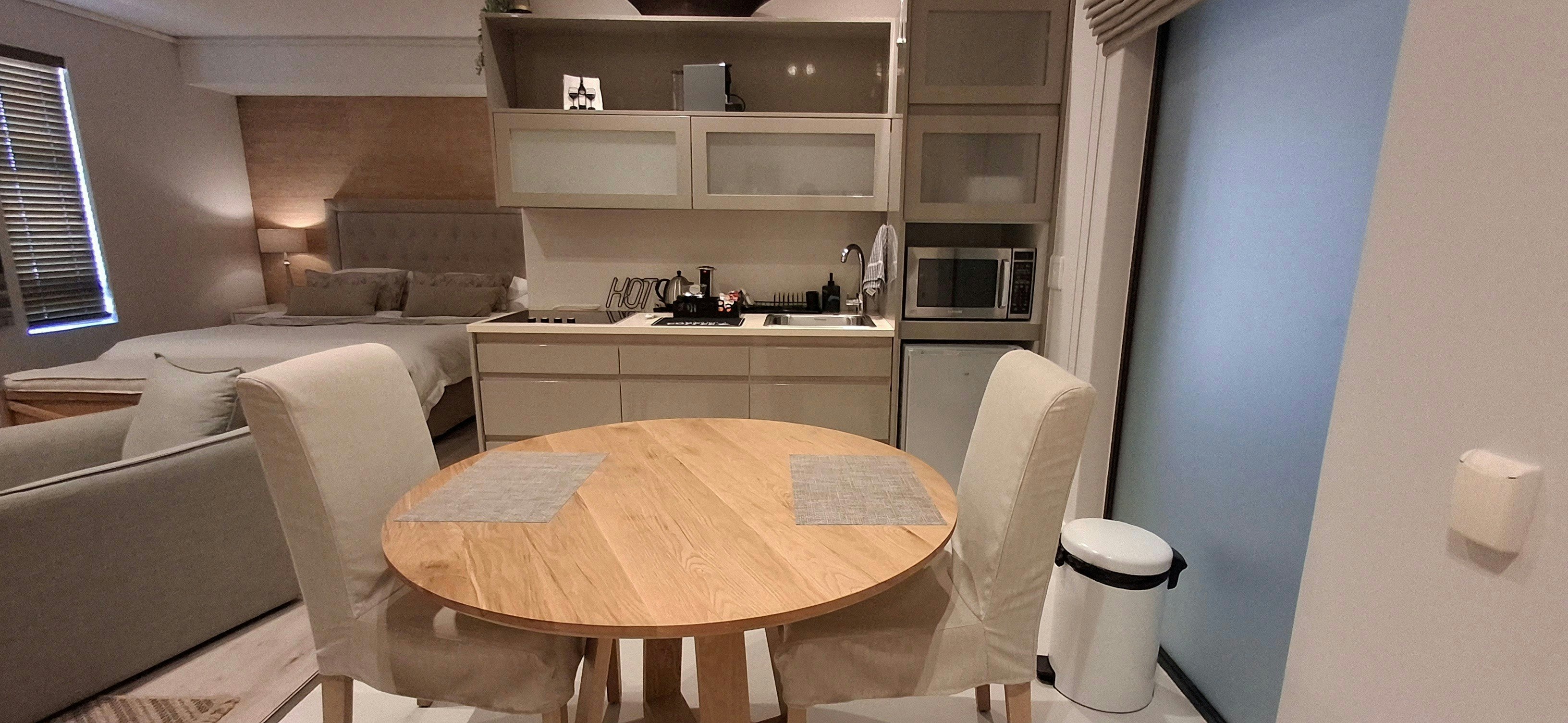 Die kombuisie is goed toegerus met 'n stoof, mikrogolfoond, ketel, broodrooster, koffiemasjien, eetgerei, breekware en 'n yskassie. Die sitarea bied gemaklike sitplek en 'n TV met stromingsdienste. Die leefarea maak oop na 'n balkon met buitesitplek en pragtige uitsigte oor die Waterfront. Veilige parkering op die perseel word voorsien, en 'n self-inboekstelsel word gebruik vir ekstra gerief.