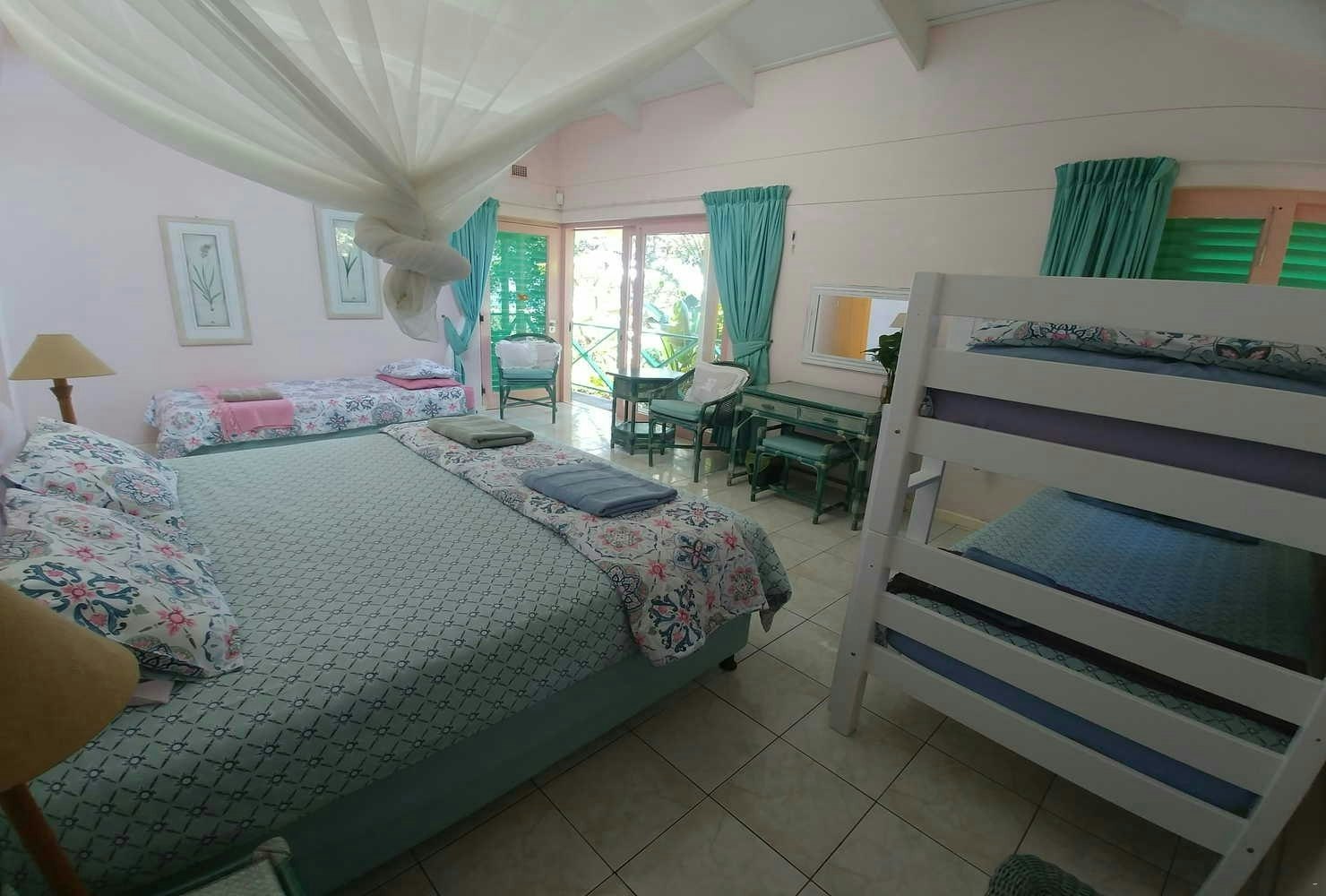 This property can accommodate up to 15 guests in 5 bedrooms, all with their own en-suite bathroom. The first bedroom is furnished with a king-size bed, a single bed and a child-only bunk bed, and has an en-suite bathroom that is fitted with a bath, shower, washbasin and toilet. The second and third bedroom are both interleading rooms and they are furnished with 1 three-quarter bed and a child-only bunk bed. Their en-suite bathrooms are both fitted with a bath, washbasin and toilet. The fourth bedroom is furnished with 2 single beds, while the fifth bedroom is furnished with a double bed. The final two en-suite bathrooms are both fitted with a shower, washbasin and toilet. Linen and bath towels are provided, however, guests are required to bring their own swimming towels.
