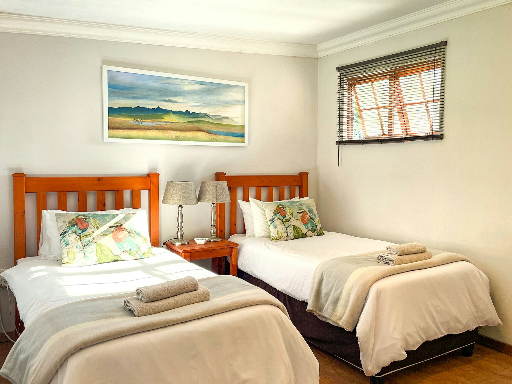 Dié verblyf bied 4 gastekamers wat elk slaapplek aan 2 gaste bied. Die eerste kamer het enkelbeddens en die ander 3 kamers het elk 'n dubbelbed. Elke en suite-badkamer het 'n stort en 'n bad, of slegs 'n stort. Alle linne en badhanddoeke word voorsien.
