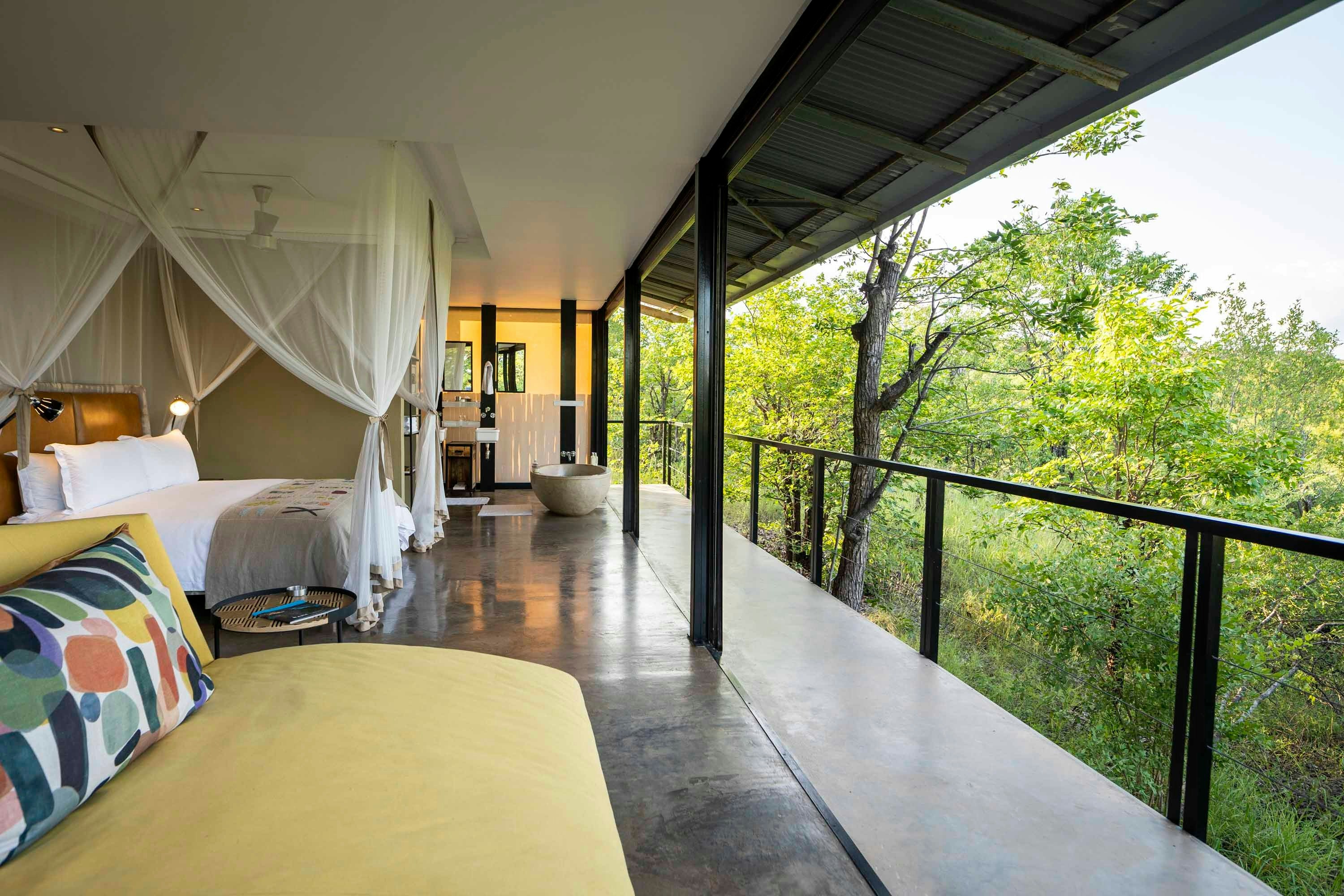 Dit bied slaapplek aan 24 gaste. Verblyf word in 12 unieke, vrystaande oopplan-suites gebied wat elk 'n en suite-badkamer het. Die suites bied uitsigte oor die wildernis.