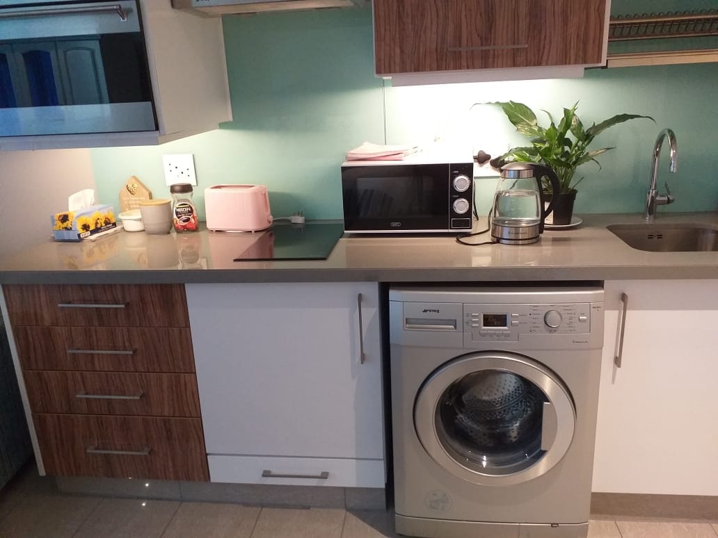 Die smaakvol gemeubileerde ateljeewoonstel het 'n koningingrootte-bed, 'n slaapbank vir 2 kinders, 'n badkamer met 'n stort en 'n kombuisie. Die kombuisie is met 'n yskas, stoof, oond, mikrogolfoond en ketel toegerus. Daar is ook WiFi en 'n TV met DStv.
