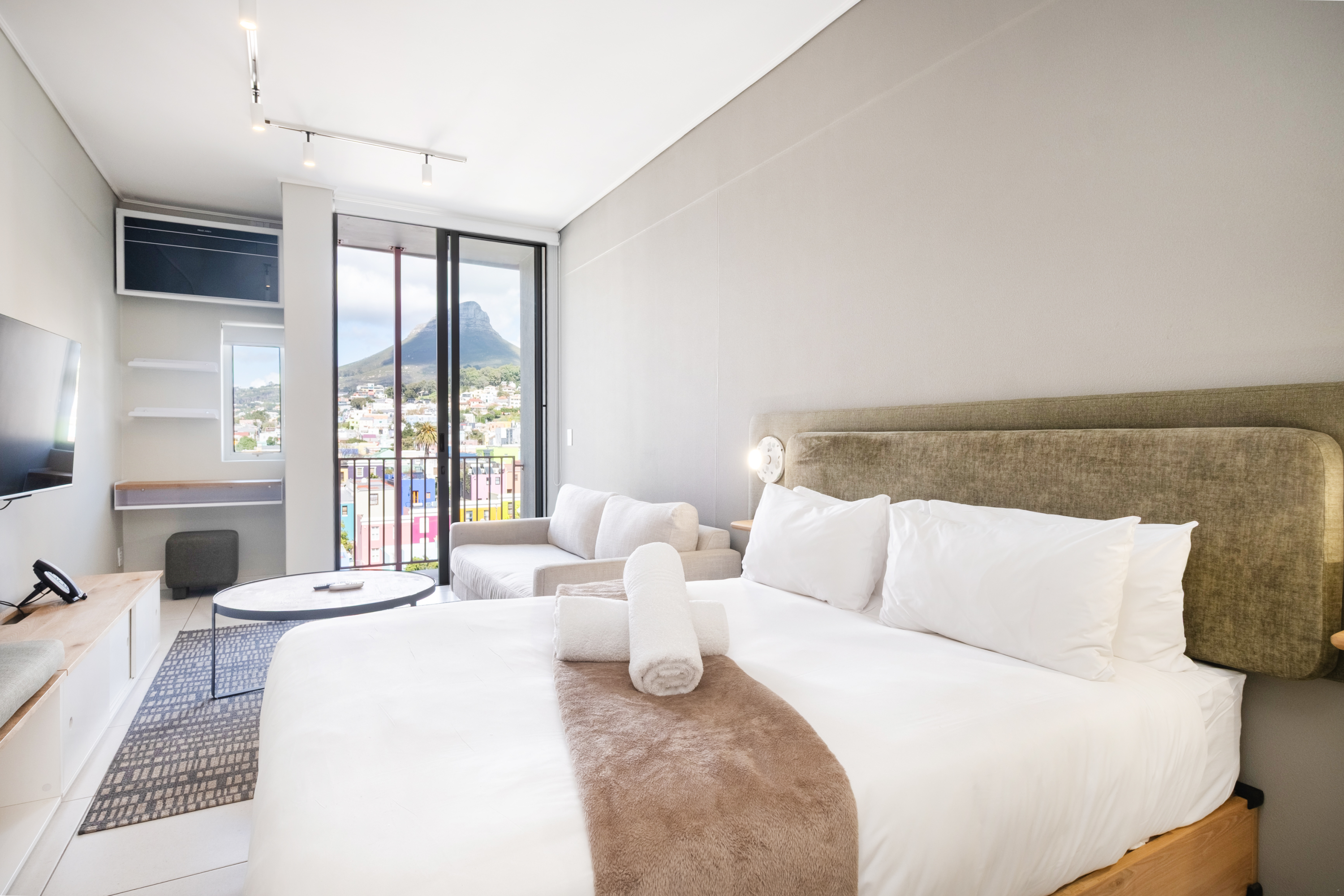 Die woonstel maak oop na 'n klein balkon. Gaste kan die dakswembad met pragtige uitsigte oor die stad en berge geniet, fiks bly in die gimnasium op die perseel, of ontspan by een van die koffiewinkels in die gebou of naby. Met maklike toegang tot die V&A Waterfront, CTICC en openbare vervoer, is dit 'n goeie basis om Kaapstad te verken.