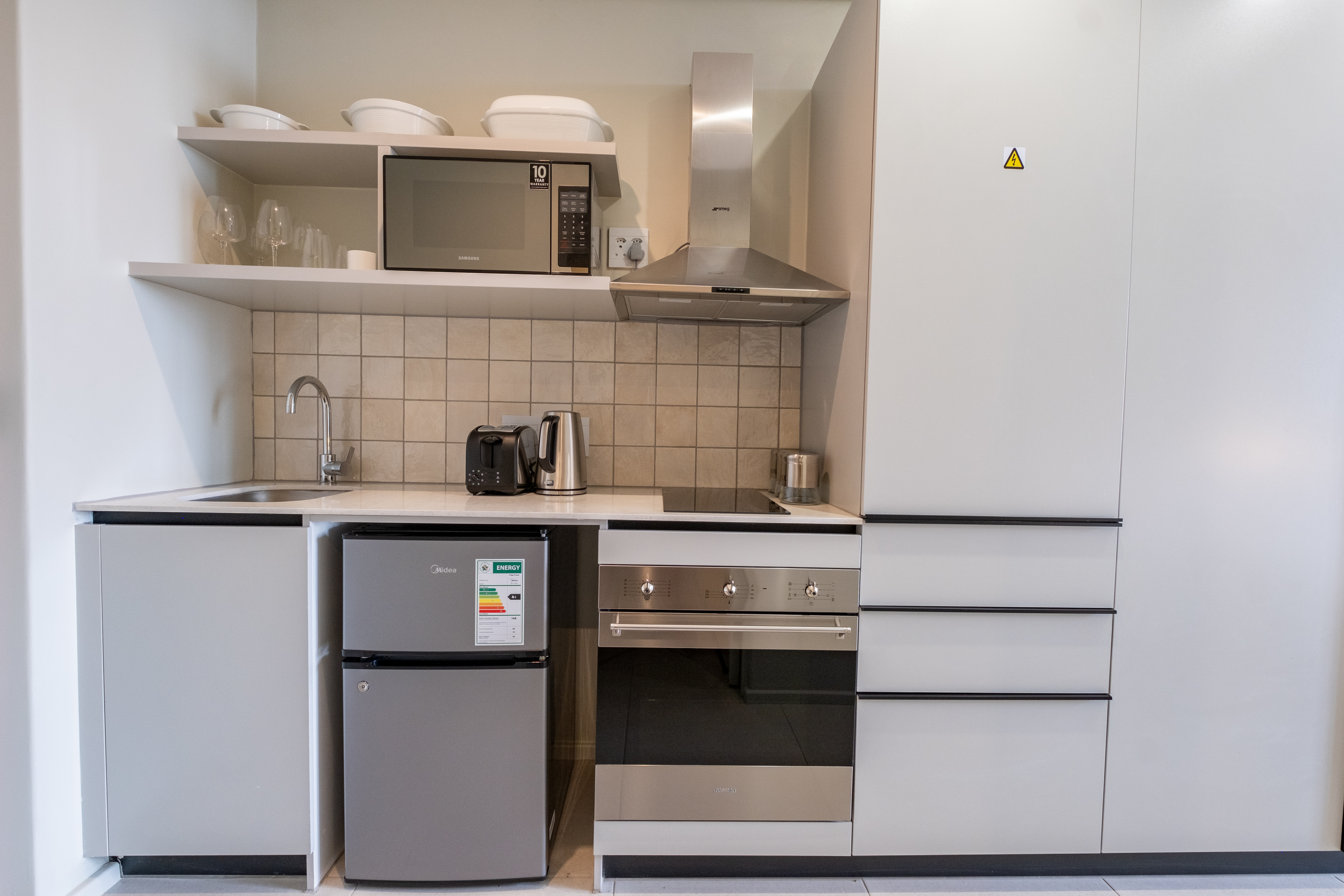 Die kombuisie is volledig toegerus met 'n stoof, oond, mikrogolfoond, ketel, broodrooster, yskas-vrieskas, breekware en eetgerei. Die sitarea bied gemaklike sitplek vir gaste om te eet en te ontspan, en vir vermaak is 'n slim-TV en toegang tot gratis WiFi beskikbaar. 'n Toegewyde werkstasie word ook voorsien.