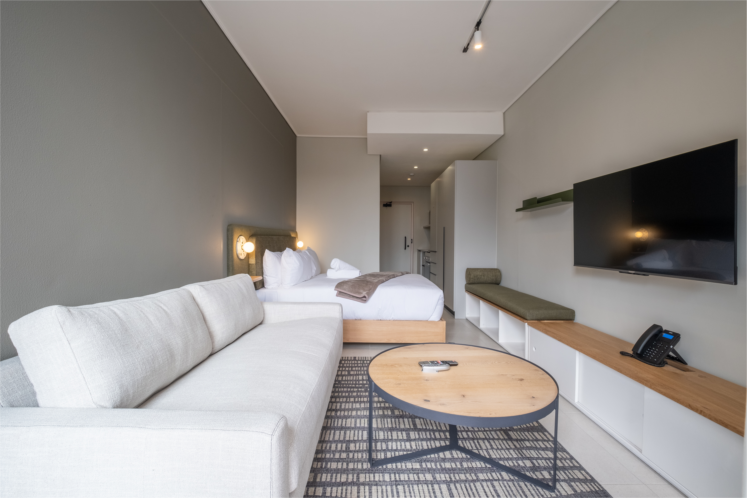 Hierdie ateljee met lugversorging bied slaapplek vir 2 gaste en beskik oor 'n oopplan-slaaparea en 'n aparte badkamer. Die slaaparea is gemeubileer met 'n dubbelbed, terwyl die badkamer 'n stort, toilet en wasbak het. Linne en badhanddoeke word voorsien.