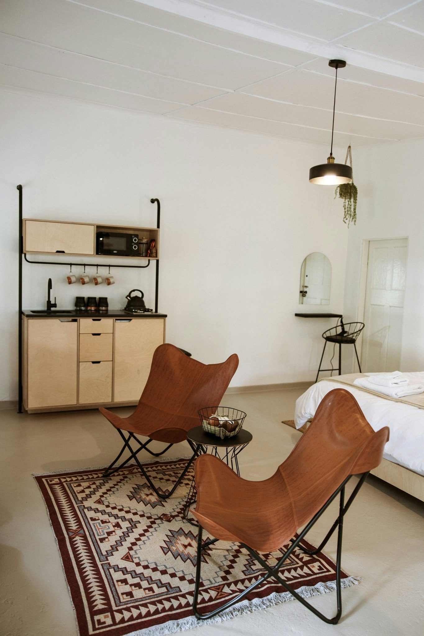Elke kamer het 'n kombuisie wat toegerus is met 'n mikrogolfoond, tee- en koffiemaakgeriewe, 'n eetarea en komplimentêre varsgebakte brood word voorsien. Gaste kan ontspan in 'n privaat sitkamer wat 'n knus kaggel het en oopmaak op 'n patio wat oor die tuin uitkyk. Rook word nie in die kamers toegelaat nie.