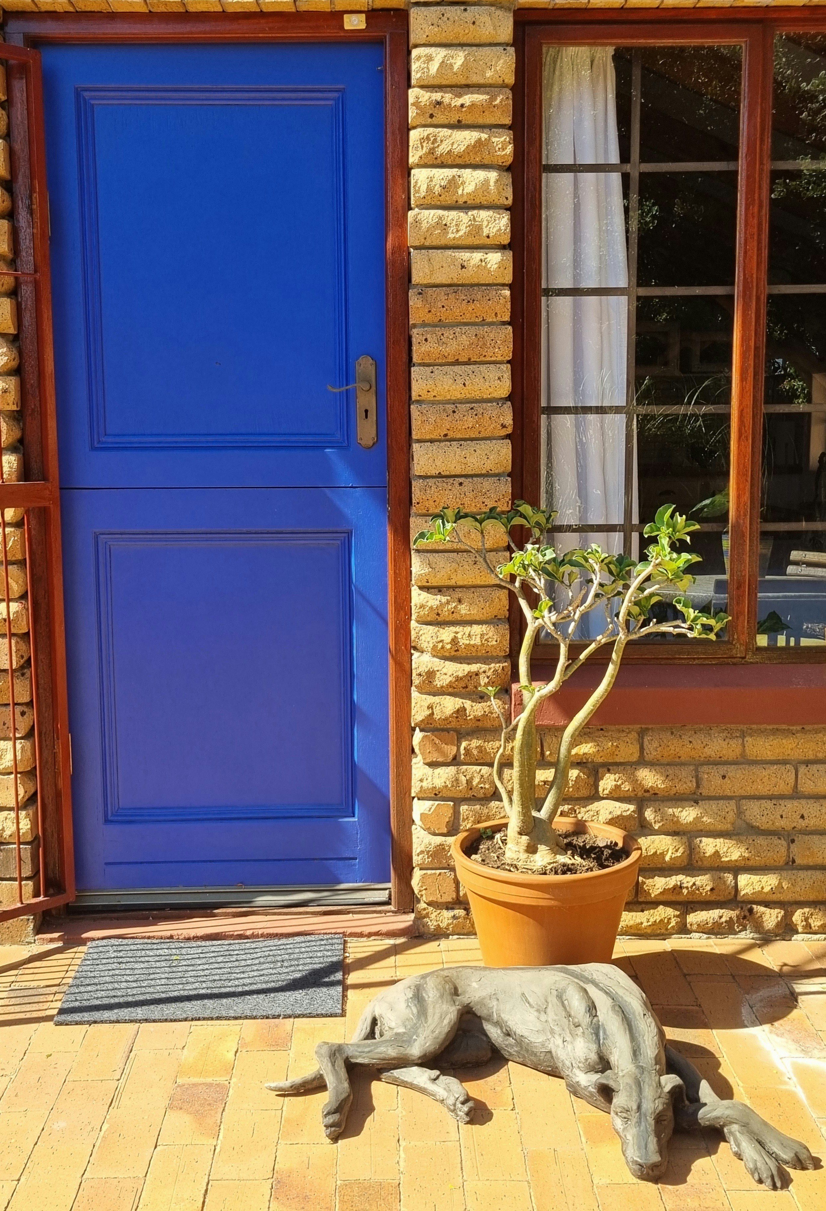 Die Sculpture Yard bied gemaklike selfsorgverblyf in 'n ruim eenheid in Gordonsbaai, Wes-Kaap — ideaal vir 'n paartjie se wegbreek.