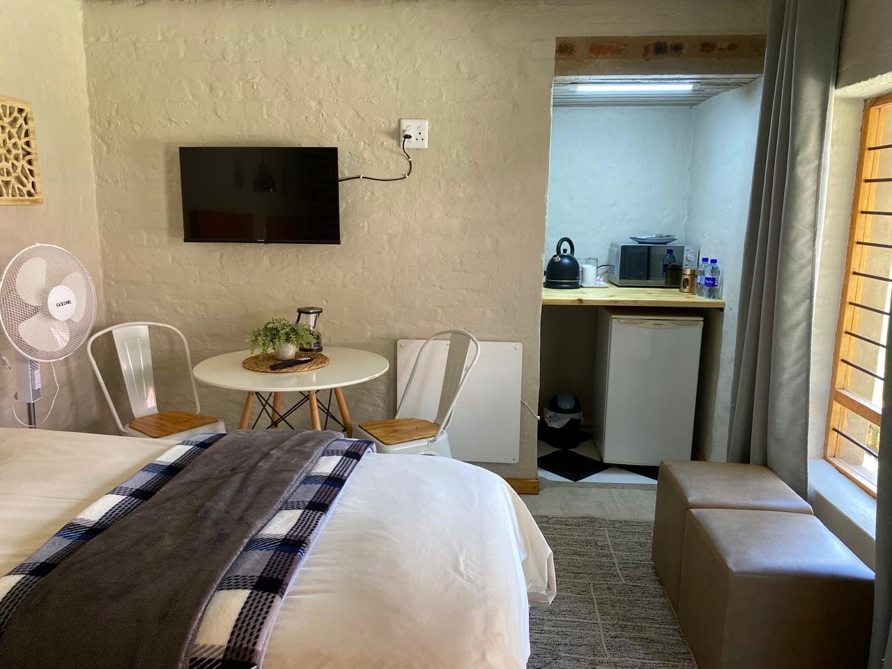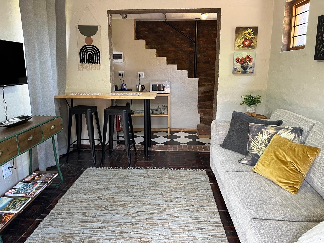 Die kothuis bied slaapplek vir tot 2 gaste. Die slaapkamer bo het 'n koningingrootte-bed en 'n en suite-badkamer met 'n stort, toilet en wasbak. Die sitarea is onder, sowel as die kombuis, wat volledig toegerus is vir selfsorg. Die glasdeure lei na die omheinde tuin met 'n eetkamertafel met stoele en 'n braai-area.