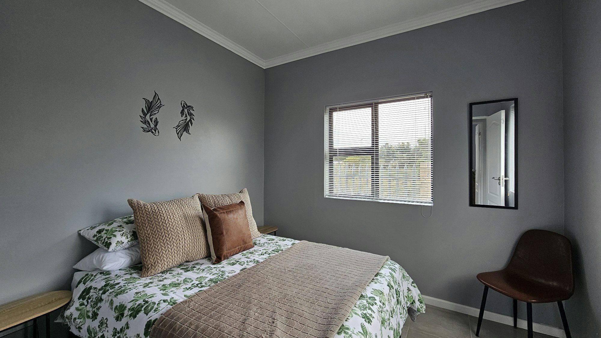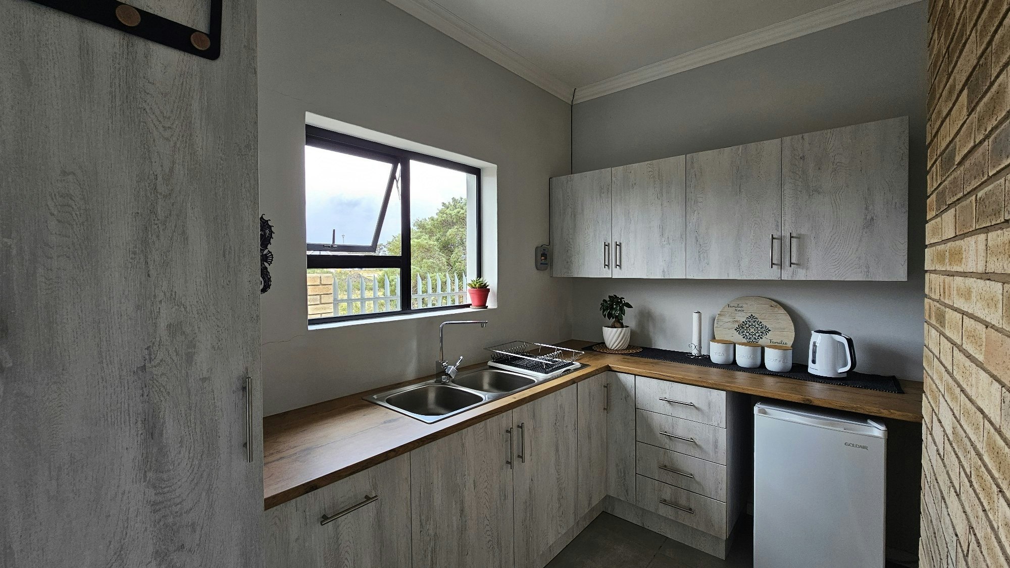 Die eenheid beskik oor 'n sitkamer met gemaklike sitplek en 'n TV vir vermaak. Die kombuis is toegerus met 'n mini-oond met 'n tweeplaatstoof, 'n yskassie en koffie- en teemaakgeriewe. Die eetarea sluit 'n ingeboude binnebraai in, perfek vir koeler aande of 'n gesellige byeenkoms. Die groot grasperk buite bied baie ruimte vir kinders om te speel, terwyl veilige parkering op die perseel met 'n outomatiese hek gemoedsrus verseker.