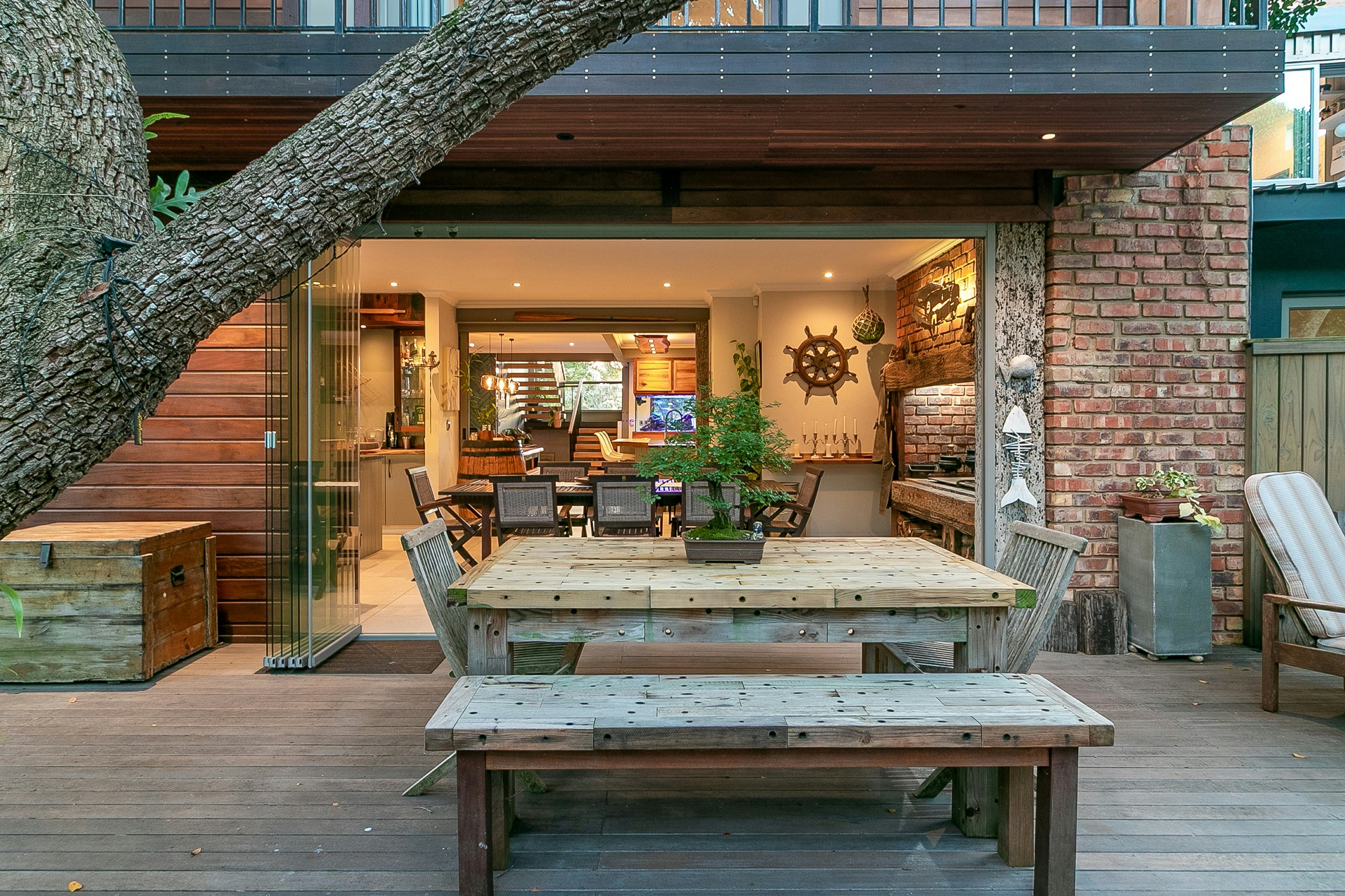 Die kroegarea lei na 'n dek met 'n buitelug-onthaalarea wat 'n vuurput, braaigeriewe, 'n houtvuur-warmbad en buite-eetplekke insluit. Uitsigte oor die omliggende boomtoppe kan geniet word vanaf verskeie buitelugruimtes, insluitend die patio, balkon en tuin. Besienswaardighede en geriewe in die omliggende gebied sluit in boswandelings, strandmeer-aktiwiteite, strande, gholfbane en gewilde uitkykpunte langs die Tuinroete.