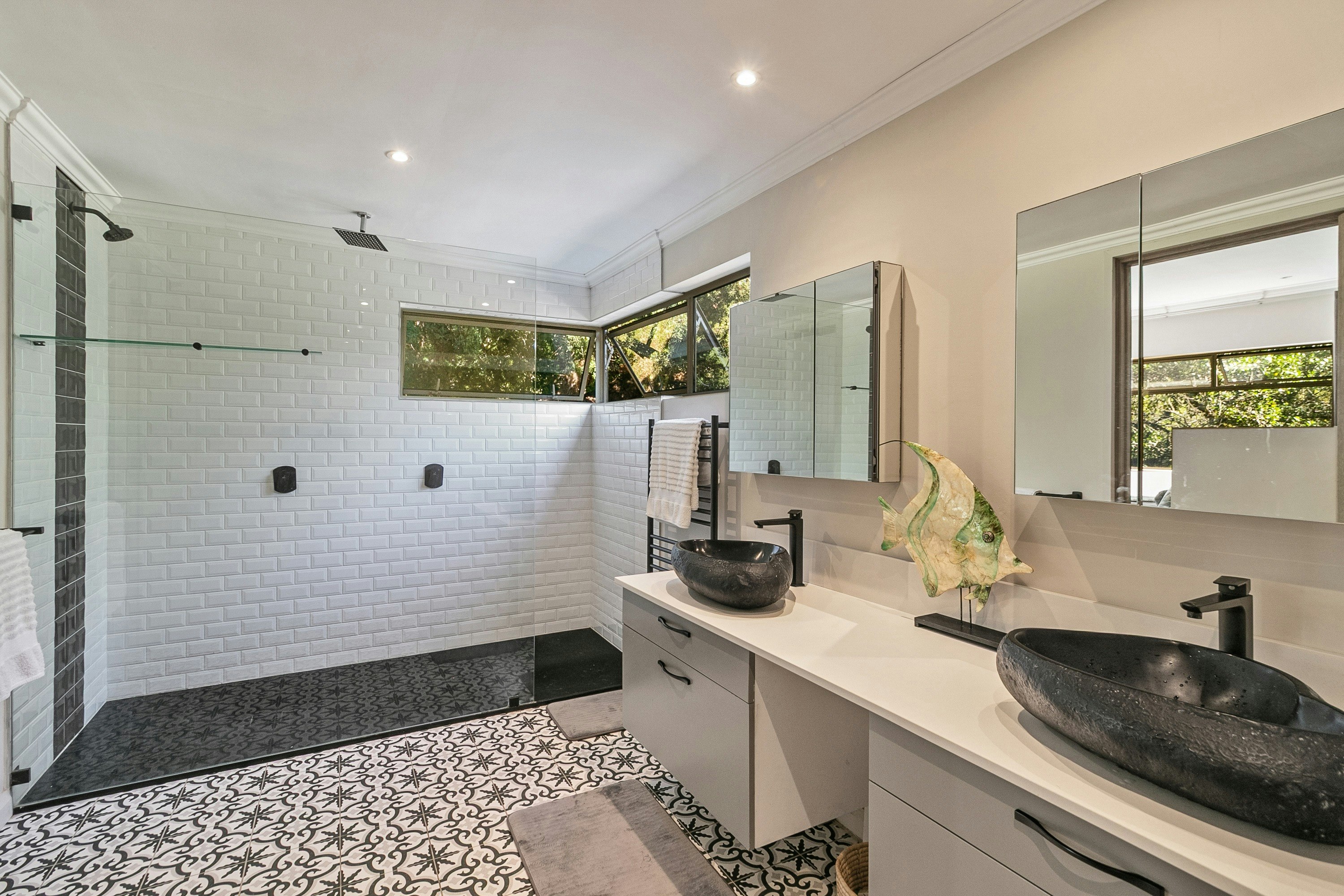 Akkommodasie word aangebied in 5 slaapkamers. Slaapkamer 1 bevat 'n koninggrootte bed en het 'n en suite-badkamer met 'n stort. Slaapkamers 2 en 3 bevat elk 'n koningingrootte bed, en albei het en suite-badkamers met 'n stort. Slaapkamers 4 en 5 bevat elk 'n koningingrootte bed en deel 'n badkamer met 'n bad, stort en toilet. Beddegoed word voorsien.