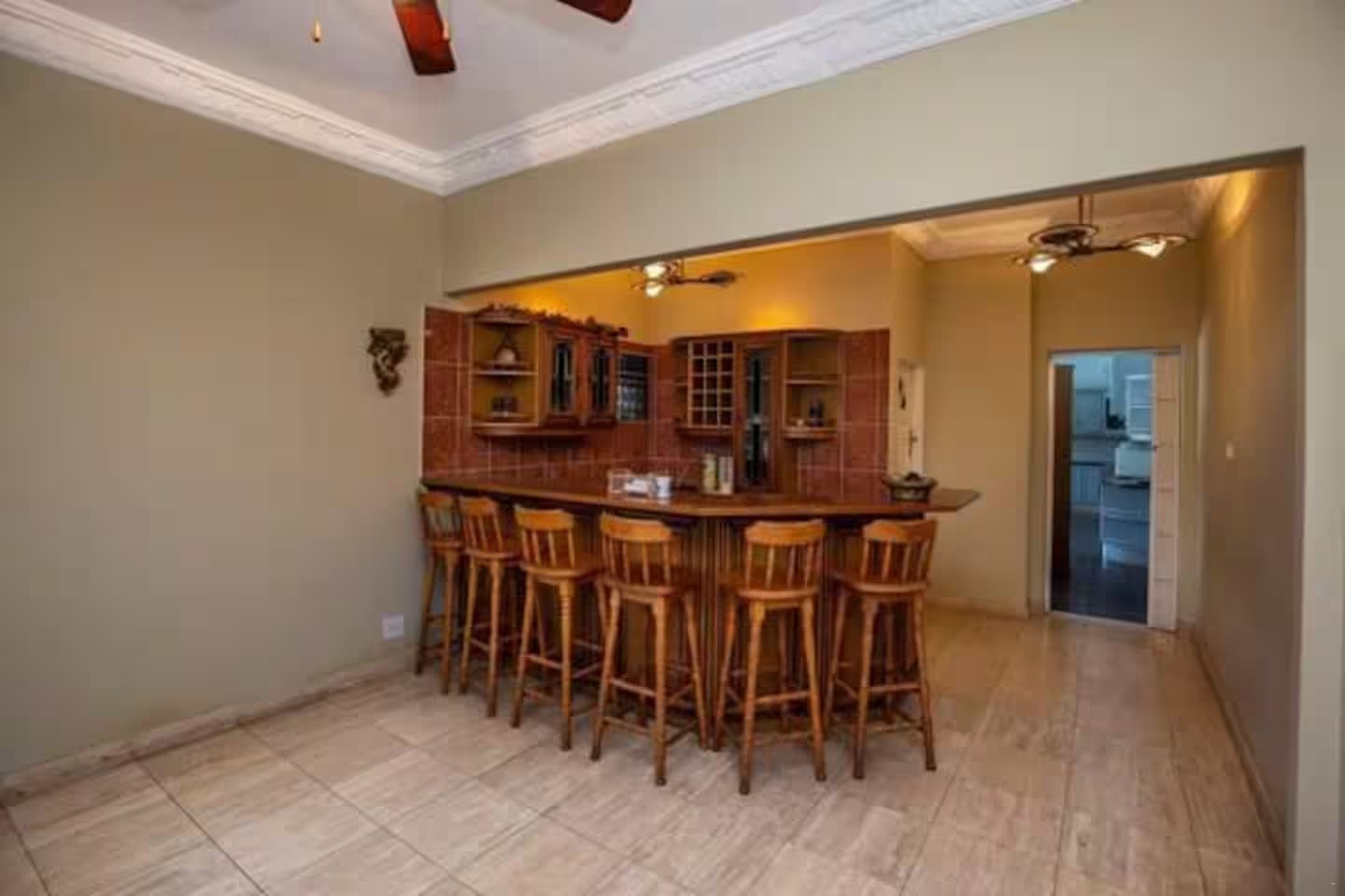 The living area includes a fully equipped kitchen with a stove, oven, microwave, fridge-freezer, cutlery, crockery, and a coffee machine. A separate scullery offers a washing machine and dishwasher for added convenience. Adjacent to the kitchen is a 7-seater dining table, while the beautifully decorated dining room features a larger table with ample seating for shared meals. The lounge area provides comfortable seating and a TV, and a bar area is also available. Free Wi-Fi is accessible throughout the home.