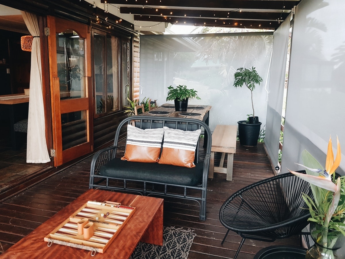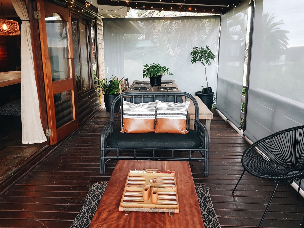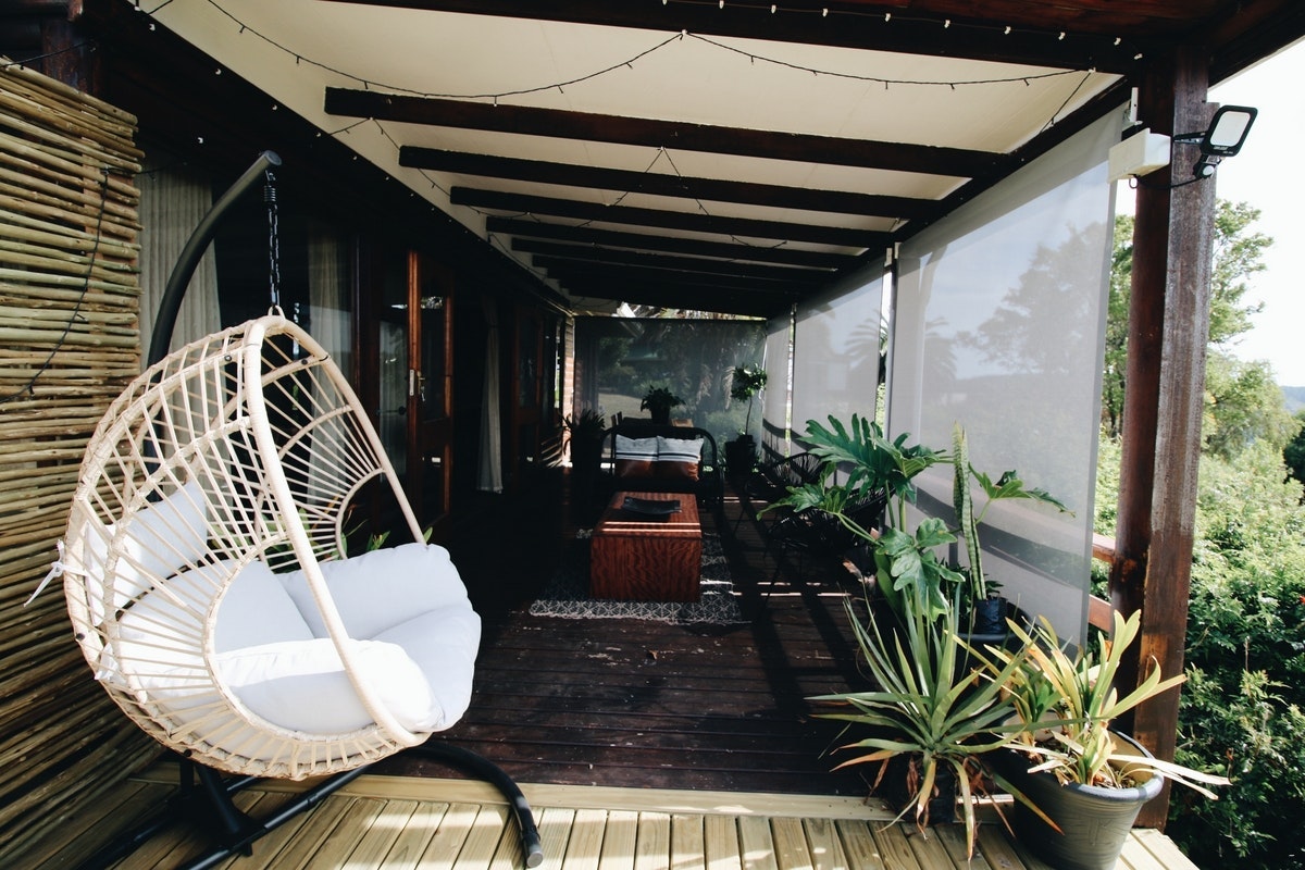 Die sitarea lei na 'n lieflike stoep met buitemeubels, braaigeriewe en 'n boma-braai wat met 'n uitsig spog.