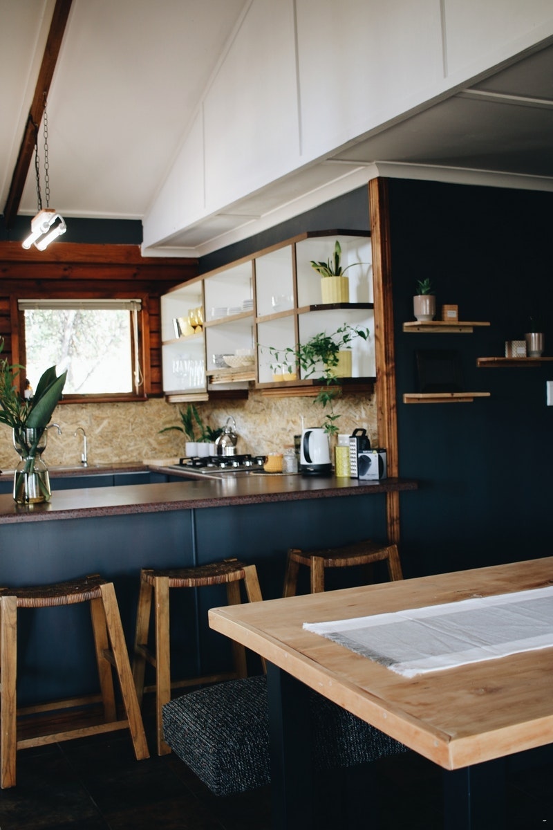 Die oopplan-kombuis is met 'n yskas-vrieskas, gasstoof, mikrogolfoond, basiese breekware, eetgerei, koffie- en teemaakgeriewe en 'n eiland met stoele toegerus. Dit lei na 'n etenstafel met stoele en 'n leefarea met gemaklike rusbanke en 'n knus kaggel.