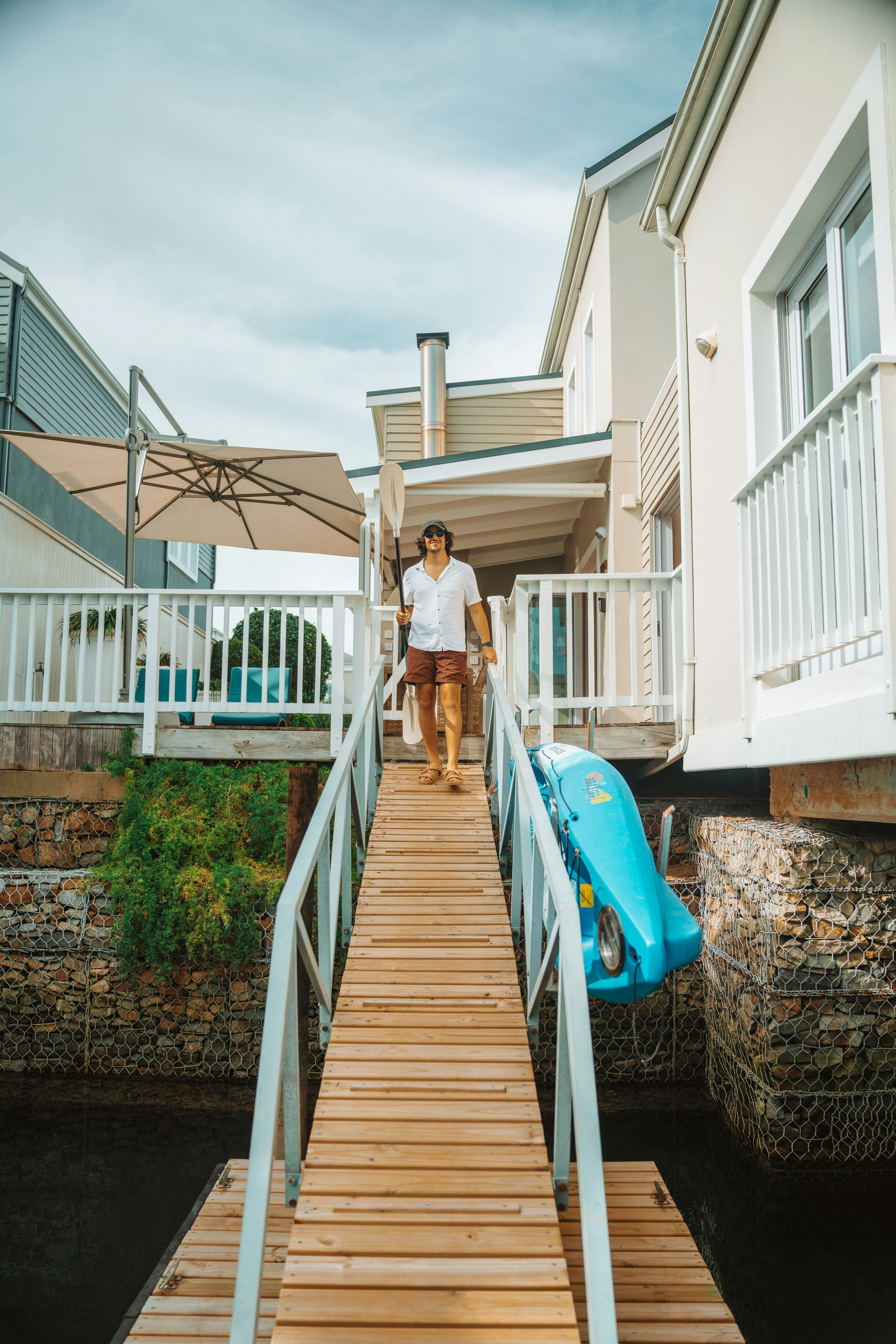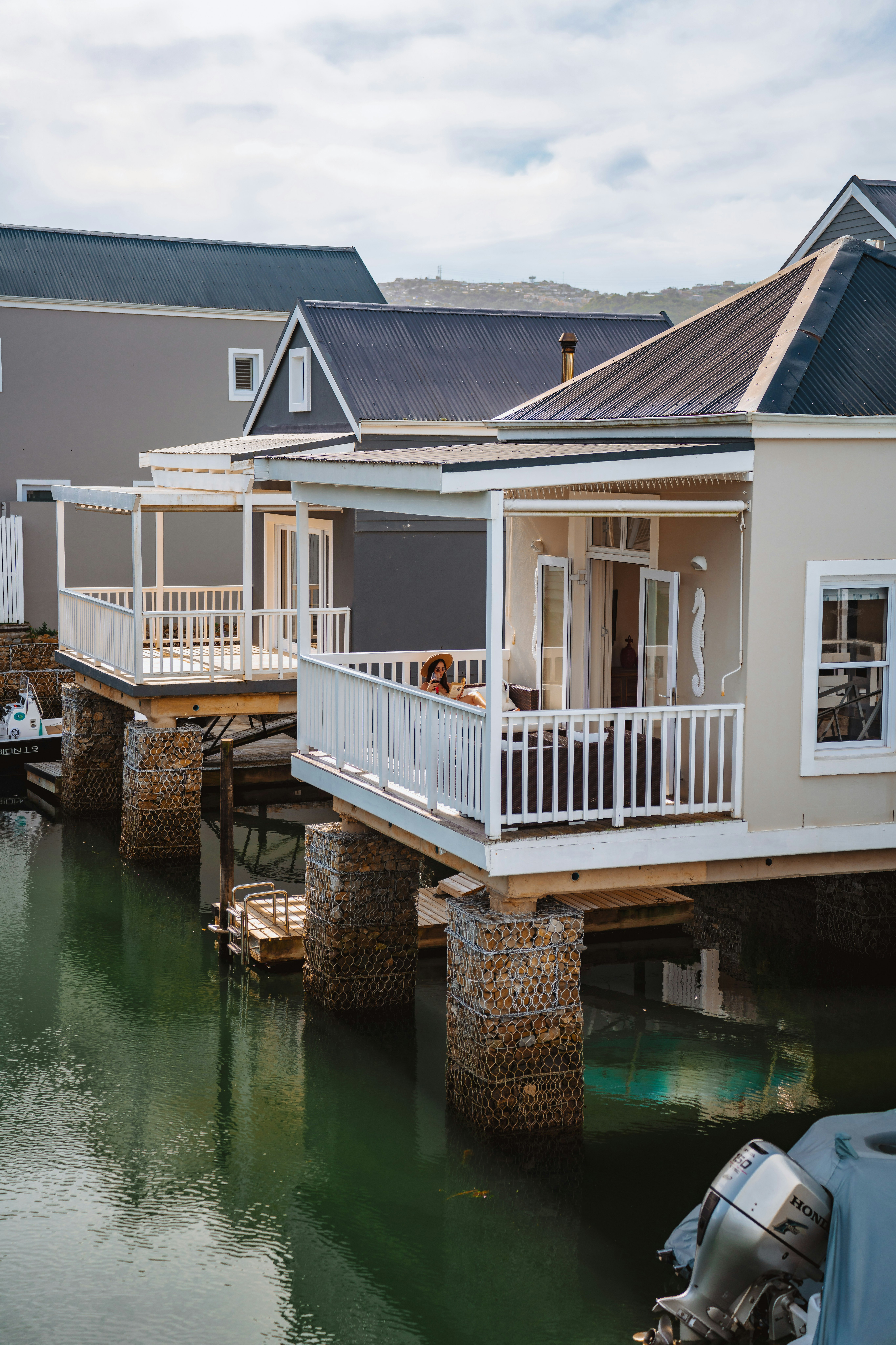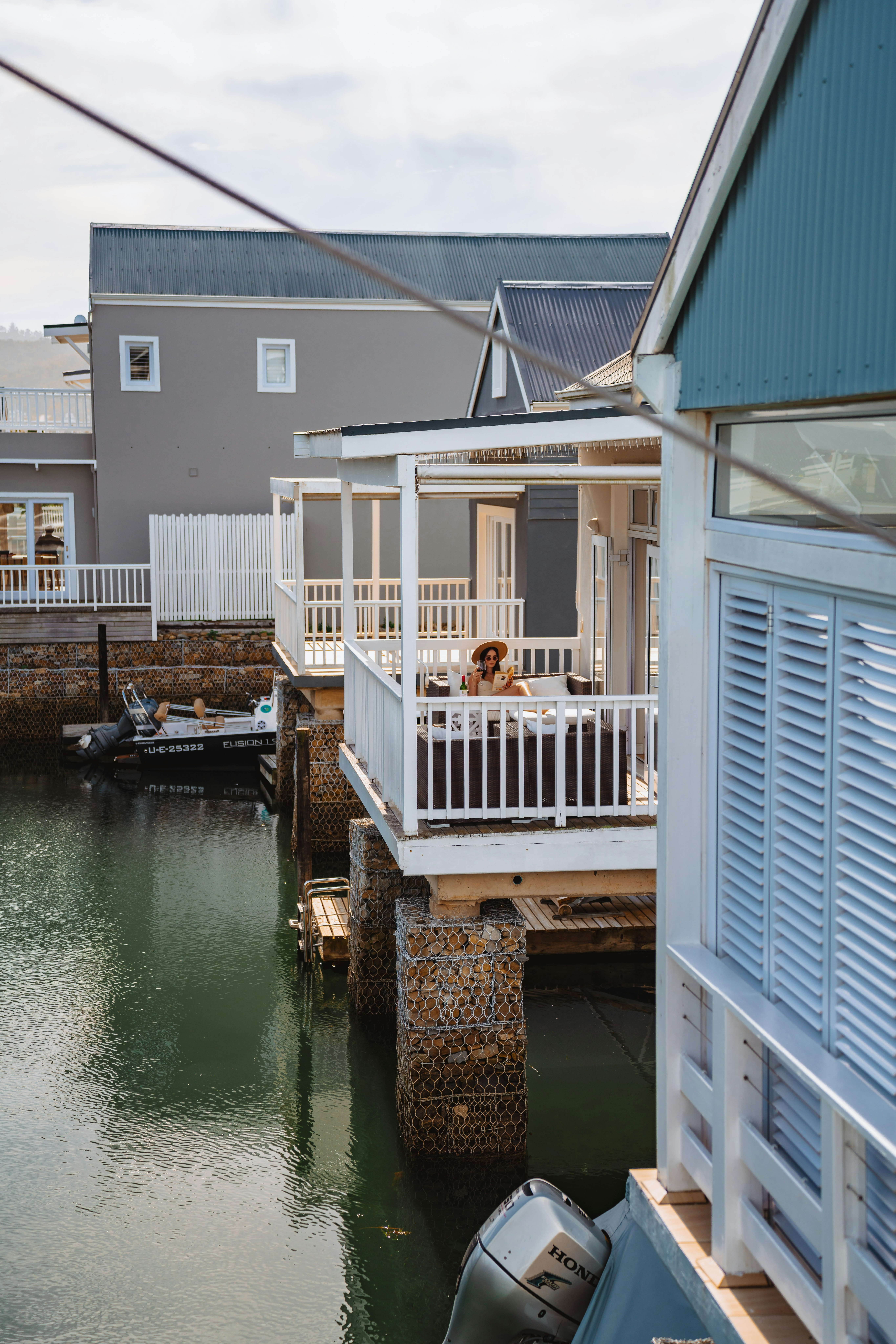 Die sitarea lei direk na 'n dek aan die waterkant en die huis se eie privaat jetty waar motorbote tot 7 m lank vasgemeer kan word. Die huis is ten volle toegerus om gerieflike verblyf te verseker. Die kombuis is met 'n mikrogolfoond, konveksie-oond en glasstoofblad, uitsuigwaaier, yskas-vrieskas, breekware, eetgerei, glase, potte, panne, 'n ketel, broodrooster, strykyster en strykplank toegerus. Daar is ook 'n koffiemasjien, maar gaste moet hul eie koffiekapsules saambring. Die opwaskamer het 'n dubbelwasbak, skottelgoedwasser, wasmasjien en tuimeldroër.