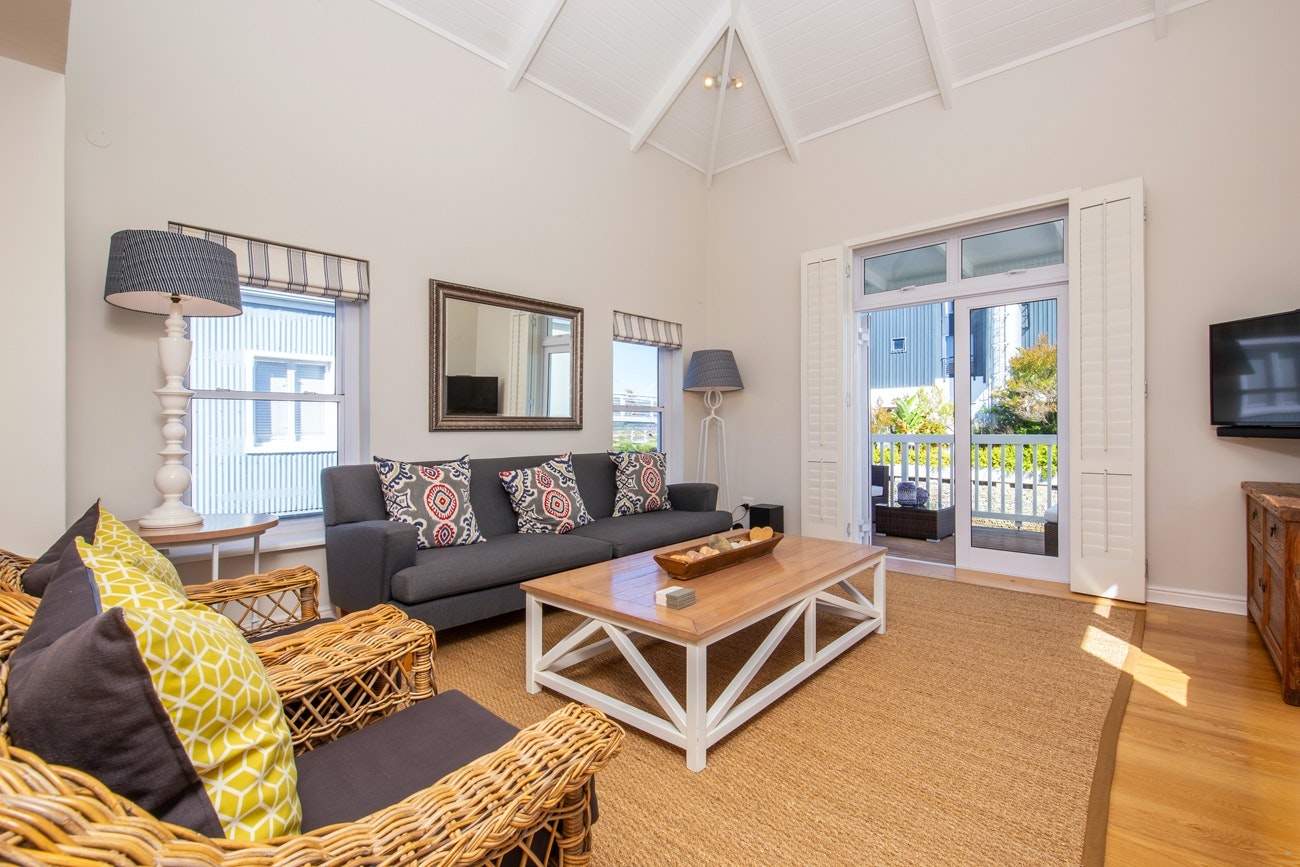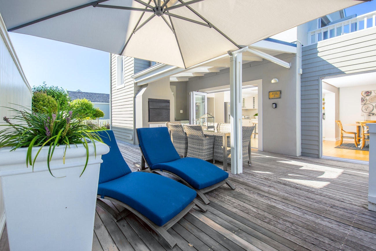 Die eetarea het 'n etenstafel met 6 stoele, en glasdeure wat na 'n stoep met ingeboude braaigeriewe lei vir al fresco-etes. Die sitarea se rusbanke en stoele bied gemaklike sitplek en daar is ook 'n TV met DStv, Showmax en Netflix. Daar is ook 'n klankstelsel en 'n uitstekende uitsig oor die strandmeer vanuit die sitarea of die dek wat daarvandaan lei. Die motorhuis met sy elektroniese deur, het plek vir 1 voertuig.