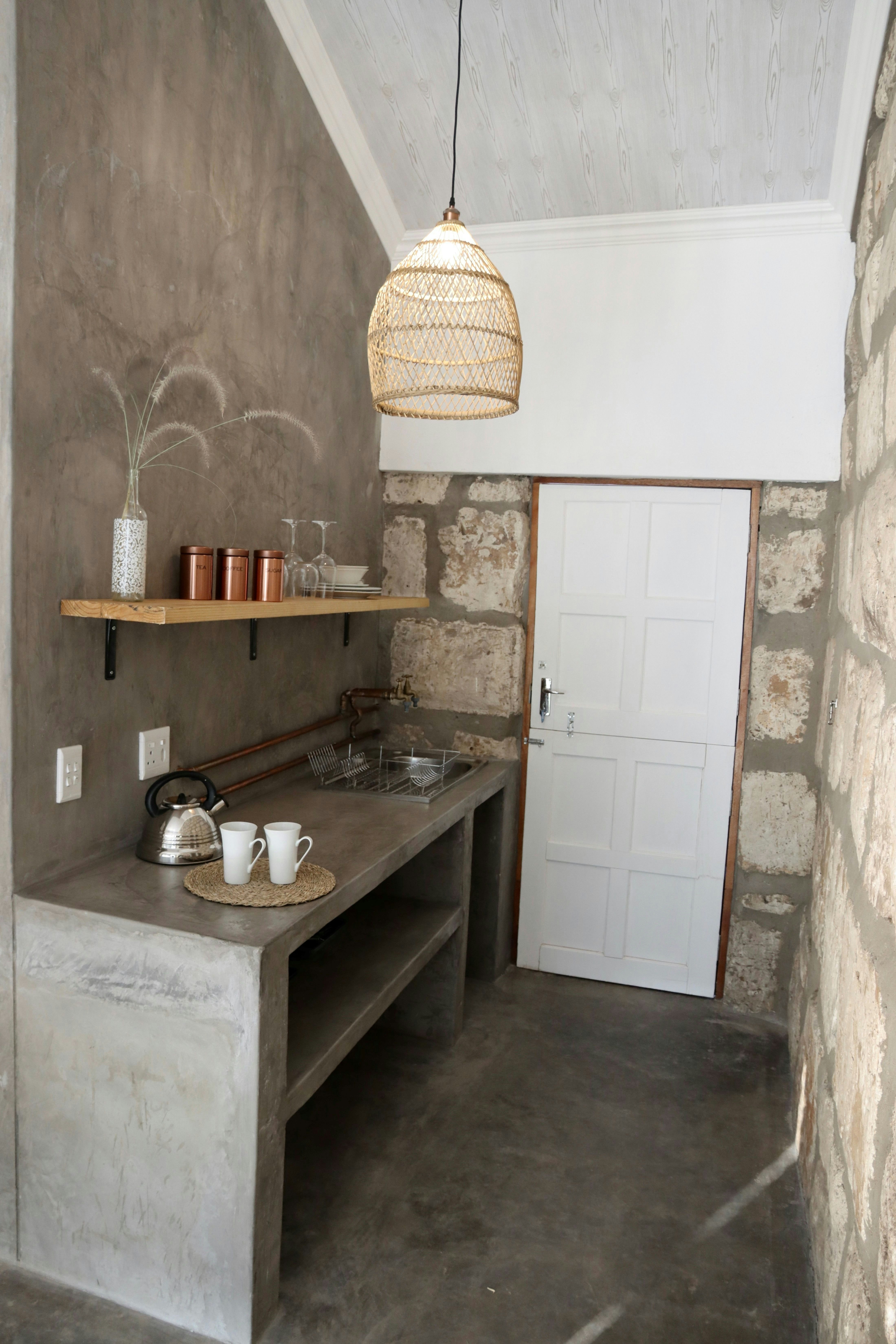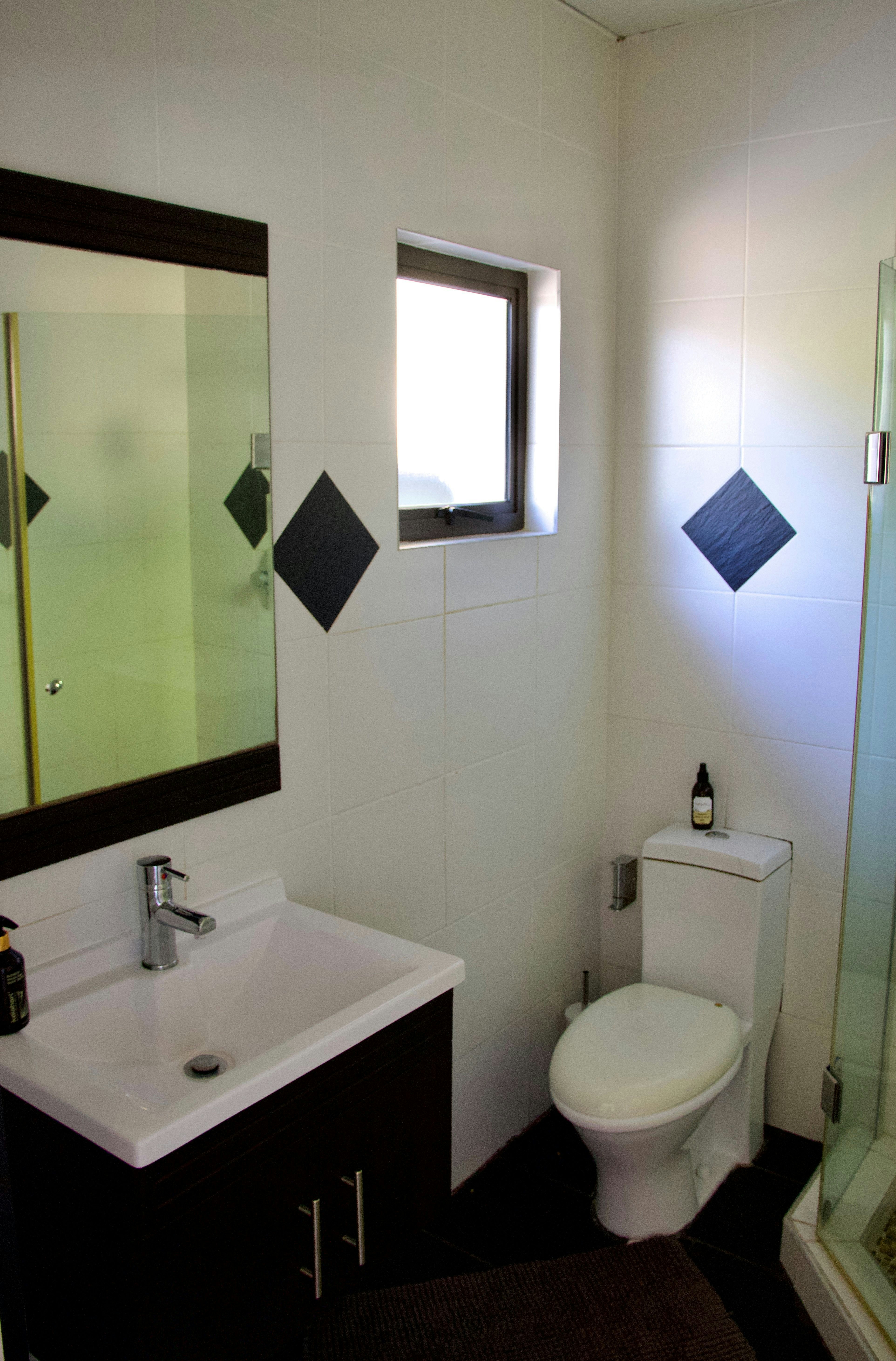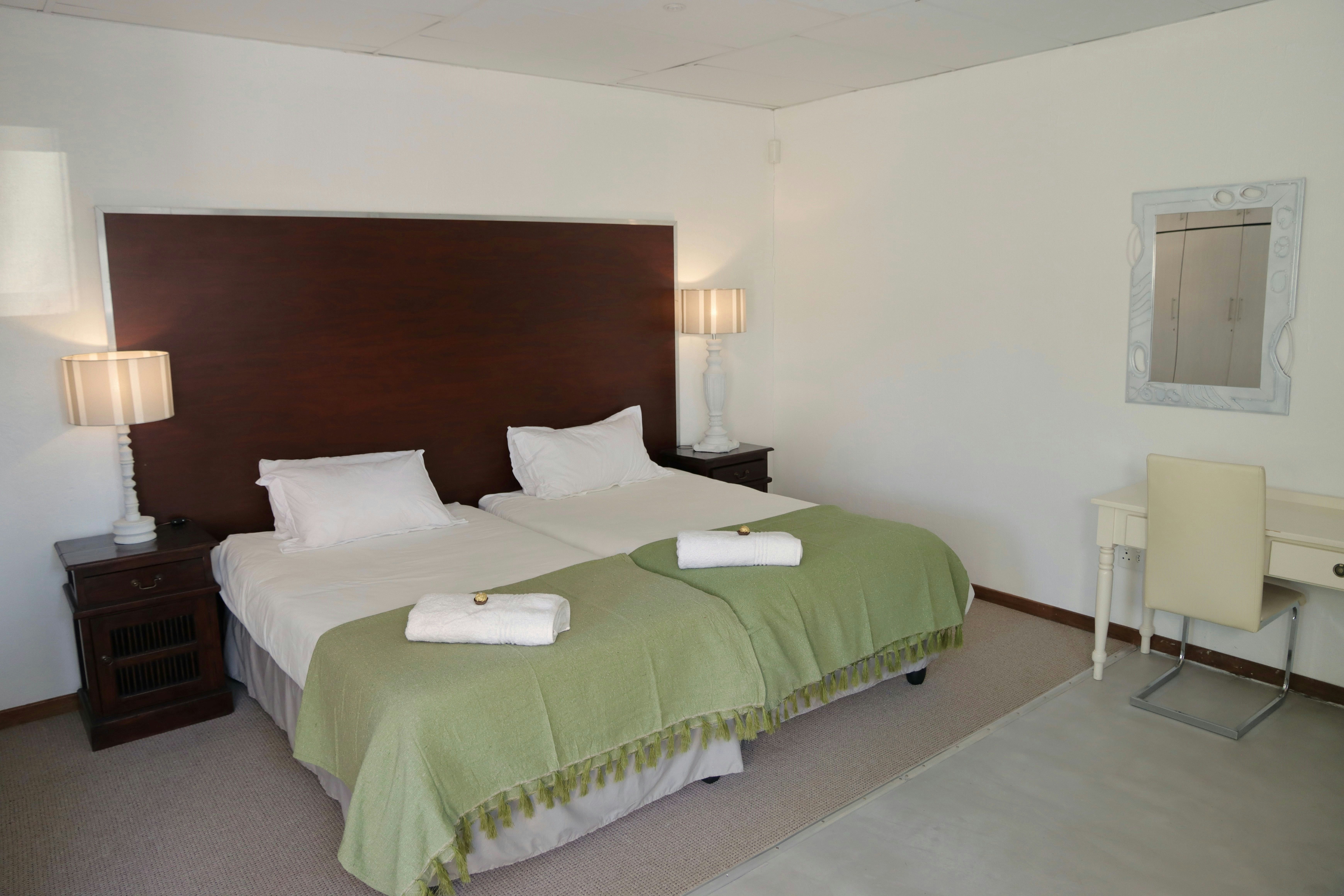 Accommodation is offered in 3 self-catering rooms. Each room can accommodate 2 adults and 1 child and is comfortably furnished with 2 single beds that can be converted into a king-size bed upon request, as well as a child-only mattress. Each room features an en-suite bathroom fitted with a shower. Linen and bath towels are provided. The rooms also include a kitchenette equipped with a microwave, single-plate induction hob, cutlery, crockery, tea- and coffee-making facilities, and a bar fridge. Guests have access to a communal garden and braai area.