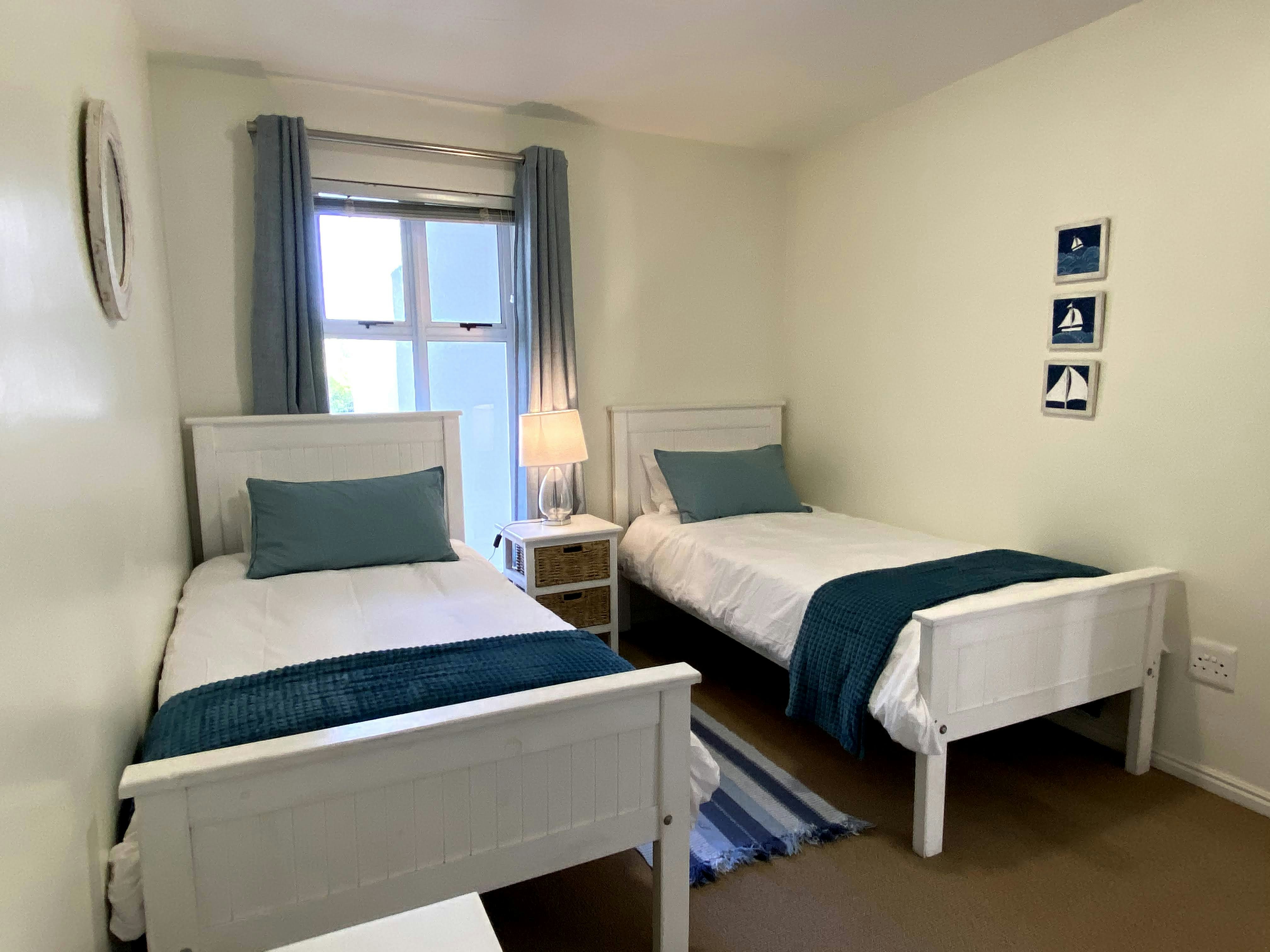 The duplex apartment comprises 2 bedrooms, 2 bathrooms, a kitchen, a dining area, and a lounge that opens onto a private patio. Located on the first floor, the main is furnished with a double bed, and has a shower and a bath en suite. The second bedroom contains 2 single beds, and makes use of a bathroom with a shower. For convenience, linen and bath towels are provided, and guests please need to bring their own swimming towels.