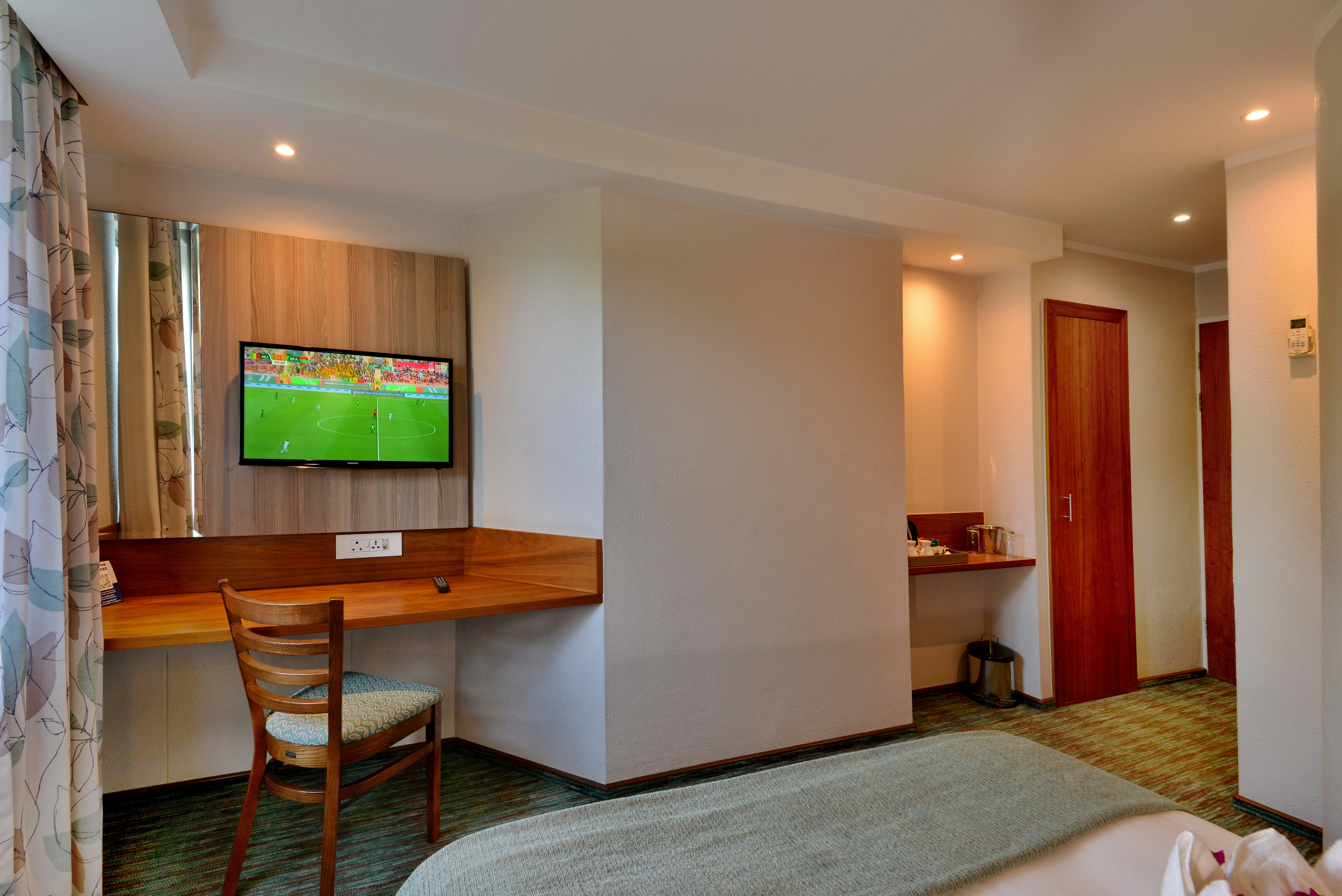 Die hotel met 118 kamers bied 'n aantal kamers met lugversorging, dubbel- of enkelbeddens en 'n en suite-badkamer met 'n stort. Aangrensende gesinskamers is ook beskikbaar. Geriewe in die kamer sluit in 'n TV met geselekteerde DStv-kanale en radiostasies, tee- en koffiemaakgeriewe en 'n elektroniese kluis. Gratis WiFi word ook voorsien. Geselekteerde kamers is ontwerp vir fisies gestremdes.