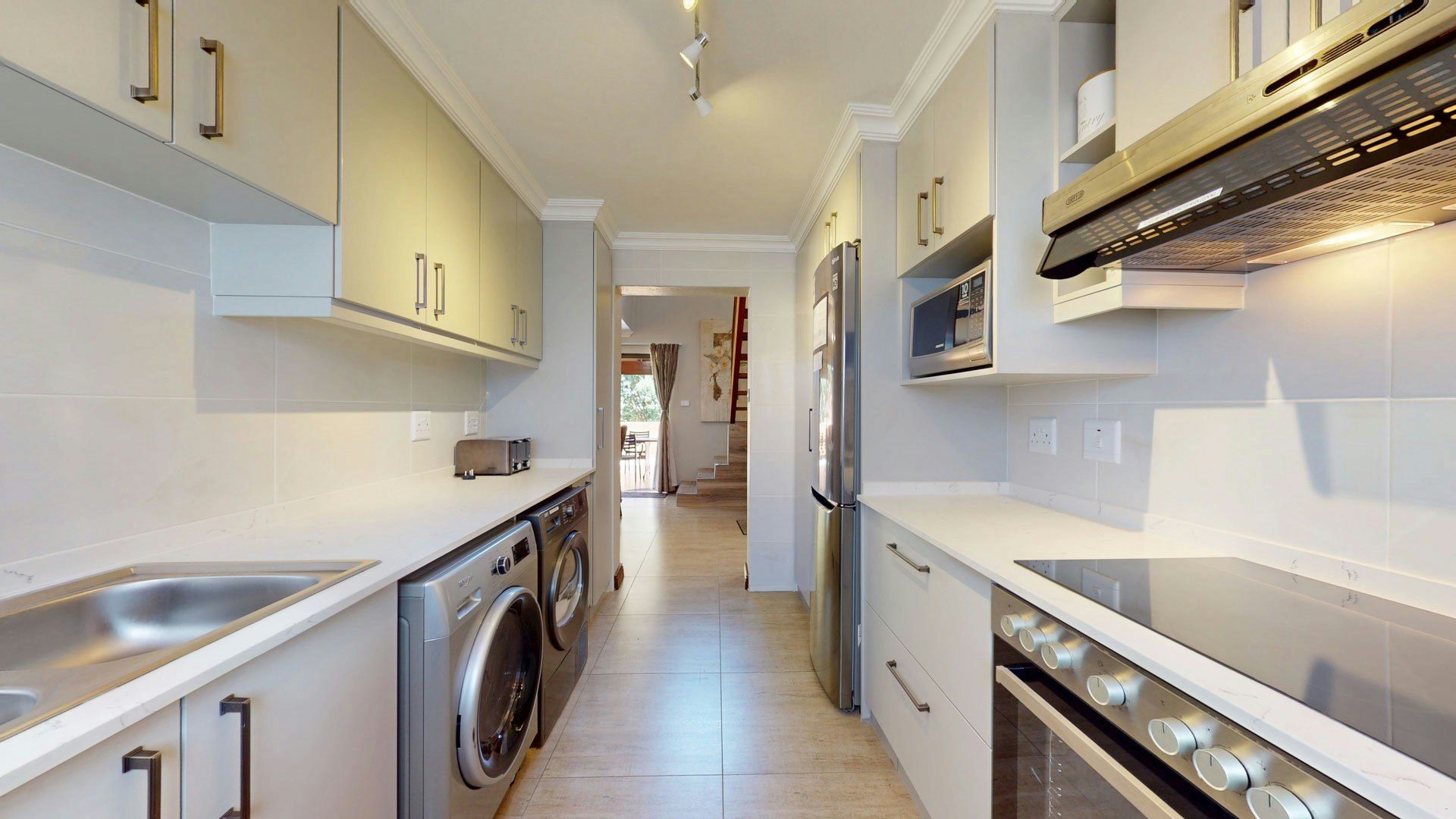 Die kombuis is met 'n yskas-vrieskas, stoof, ood, mikrogolf, skottelgoedwasser, wasmasjien en tuimeldroër toegerus. Daar is 'n etenstafel vir 8 in die eetarea. Die sitarea het lugversorging, gemaklike sitplek en 'n TV met DStv. Dit lei na die privaat stoep met 'n sitarea en ingeboude braaigeriewe. Gratis WiFi, parkeerplek op die perseel en watertenke is beskikbaar.