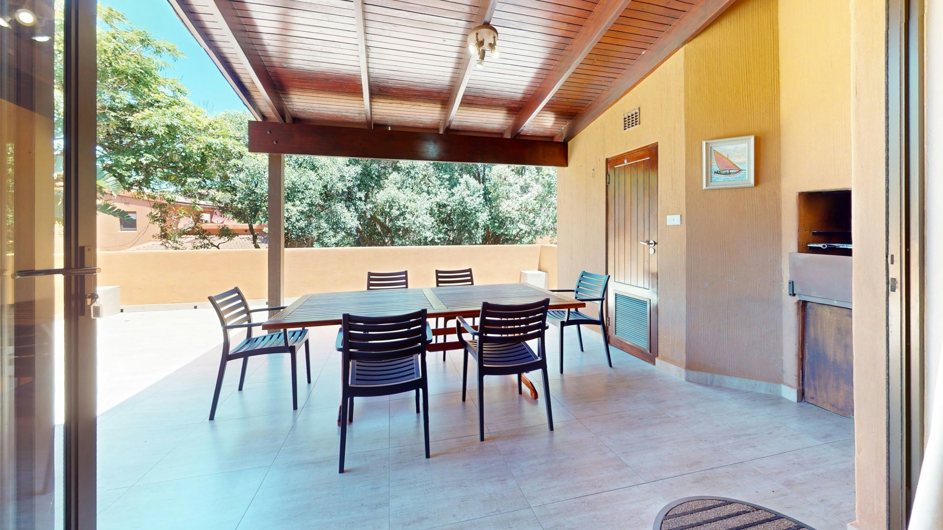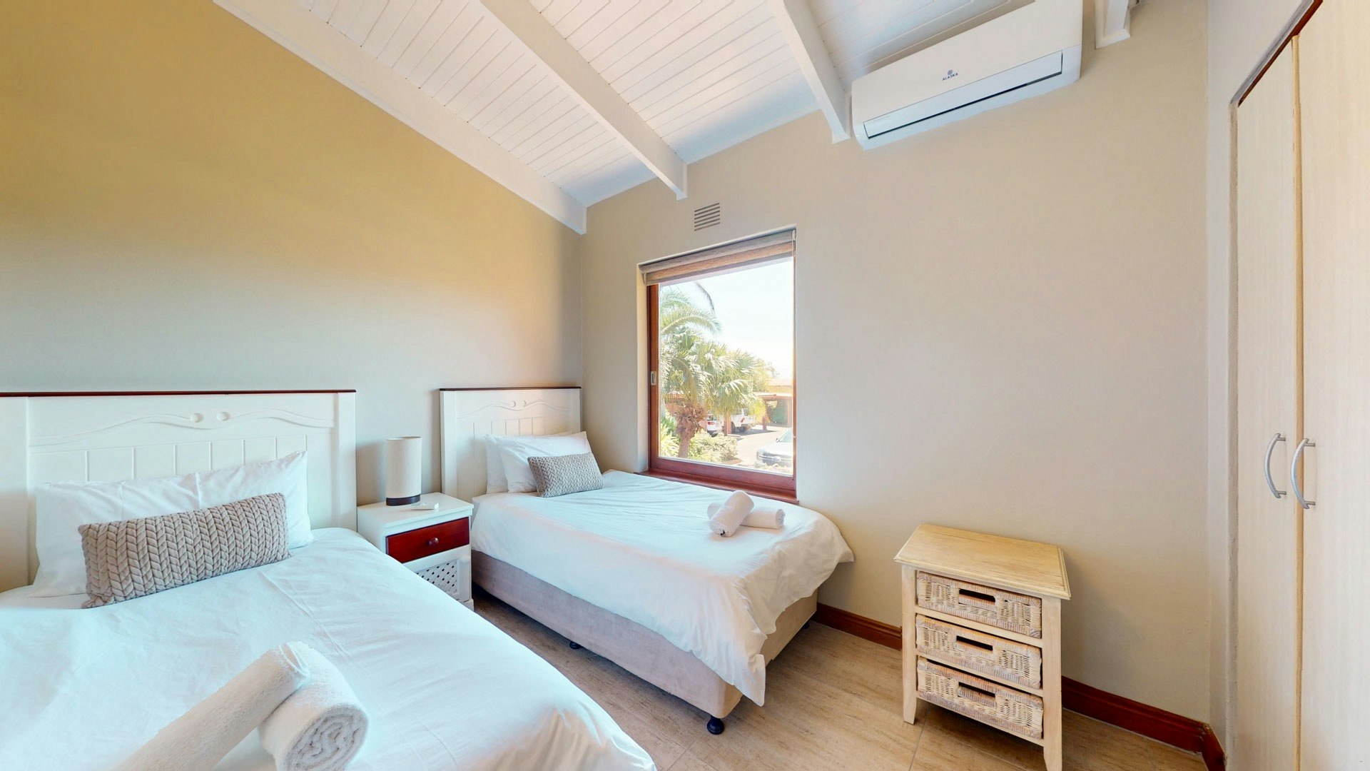 Die dubbelverdiepingvilla bied slaapplek aan 8 gaste en beskik oor 4 slaapkamers met lugversorging. Die hoofslaapkamer het 'n koninggrootte-bed en die tweede slaapkamer het 'n koningingrootte-bed. Beide slaapkamers het 'n en suite-badkamer met 'n bad. Die derde en vierde slaapkamer het beide 2 enkelbeddens en gaste deel 'n badkamer met 'n stort.