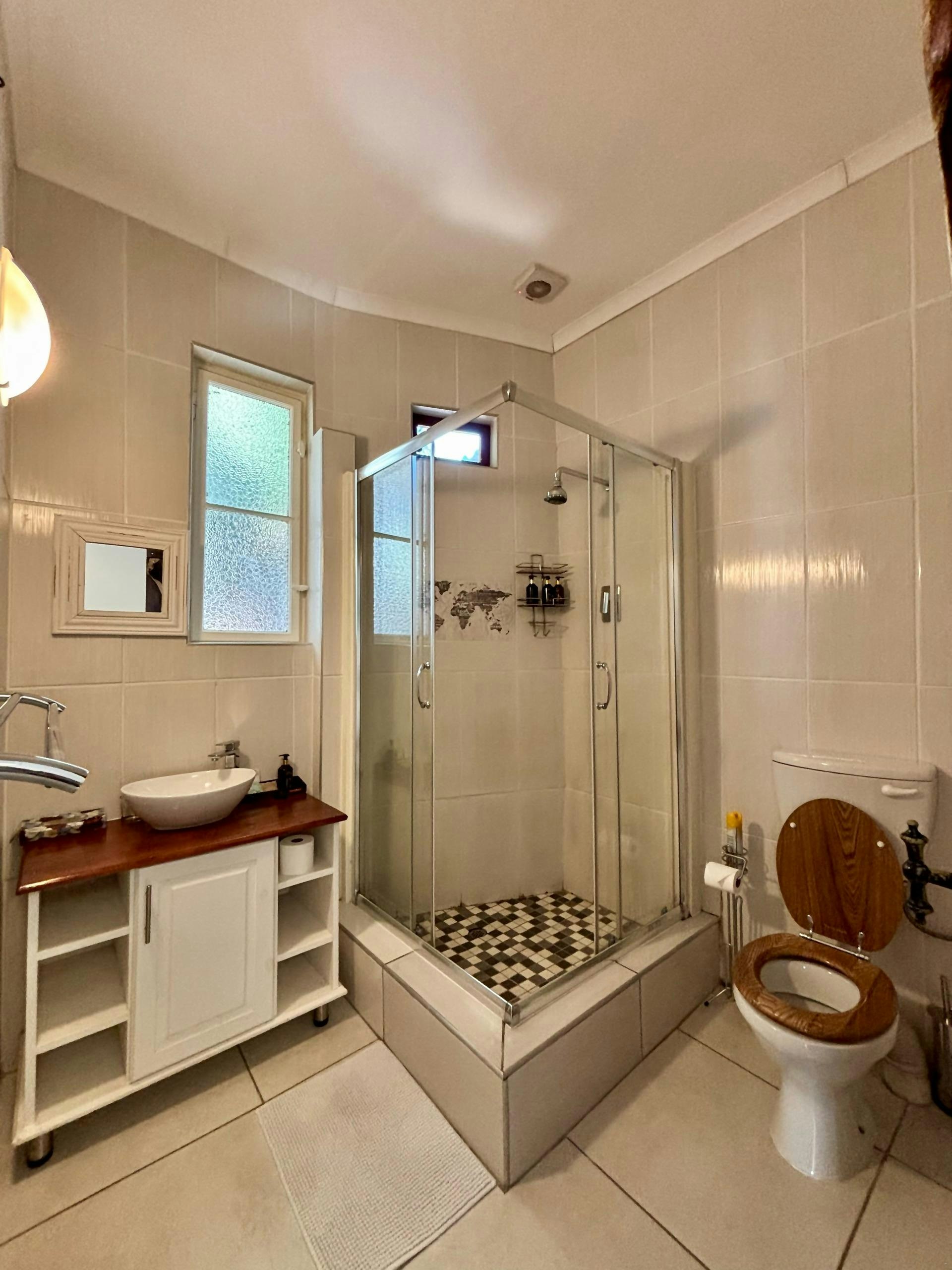 Bykomende geriewe sluit in 'n gedeelde braai-area, WiFi en nog baie meer, wat 'n ontspannende en aangename verblyf verseker. Parkering is op straat beskikbaar.