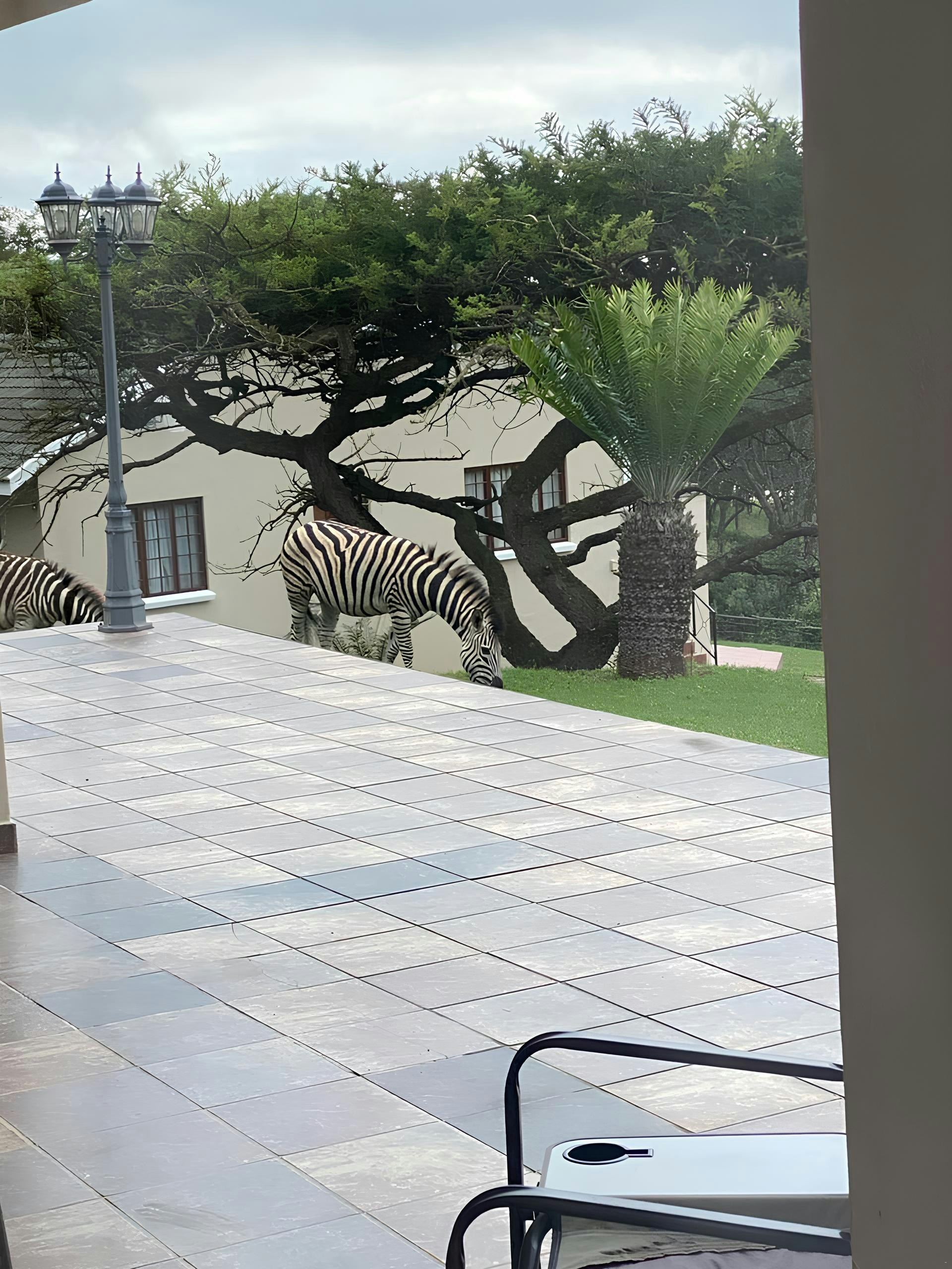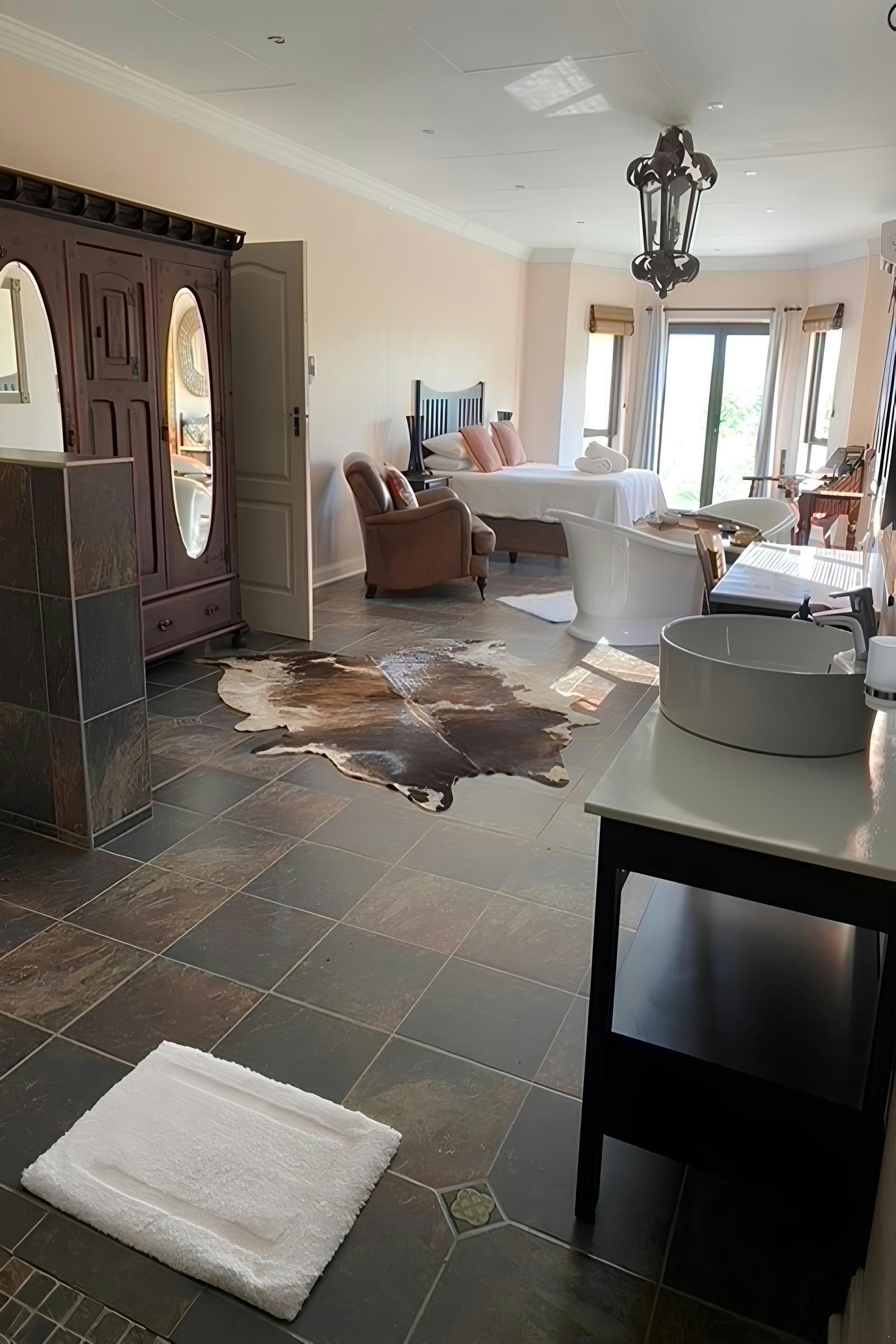 Buite is daar 'n lieflike voorstoep met 'n buite-eettafel, 'n ingeboude braai en 'n KolKol-warmbad, wat die perfekte plek is vir 'n ontspanne skemerkelkie in die aand. Boonop het hierdie eiendom 'n boma waar gaste saans om die vuur kan saamdrom. Gaste kan ook in die gemeenskaplike swembad afkoel terwyl hulle 'n braai geniet. Hierdie reservaat bied pragtige piekniekplekke en lieflike wandelpaaie. Hierdie reservaat laat gaste toe om 'n verskeidenheid wildsbokke, kameelperde, sebras, blouwildebeeste, elande, vlakvarke, en soveel meer te ervaar.