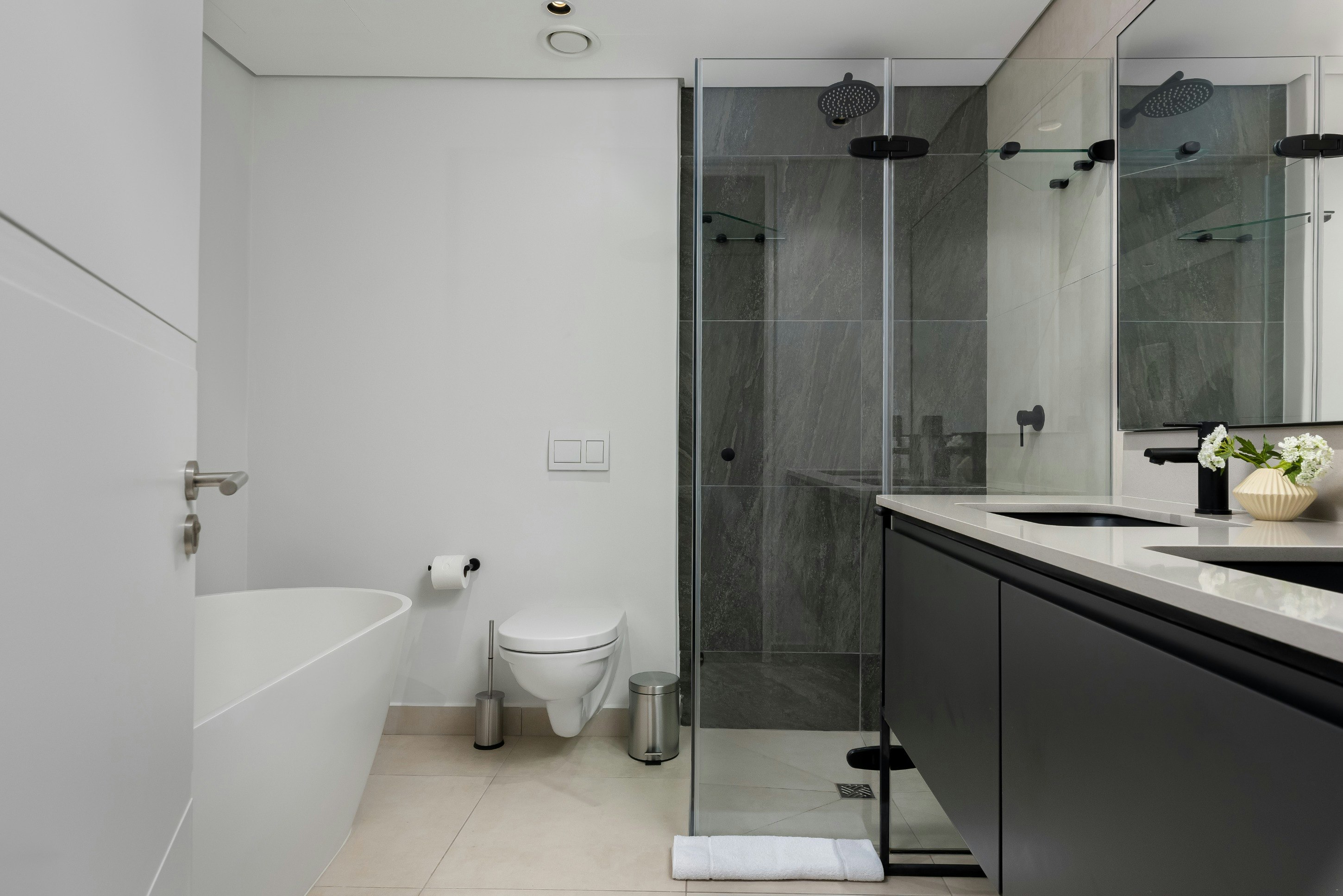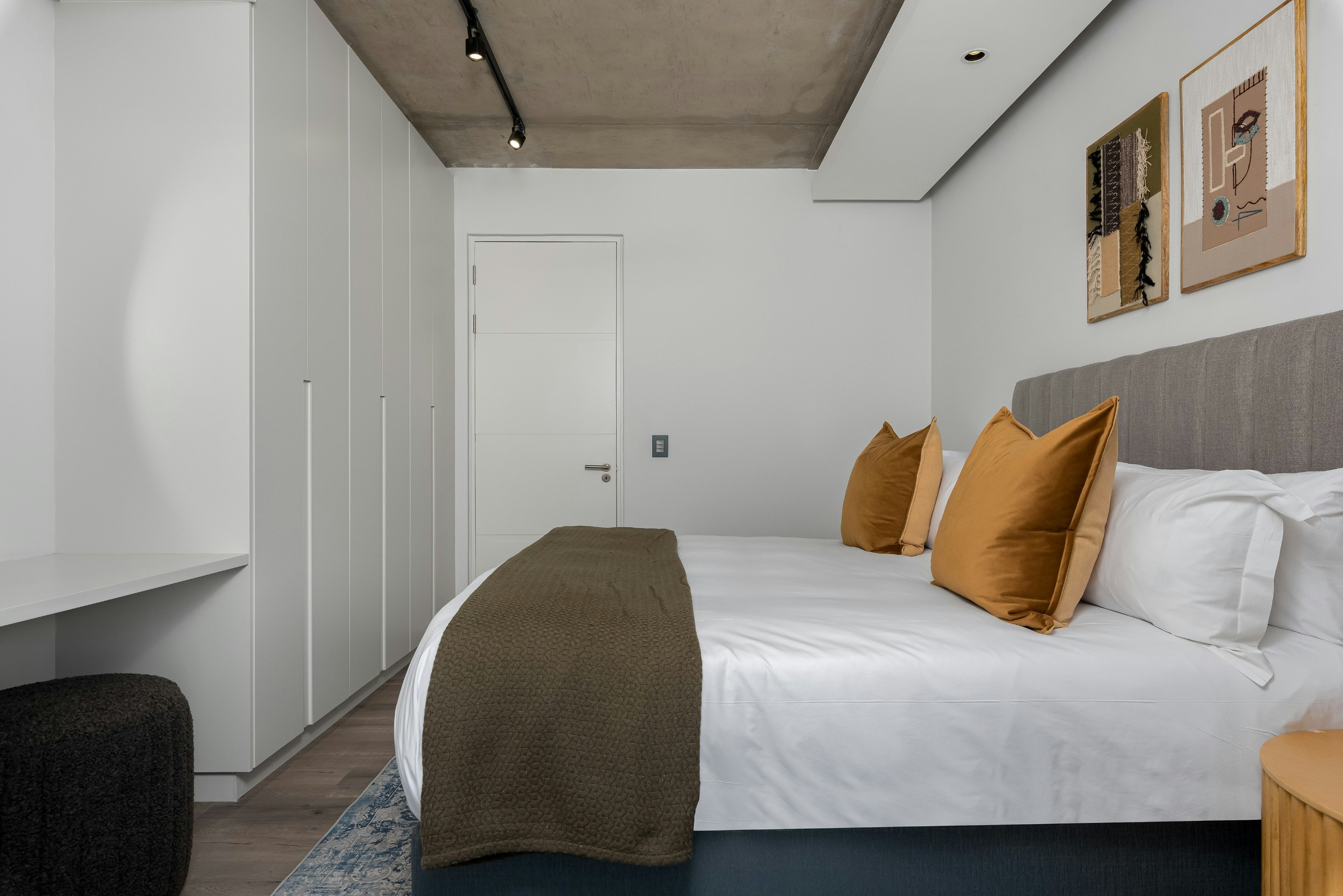 Die woonstel bestaan uit 2 slaapkamers en 2 badkamers, met slaapplek vir tot 4 gaste. Die eerste slaapkamer is gemeubileer met 'n koninggrootte bed en het 'n en suite-badkamer met beide 'n bad en 'n stort. Die tweede slaapkamer het ook 'n koninggrootte bed en word bedien deur 'n badkamer met 'n stort.