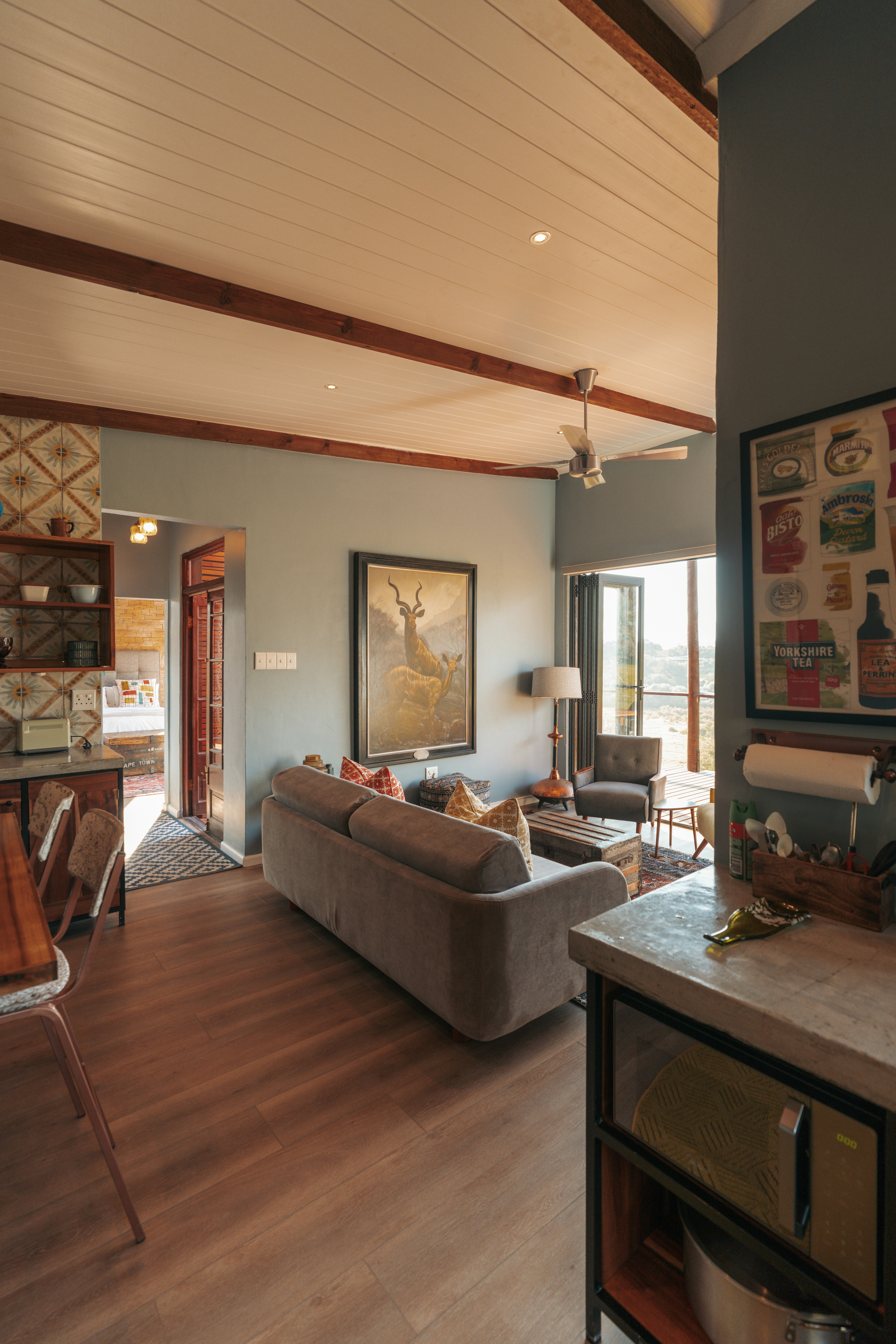 Die houtchalet met 1 slaapkamer is op stelte gebou en bied slaapplek vir 'n gesin van tot 4 gaste (2 volwassenes en 2 kinders). Die slaapkamer is gemeubileer met 'n koningingrootte bed en het 'n oopplan-en suite-badkamer met 'n stort en toilet. Die sitkamer het 'n uittrekbare slaapbank wat slaapplek bied vir 2 gaste.