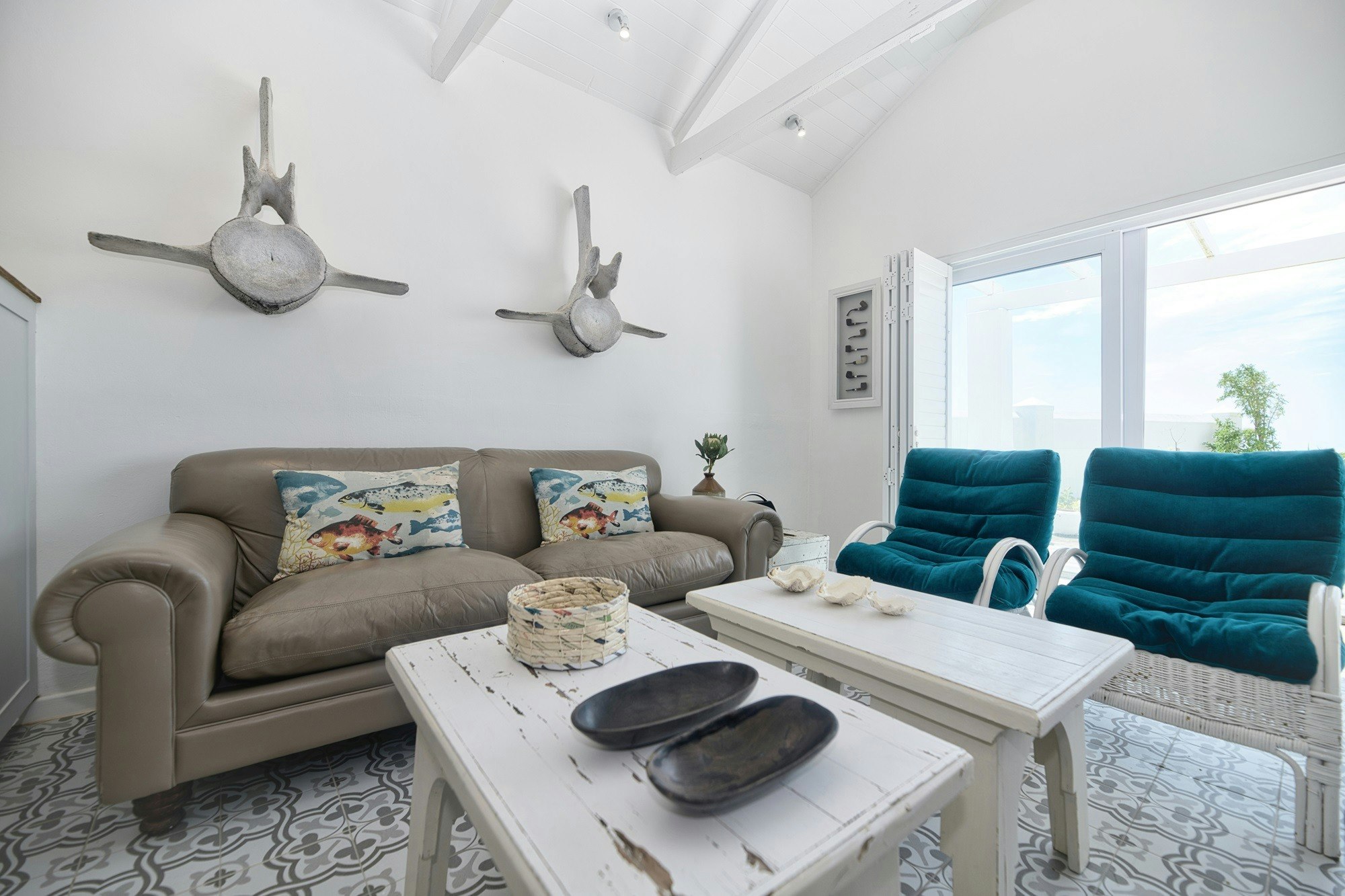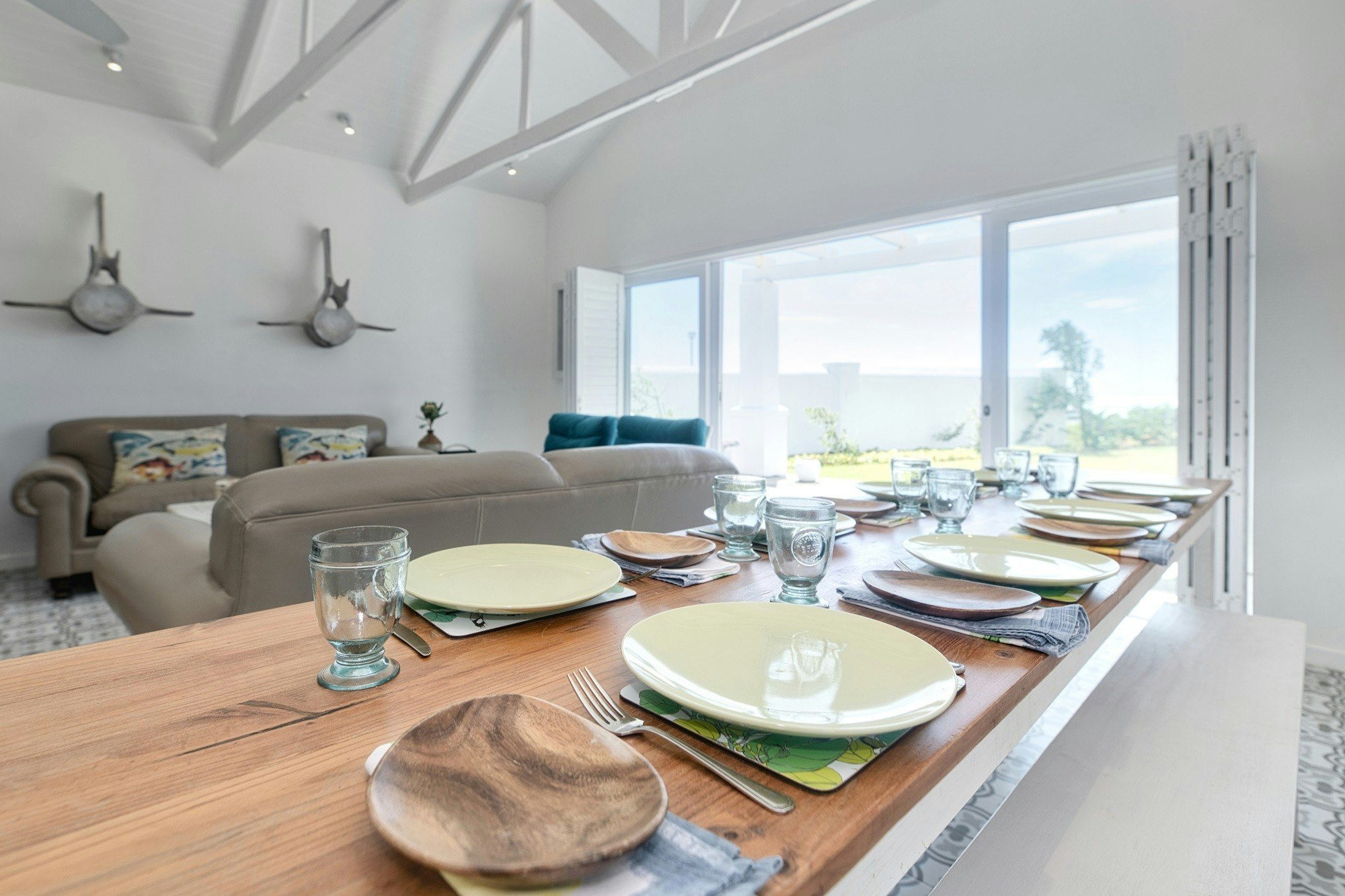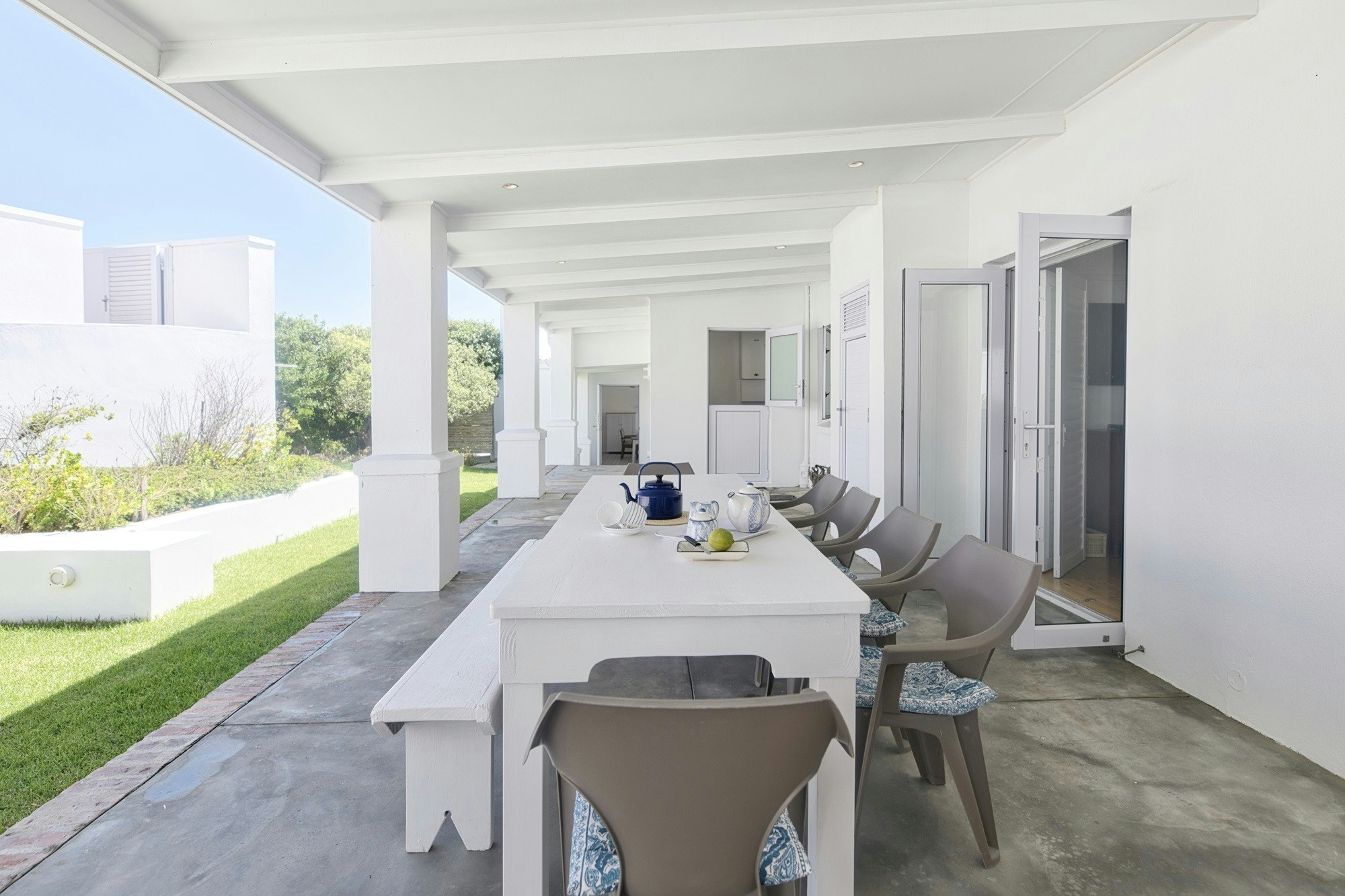 Die leefareas maak oop na die stoep wat oor die see uitkyk. Gaste kan gebruik maak van die binnenshuise braaigeriewe of die buitebraai-area in die lapa. Ongelukkig kan kinders onder die ouderdom van 12 nie geakkommodeer word nie, en troeteldiere word nie toegelaat nie.