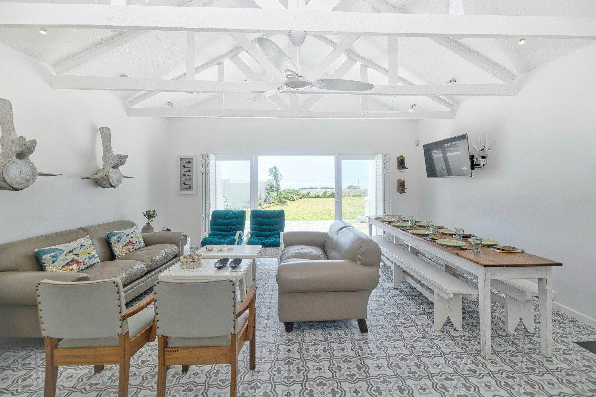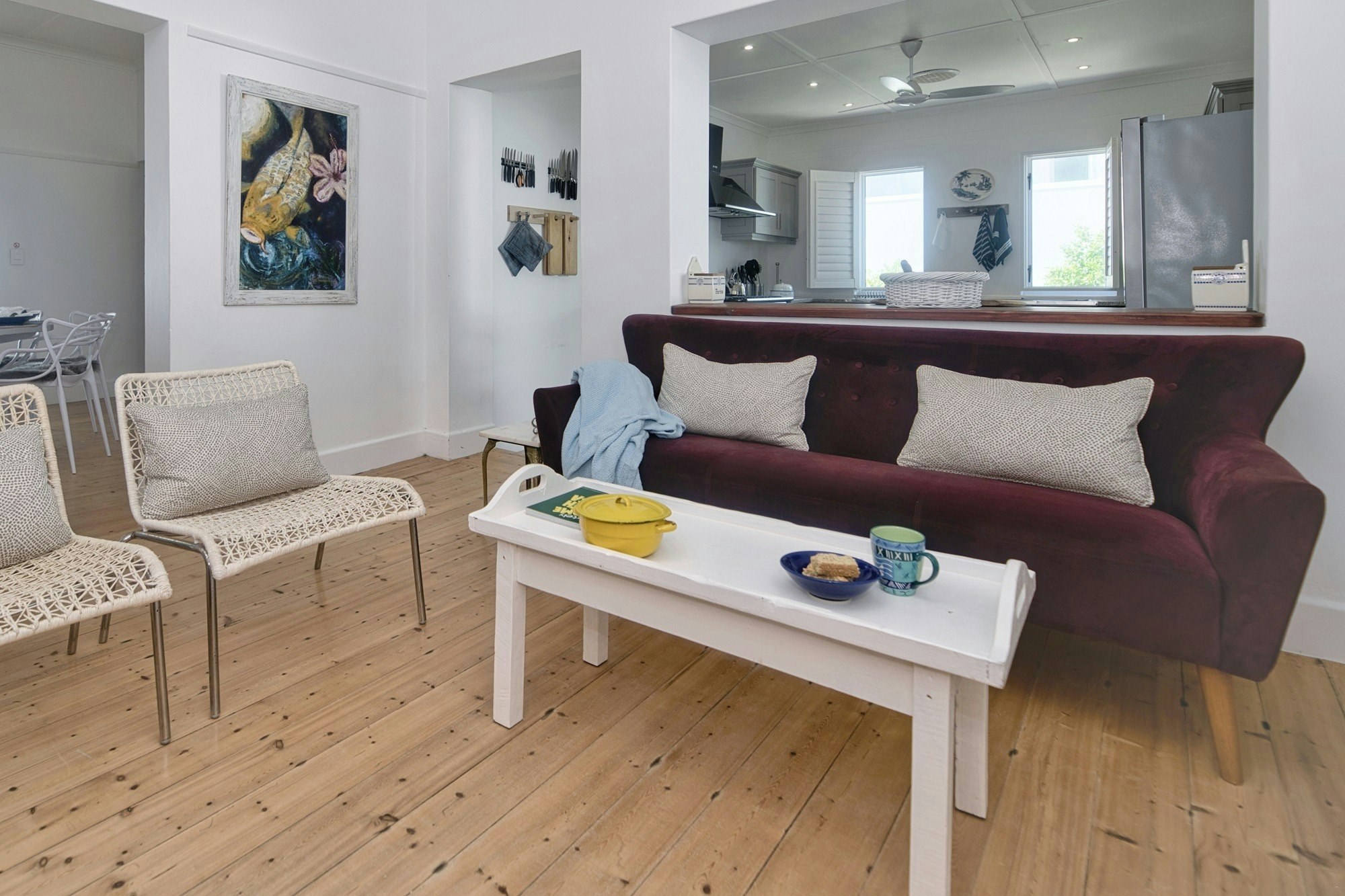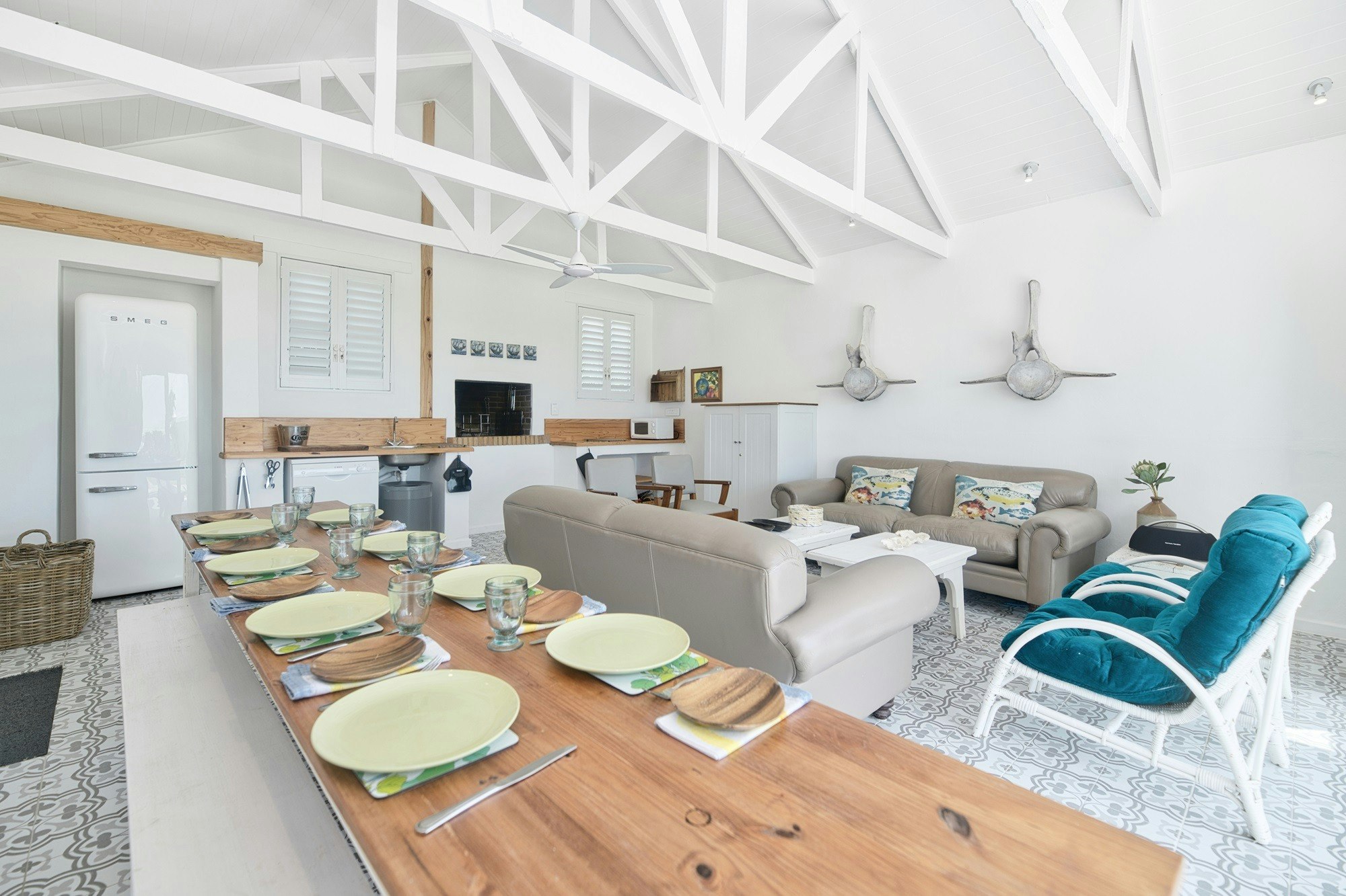 Die leefareas maak oop na die stoep wat oor die see uitkyk. Gaste kan gebruik maak van die binnenshuise braaigeriewe of die buitebraai-area in die lapa. Ongelukkig kan kinders onder die ouderdom van 12 nie geakkommodeer word nie, en troeteldiere word nie toegelaat nie.