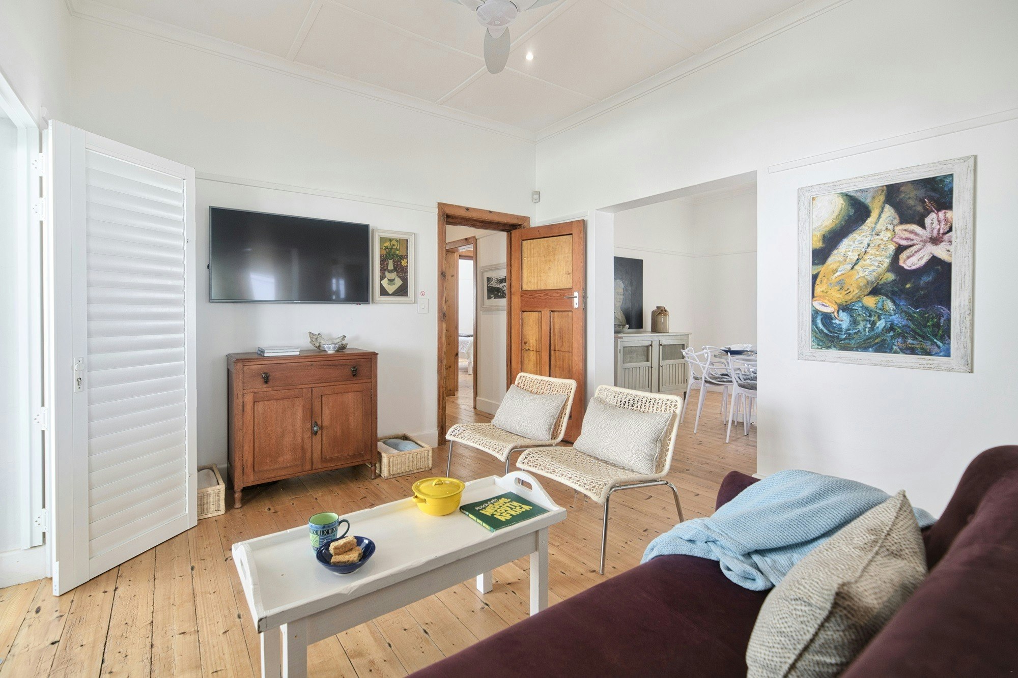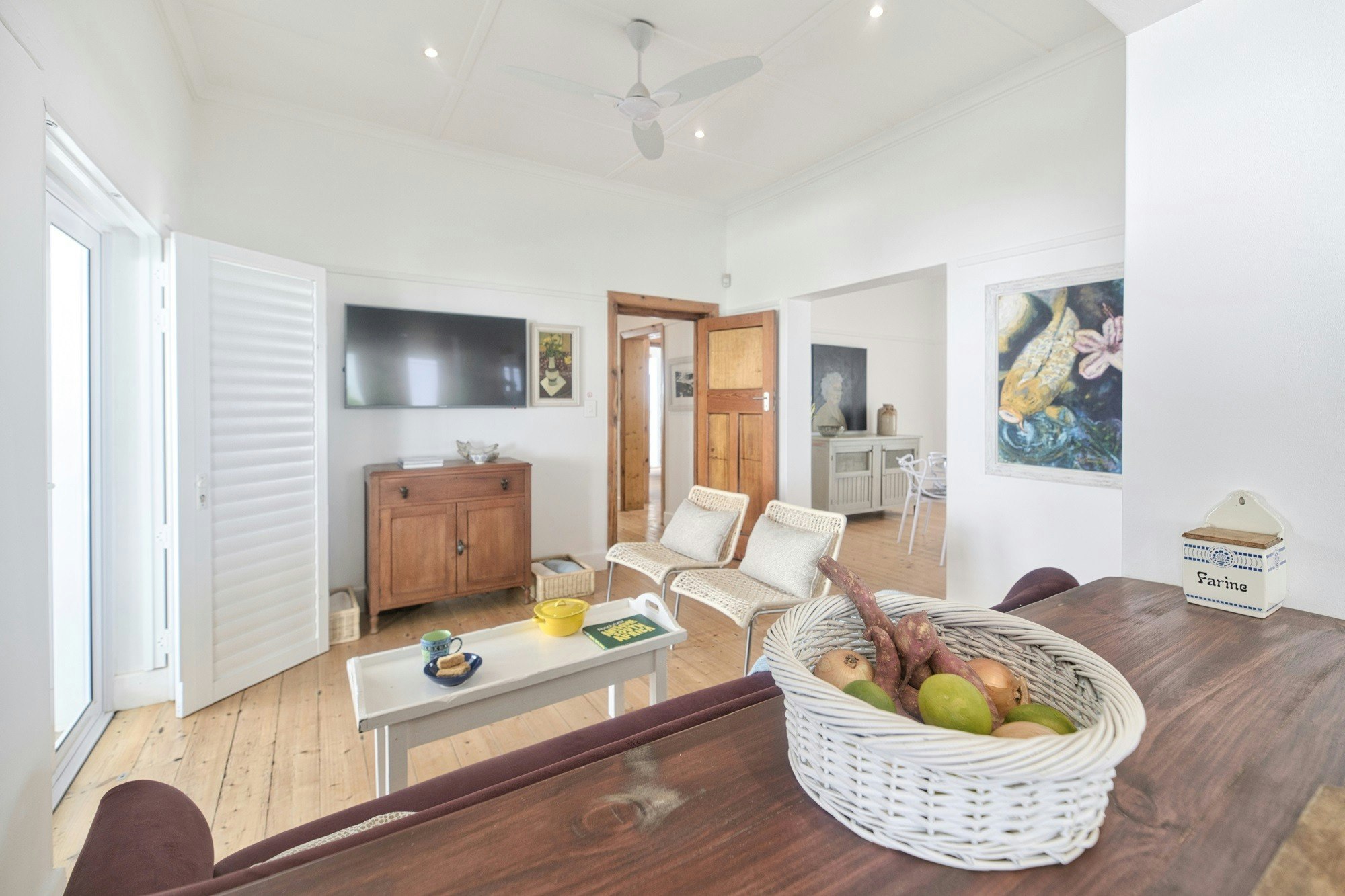 Een van die sitkamers is toegerus met 'n TV met DStv, terwyl die tweede sitkamer 'n kaggel het. WiFi is beskikbaar. Ongelukkig word geen troeteldiere toegelaat nie.