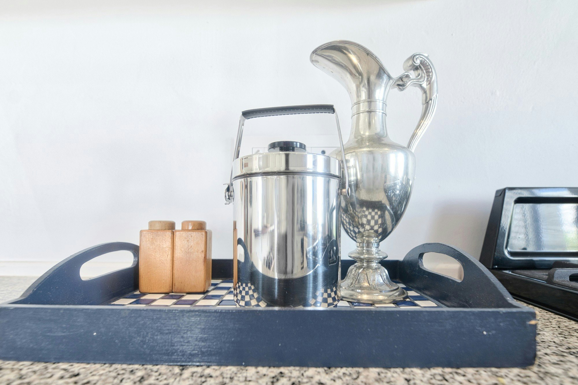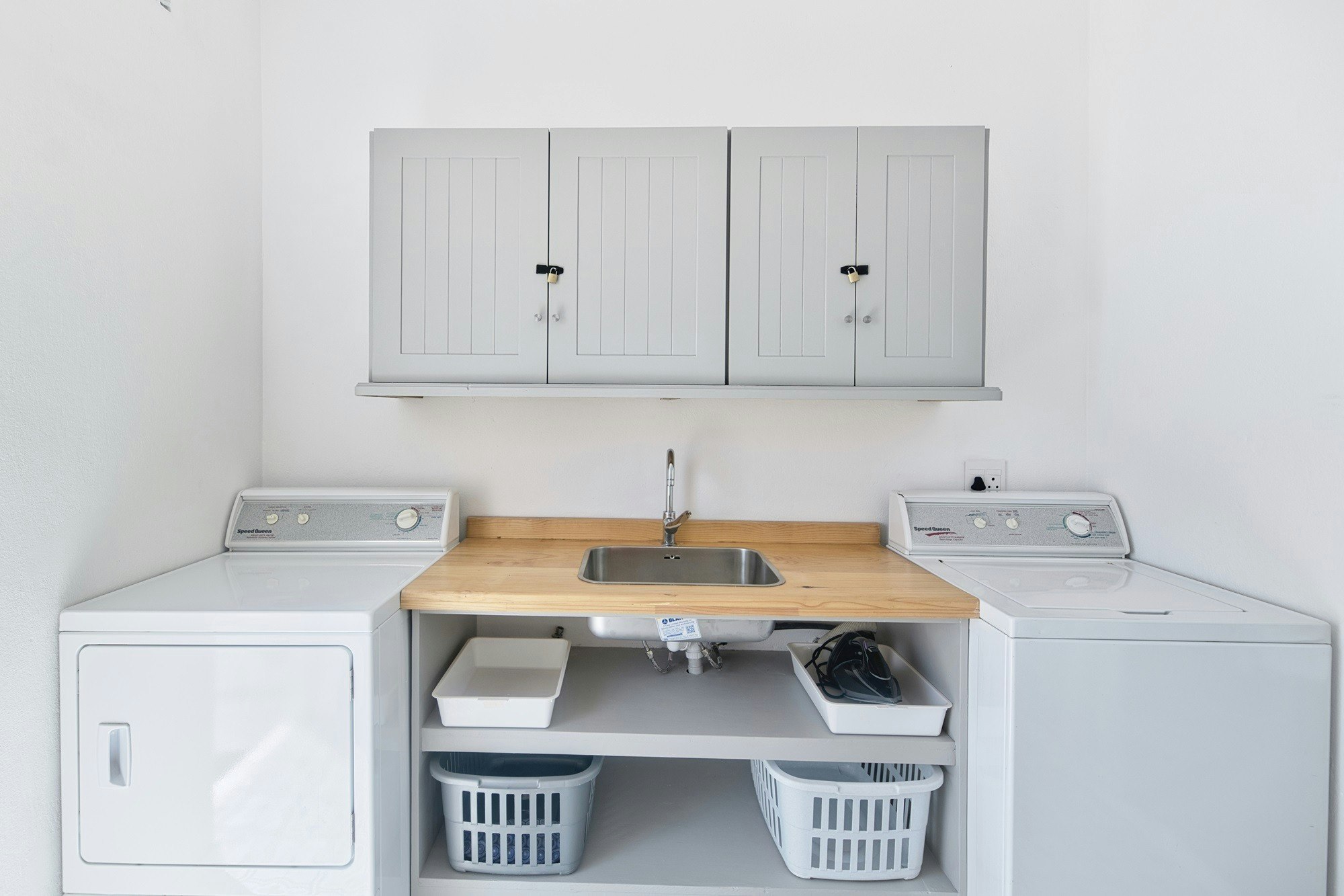 Die oopplan-kombuis is toegerus met 'n stoof en oond, 'n mikrogolfoond, 'n yskas, sowel as tee- en koffiemaakgeriewe, en maaltye kan by die etenstafel geniet word.