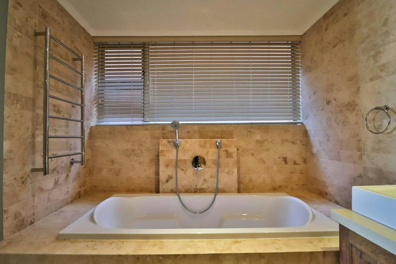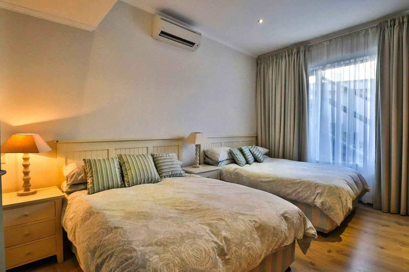 Die huis beskik oor 4 slaapkamers en 4,5 badkamers en bied slaapplek aan 11 gaste. Die hoofslaapkamer het 'n koningingrootte-bed en 'n en suite-badkamer met 'n bad en 'n stort. Die tweede slaapkamer het ook 'n koningingrootte-bed en 'n en suite-badkamer met 'n stort. Die derde slaapkamer het 3 enkelbeddens en 'n en suite-badkamer met 'n stort. Die laaste slaapkamer het 2 dubbelbeddens en 'n en suite-badkamer met 'n stort. Die gastebadkamer het slegs 'n toilet.