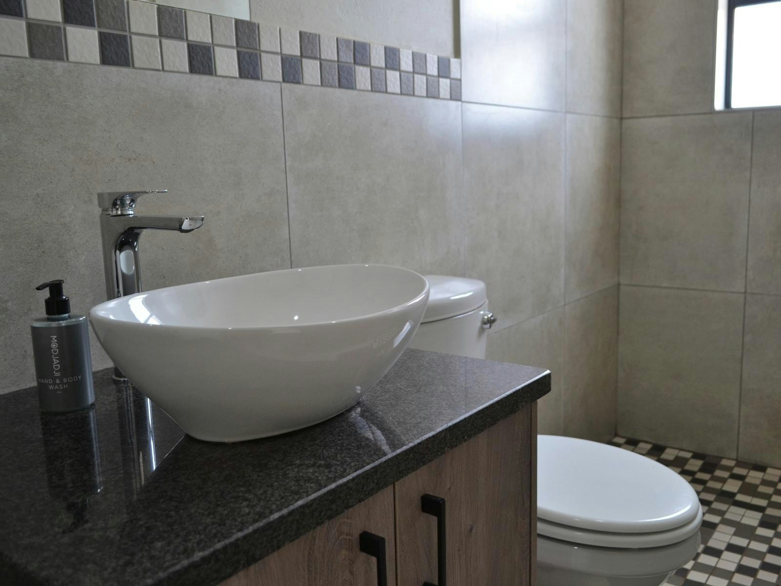The Standard King Studio Apartment can accommodate 2 guests and comprises 1 bedroom and 1 bathroom. The bedroom is furnished with a king-size bed and has an en-suite bathroom fitted with a shower, washbasin, and toilet. The living area features an open-plan design with a fully equipped kitchenette, including a stove, air fryer, kettle, microwave, fridge-freezer, cutlery, and crockery. The lounge area is furnished with comfortable seating. Outside, guests have access to a private braai area and additional outdoor seating — ideal for enjoying sundowners.