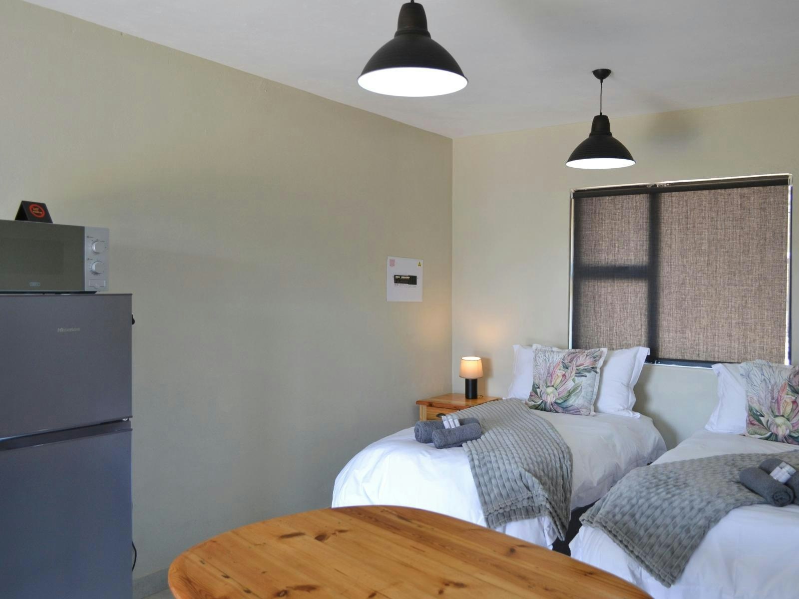 The Classic Twin Studio Apartment can accommodate 2 guests and comprises 1 bedroom and 1 bathroom. The bedroom is furnished with 2 single beds and has an en-suite bathroom fitted with a shower, washbasin, and toilet. The living area features an open-plan design with a fully equipped kitchenette, including a stove, air fryer, kettle, microwave, fridge-freezer, cutlery, and crockery. The lounge area is furnished with comfortable seating. Outside, guests have access to a private braai area and additional outdoor seating — ideal for enjoying sundowners.