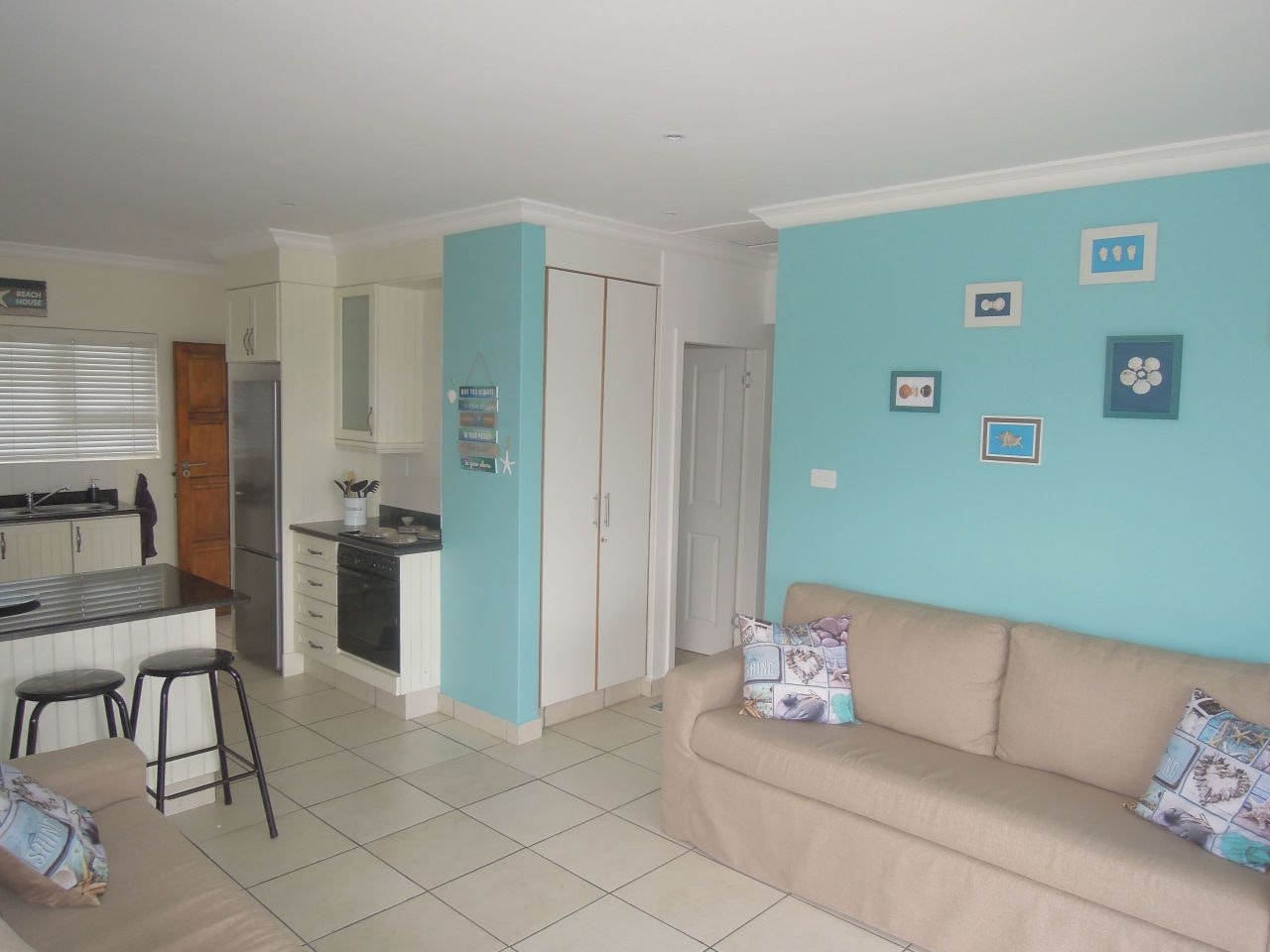 Die woonstel bied slaapplek vir tot 6 gaste en bestaan uit 3 slaapkamers, 2 badkamers en 'n oopplan-kombuis en -leefarea. Die eerste slaapkamer het 'n dubbelbed en 'n en suite-stort met 'n toilet en wasbak. Die tweede en derde slaapkamers het elk 2 enkelbeddens. Hierdie 2 kamers deel 'n badkamer met 'n bad, 'n toilet en 'n wasbak. Badhanddoeke word voorsien, maar gaste moet asseblief hul eie swemhanddoeke saambring.
