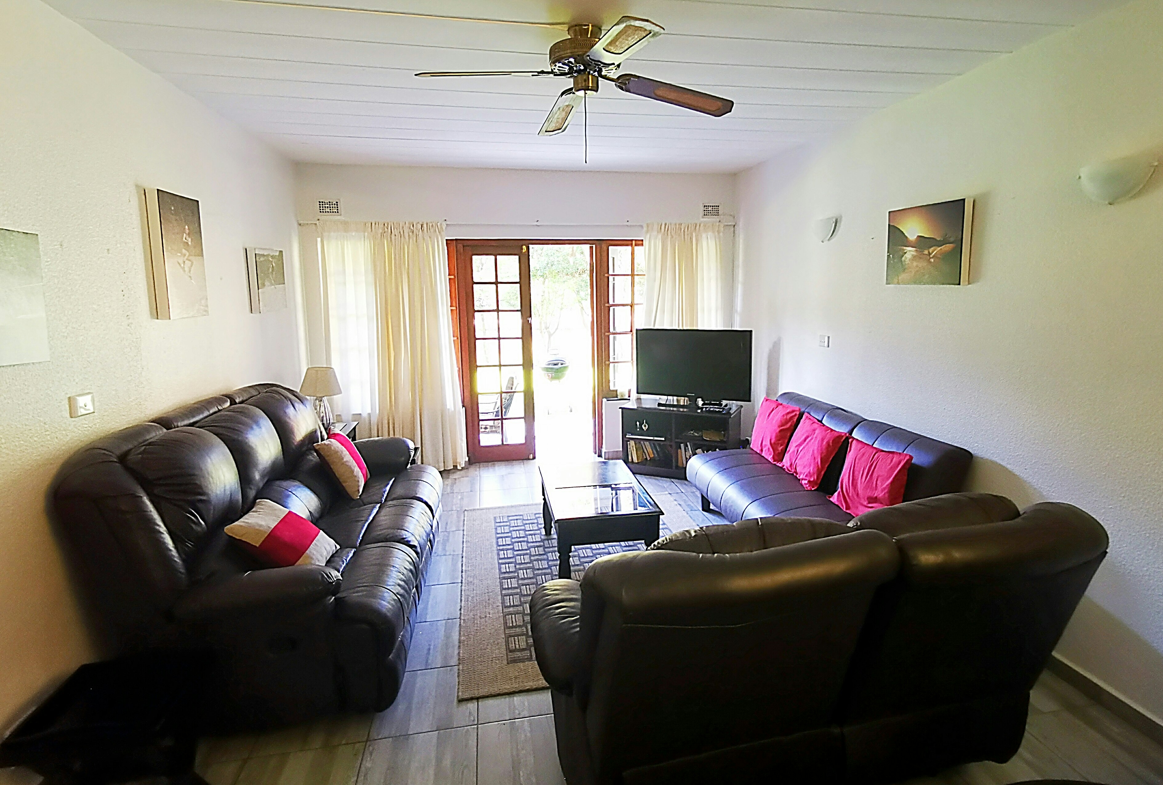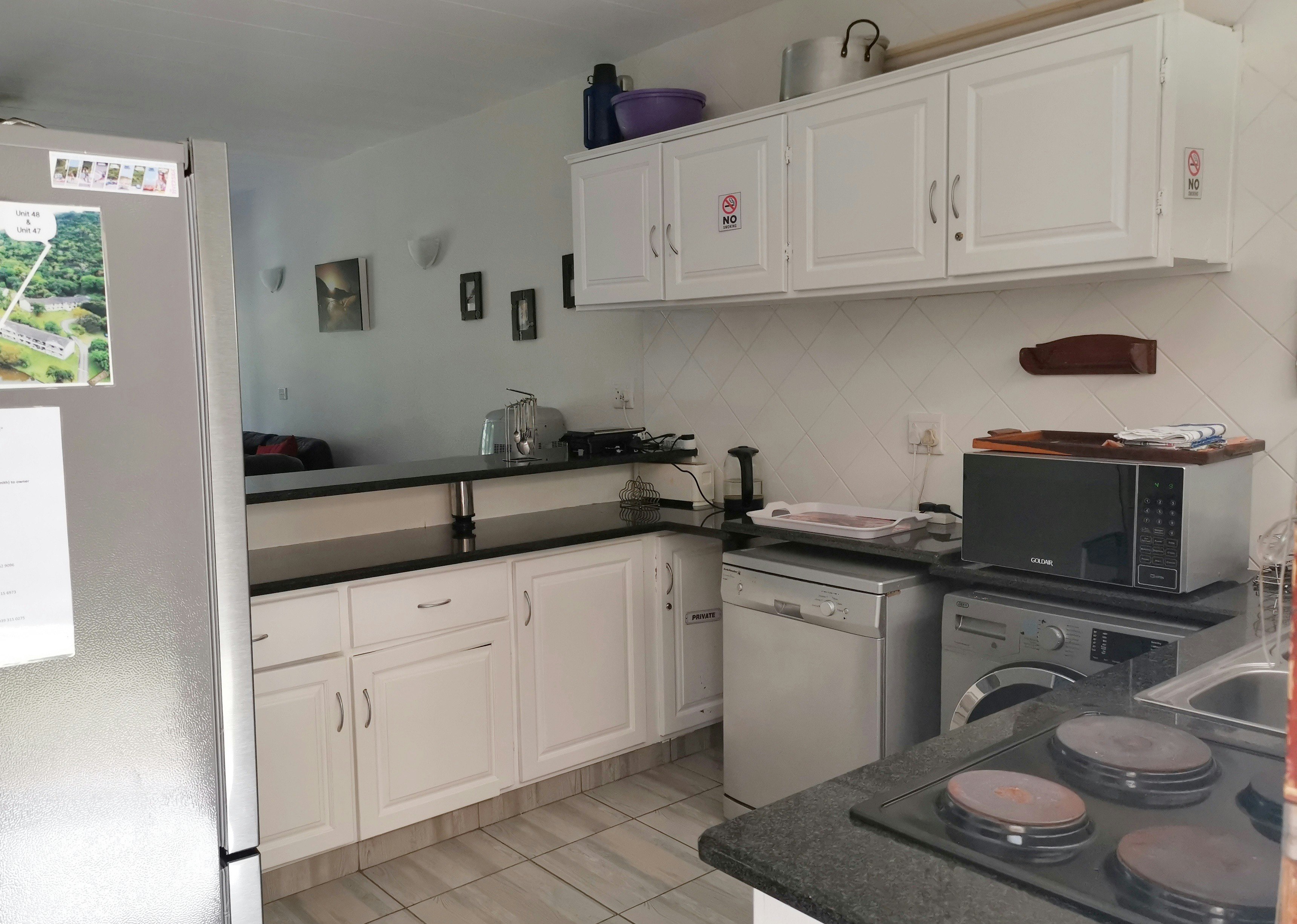Die kombuis is vir selfsorg toegerus met 'n vierplaatstoof, 'n oond, yskas-vrieskas, mikrogolfoond, 'n broodrooster, ketel, strykyster, eetgerei, breekware, potte en panne. Daar is ook 'n toonbank met stoele en die sitarea het 'n TV met sekere DStv-kanale. Die eerste slaapkamer en die sitarea het Franse deure wat na 'n onderdak-stoep met 'n tafel, stoele en ketelbraai-geriewe lei.