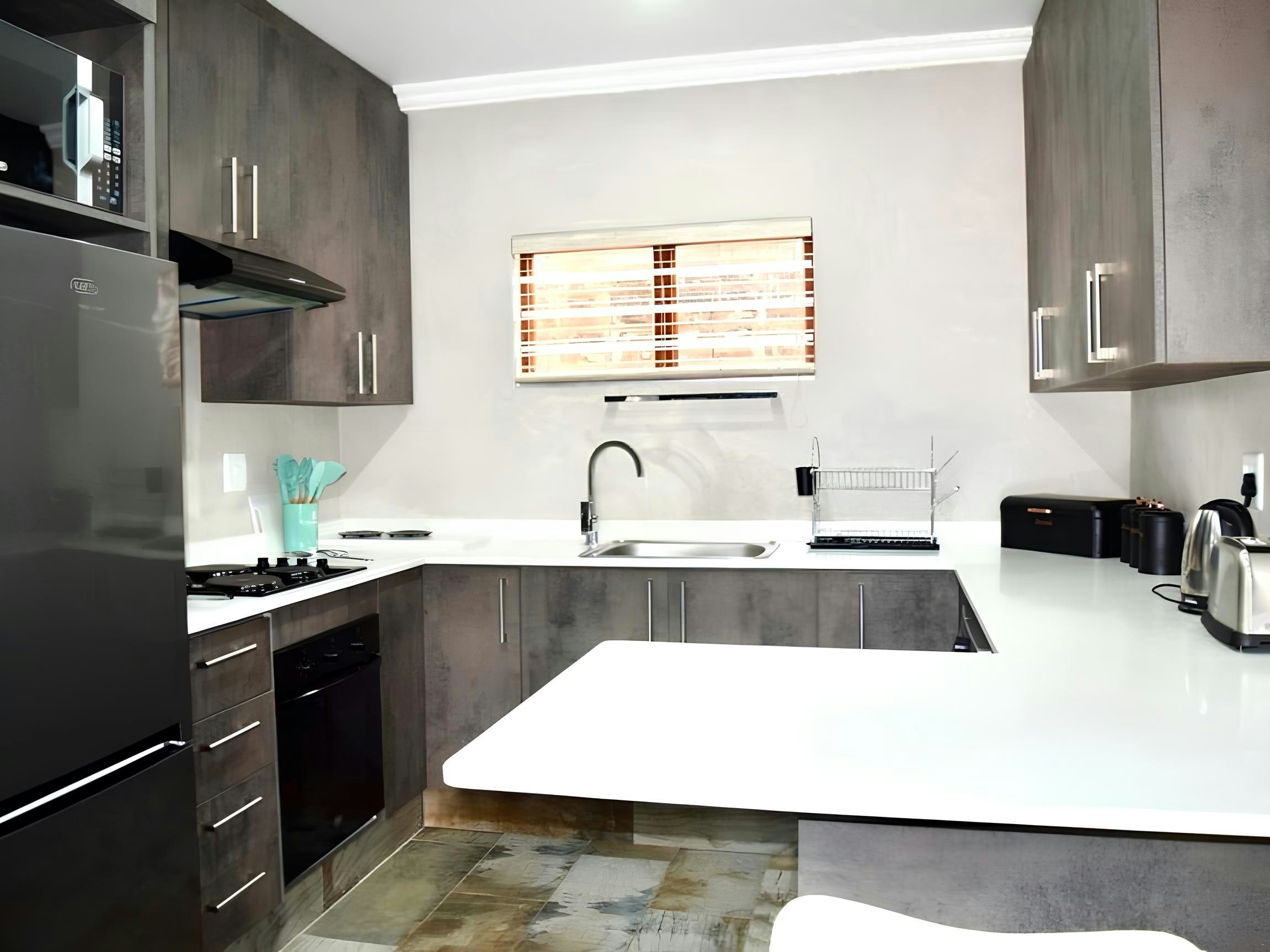 Accommodation is offered in comfortably furnished guest rooms, each with its own private entrance. Each room is air-conditioned and has a work desk, seating area, a flat-screen TV with DStv channels, and an en-suite bathroom. Each room has a kitchenette or a full kitchen. Outside, the rooms have private braai facilities and a picnic bench.