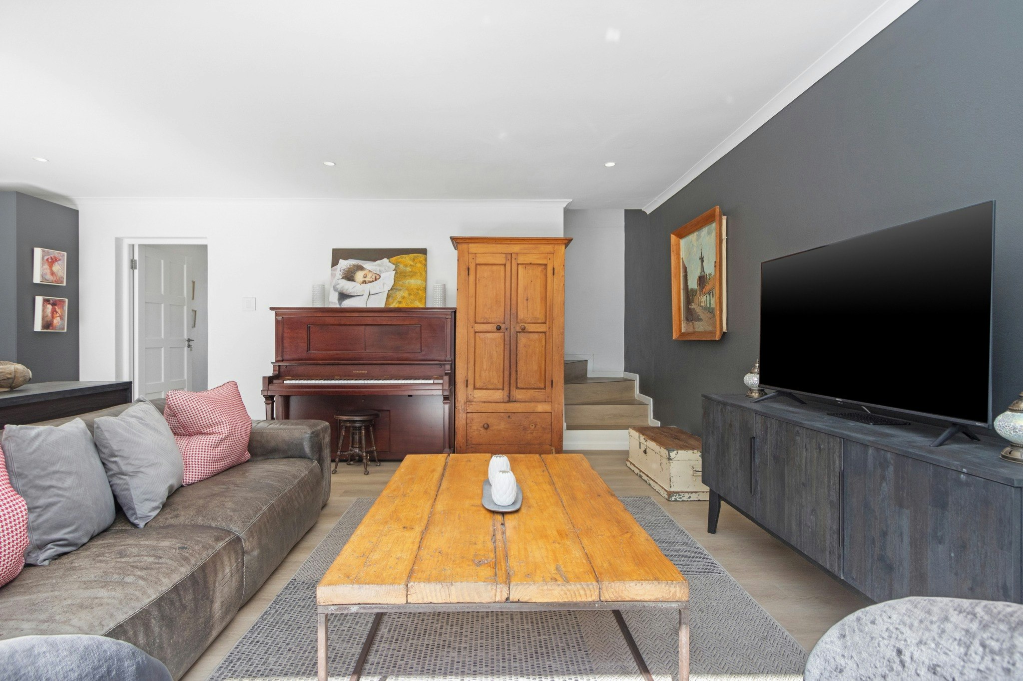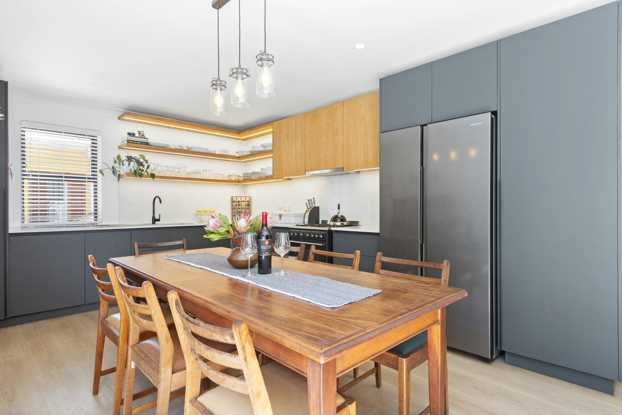 Through the stacking doors is a sunny patio with an outdoor dining table, braai facilities, sun lounging pillows and a swimming pool which is the perfect spot for guests to enjoy some quality time together. The location of this property is within easy reach of many shops and restaurants as well as the popular and vibrant V&A Waterfront.
