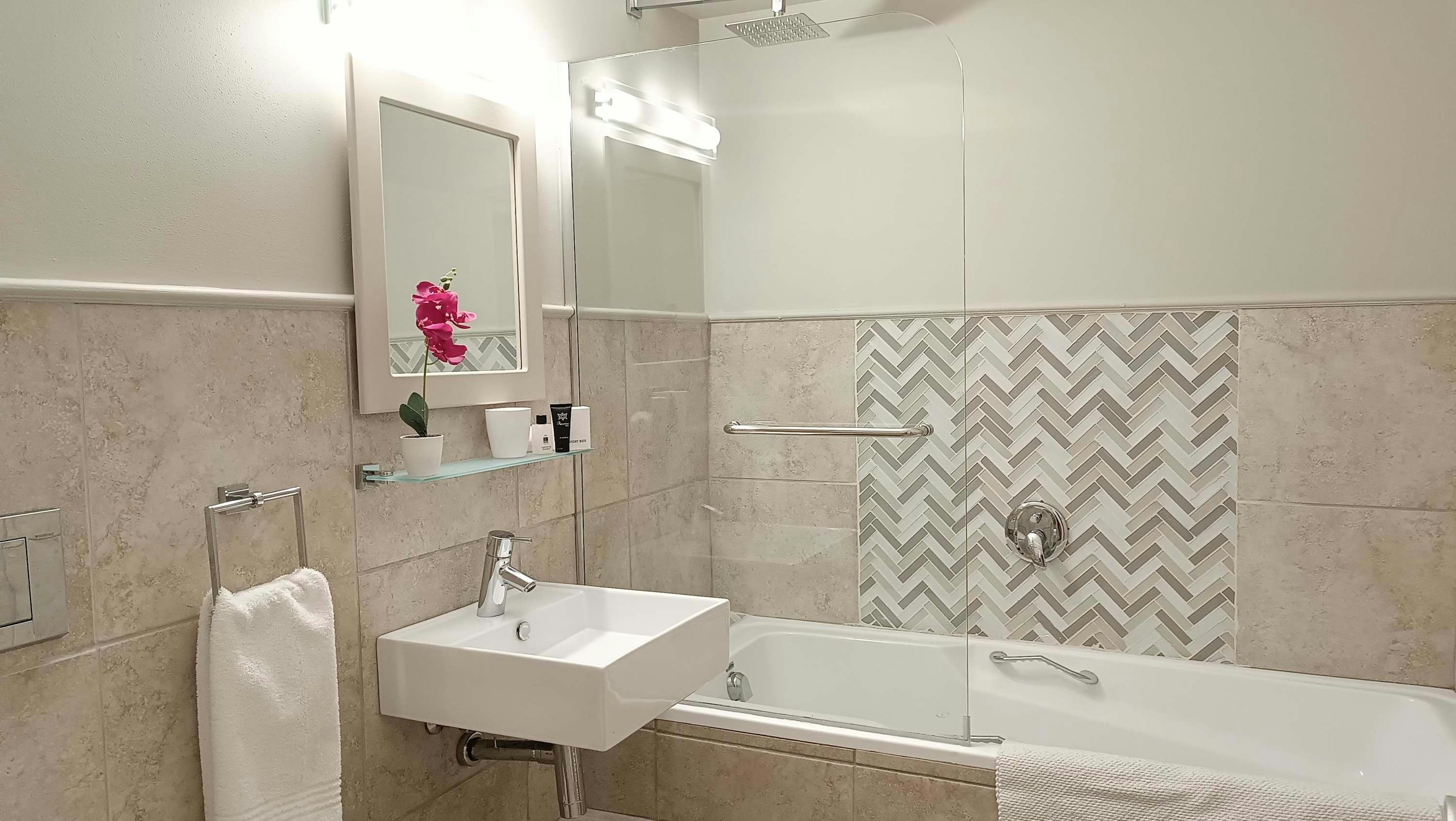 The apartment comprises 3 bedrooms and can accommodate up to 6 guests at a time. Two of the bedrooms are finished with a queen-size bed in each while the third bedroom has 2 single beds. The bathroom has a bath, toilet, and basin.