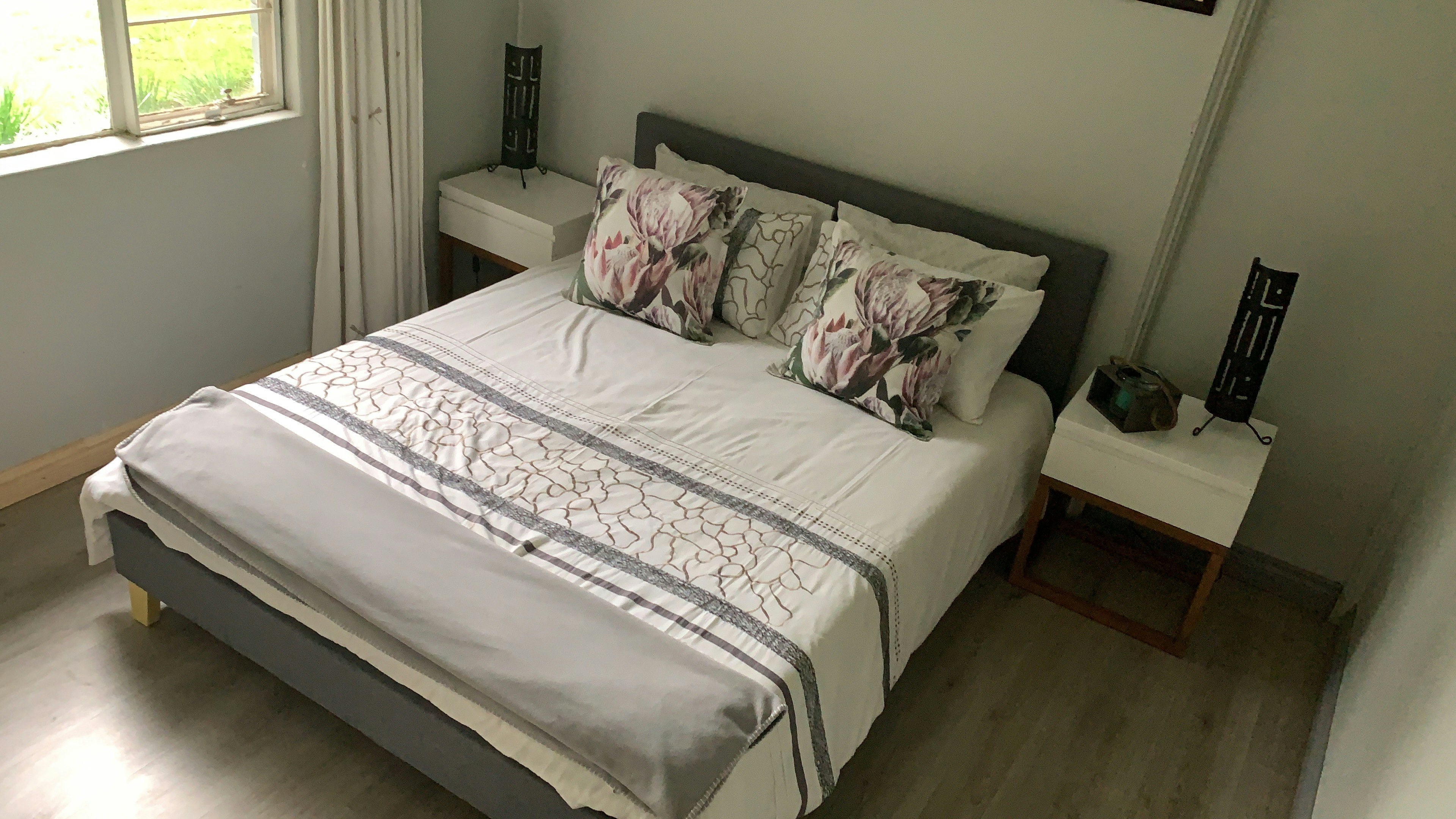 The house can accommodate up to 6 guests and comprises 3 bedrooms, 2 bathrooms, a kitchen, and an open-plan dining and living area. The first bedroom contains a queen-size bed, a sleeper couch appropriate for 2 children, and a shower en suite with twin showers, a toilet and a washbasin. This room has sliding doors opening to a patio area with an outdoor table and chairs. The second bedroom contains 2 single beds that can accommodate either 2 adults or 2 children. The third bedroom contains a queen-size bed. These 2 rooms share a bathroom with a shower, a toilet and a washbasin.